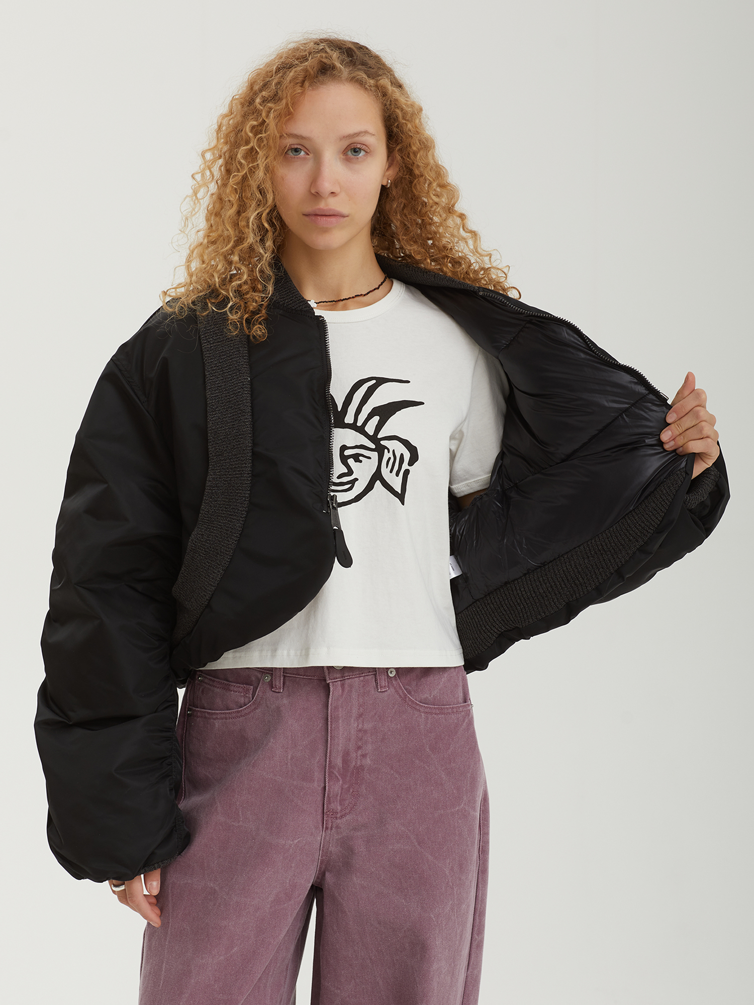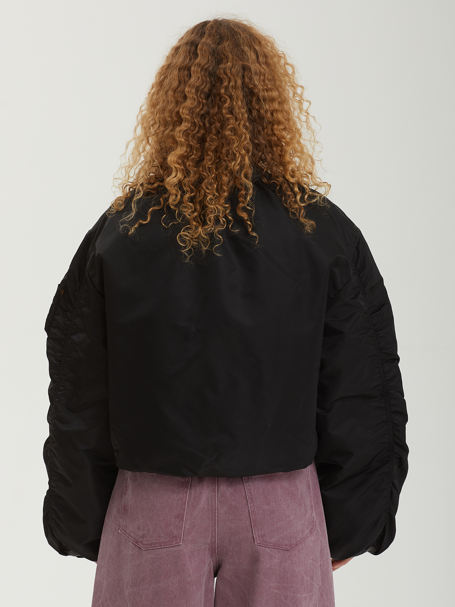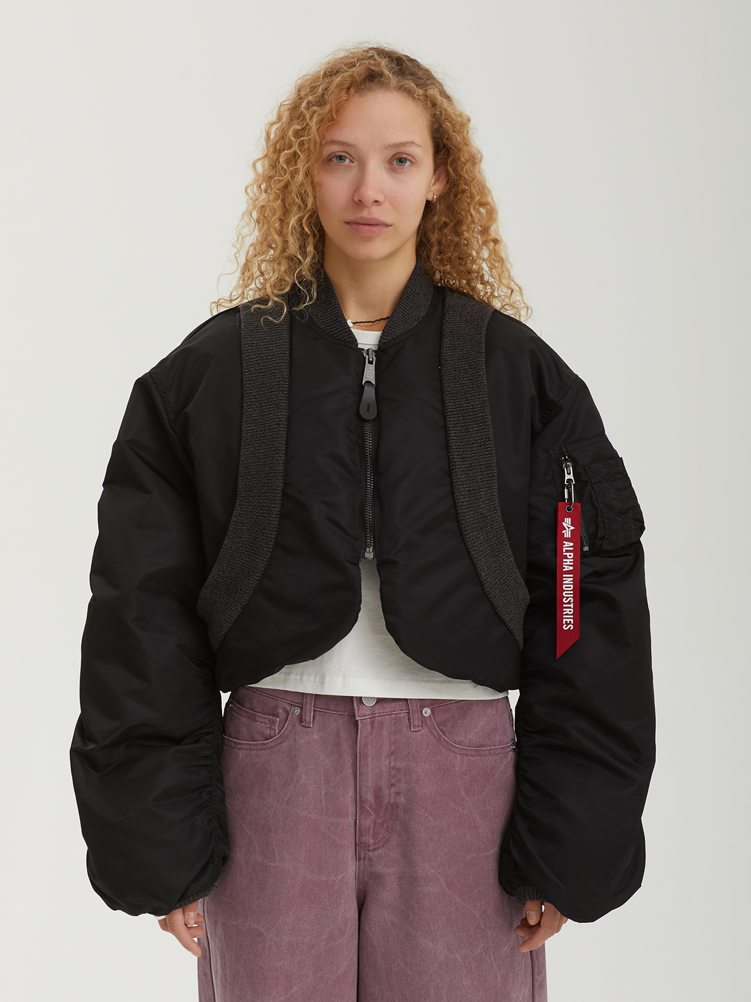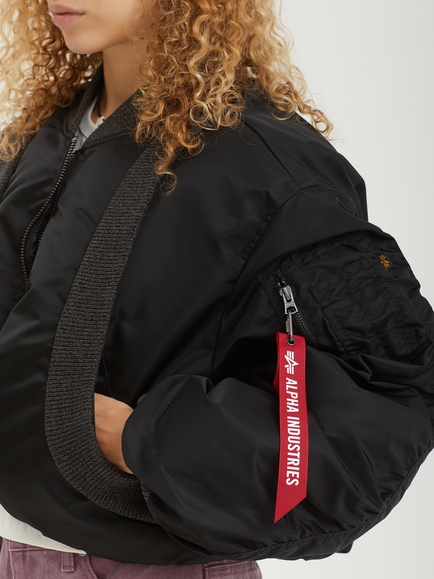 Укороченный бомбер Alpha Industries с дизайном, вдохновленным классической летной курткой MA-1. Верх выполнен из водонепроницаемого нейлона и дополнен оригинальной трикотажной панелью. Накладной карман на рукаве с несколькими отделениями и брендированным пуллером молнии.