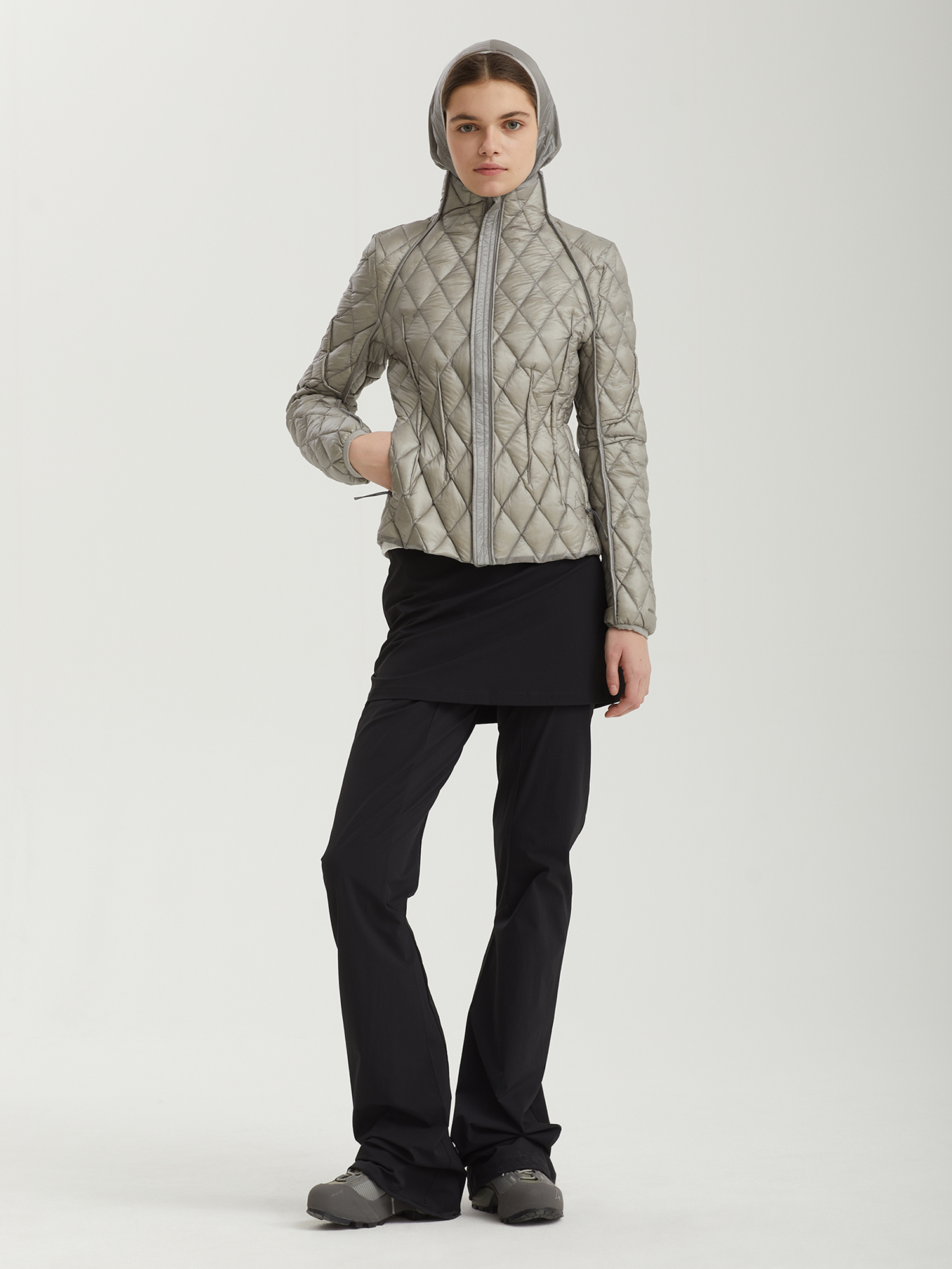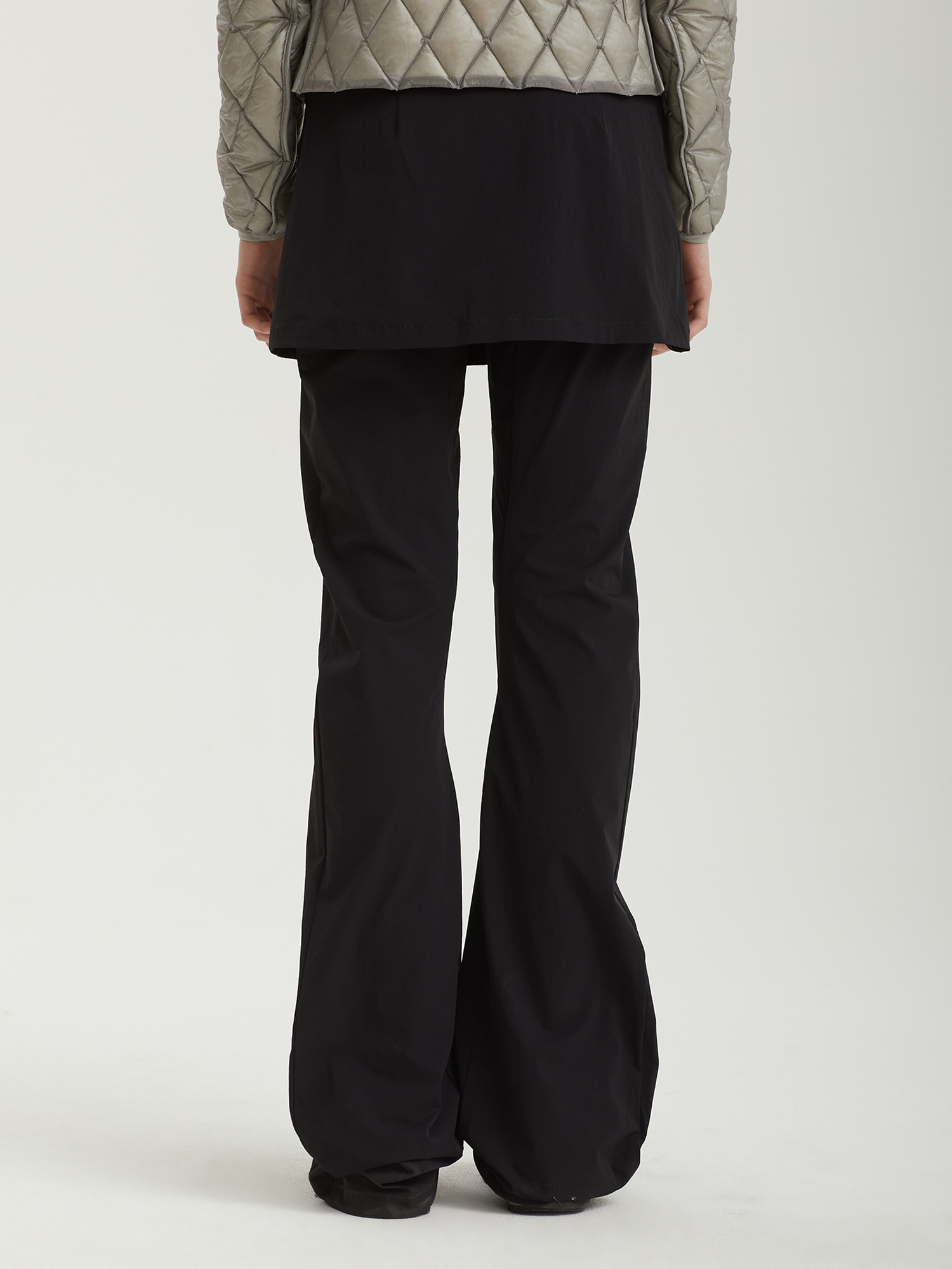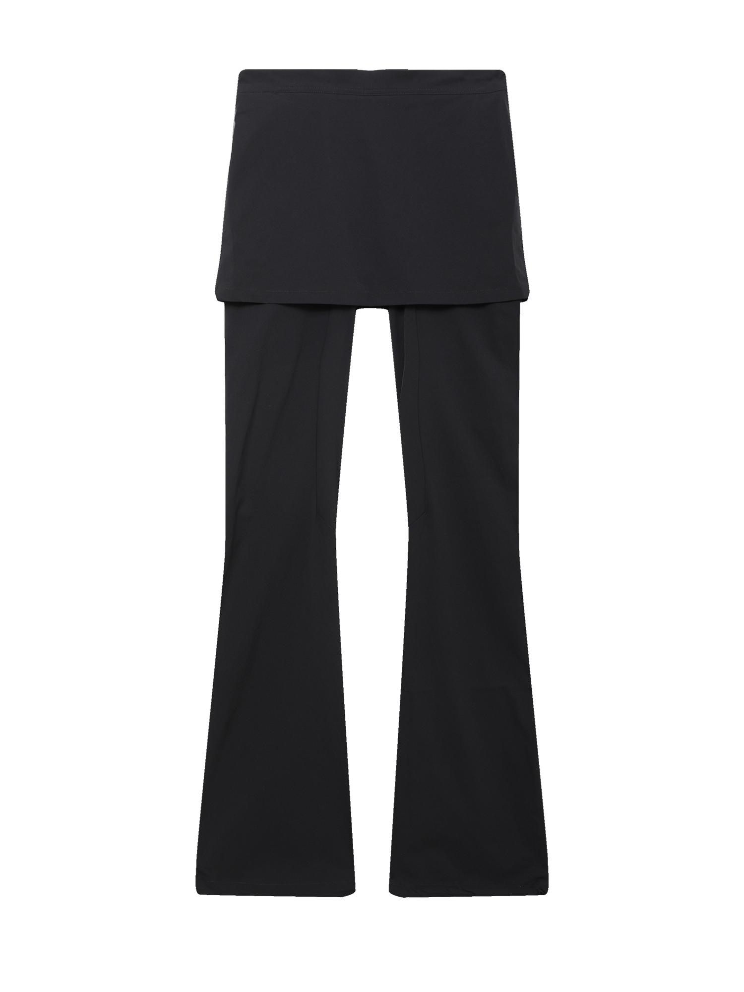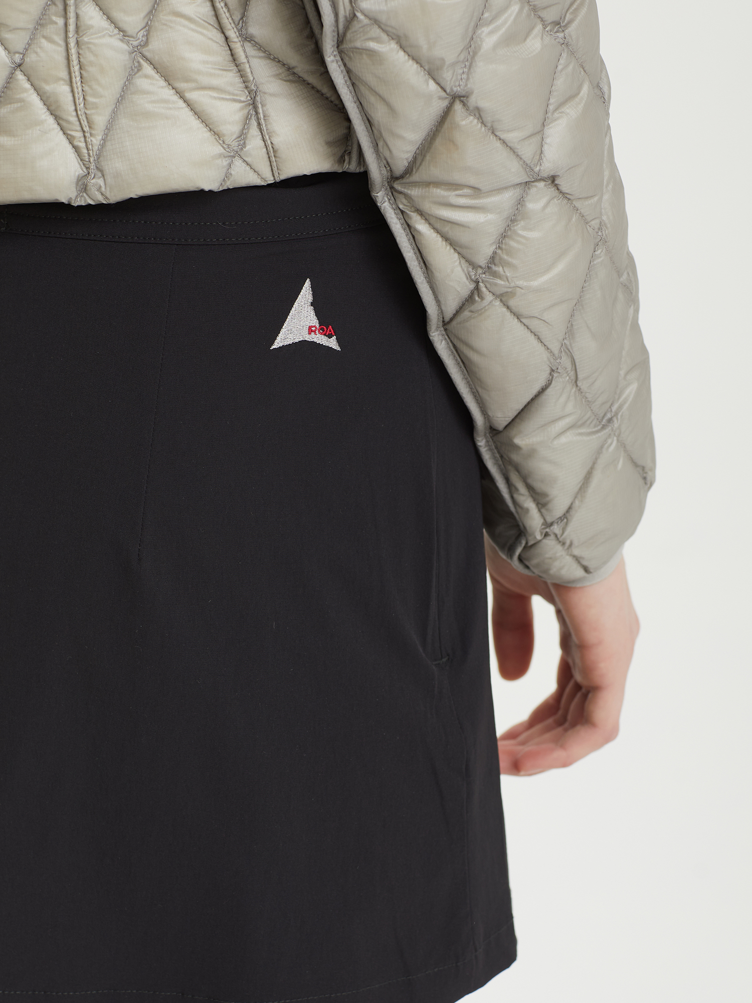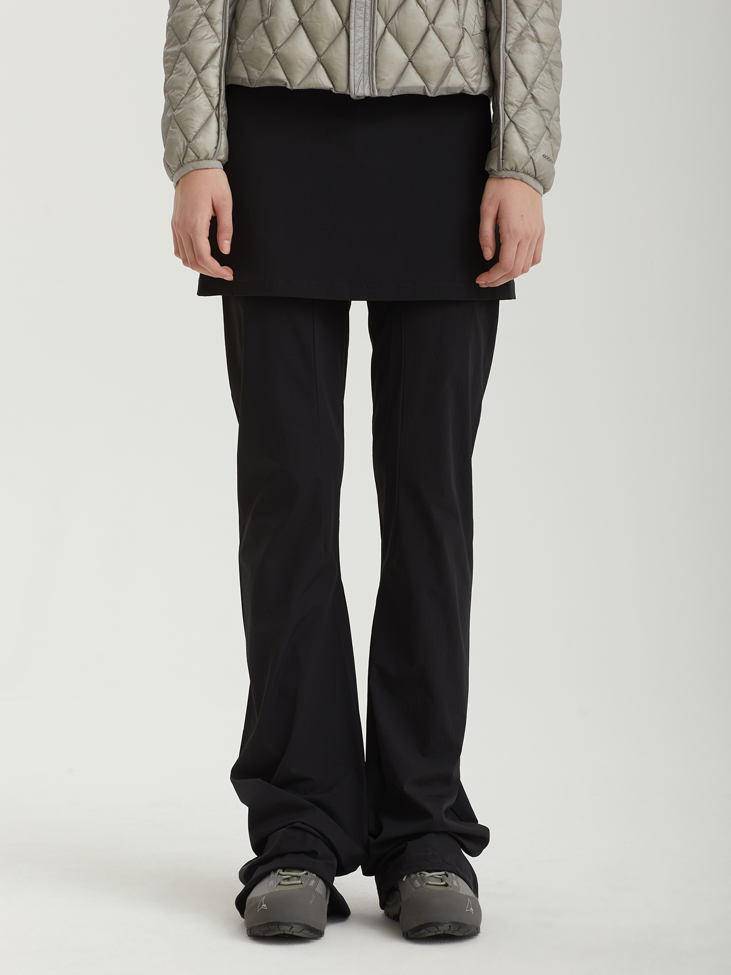 Легкие эластичные брюки ROA выполнены из водоотталкивающего нейлона. Модель отличается слегка расклешенным низом и пришитой короткой юбкой.
