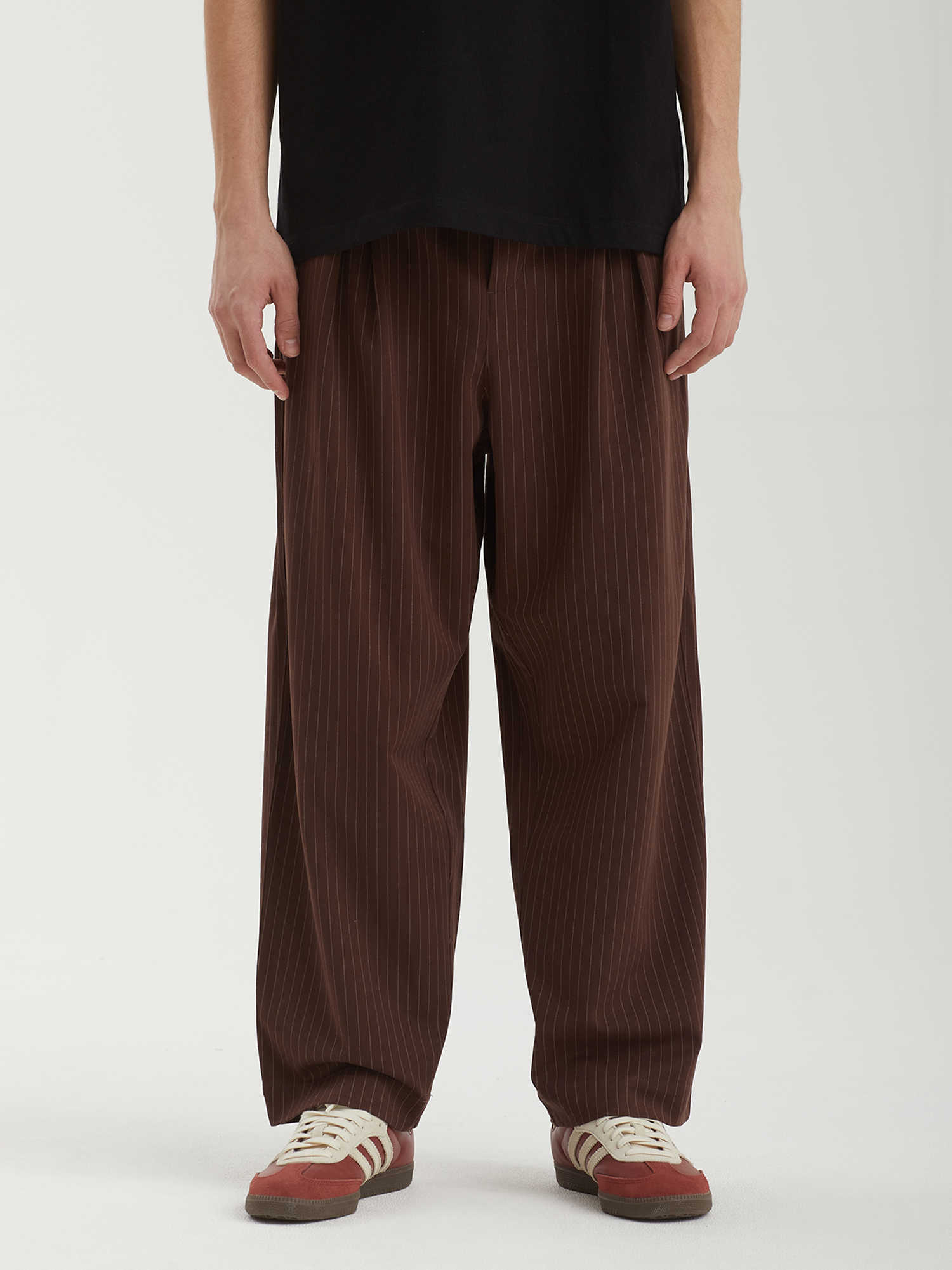 Брюки с защипами Metalwood из смесового полотна с узором в тонкую полоску.