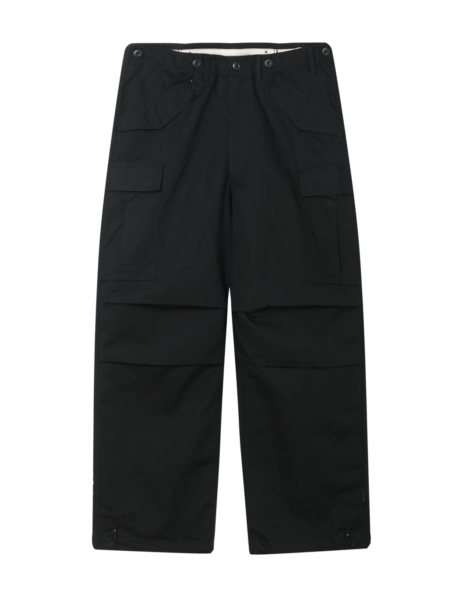 Брюки-карго Maharishi из смесового оксфордского полотна с водоотталкивающим эффектом. Изделие прошито тройным стежком для дополнительной прочности, складки и ремни отсылают к конструкции классических брюк хакама.