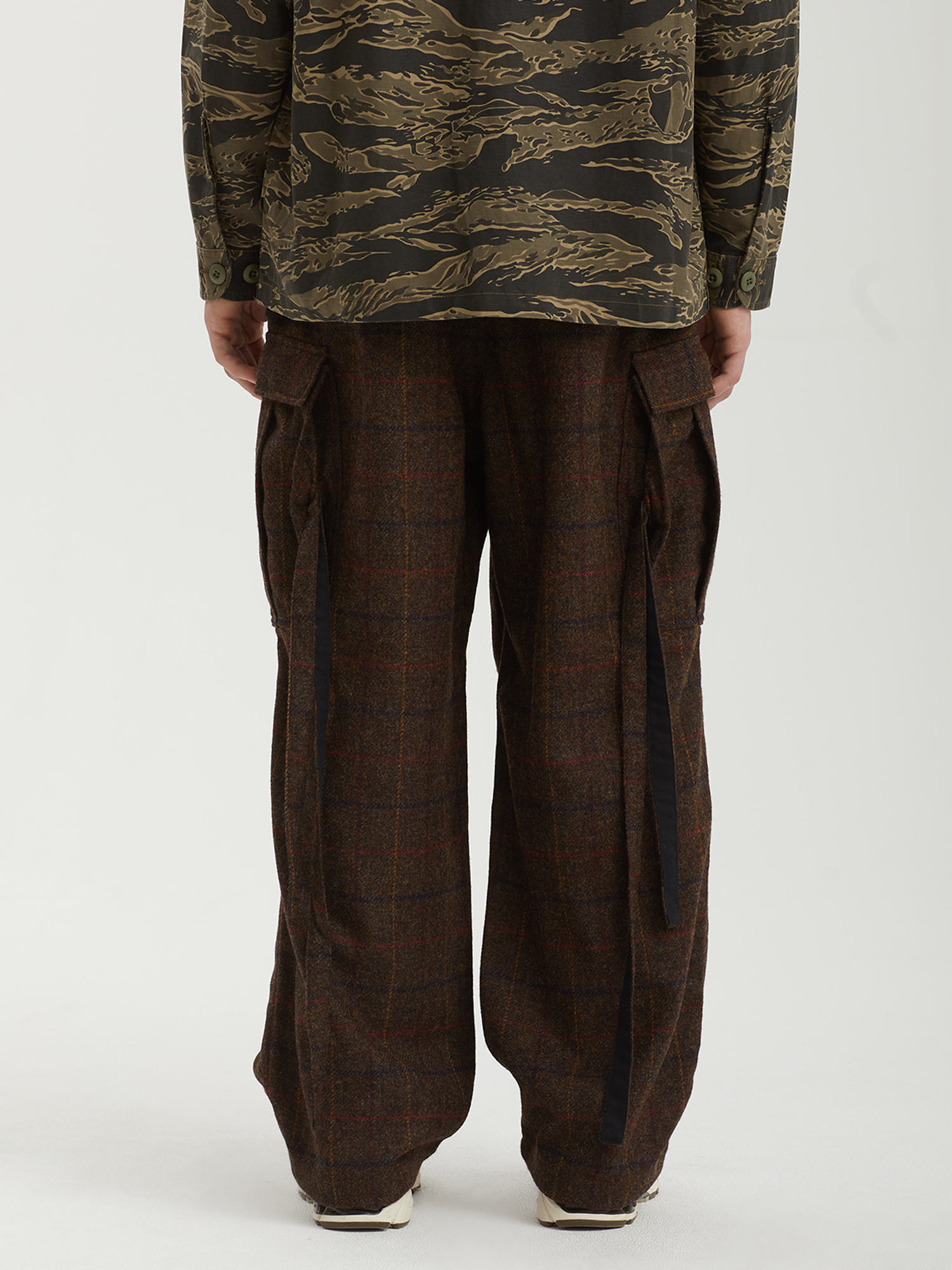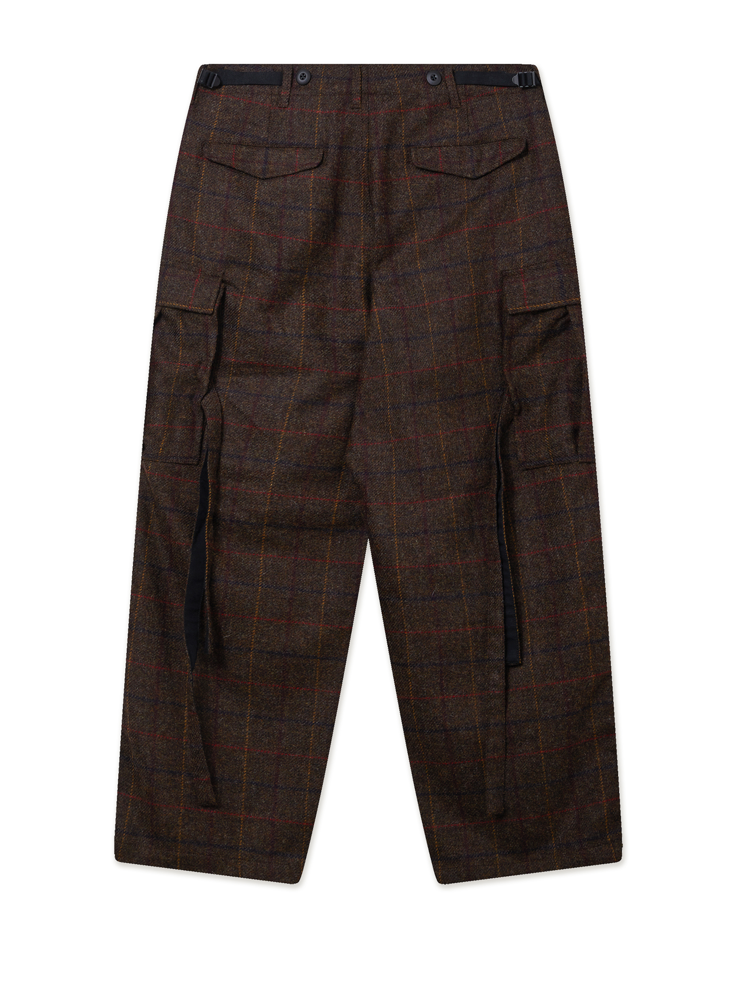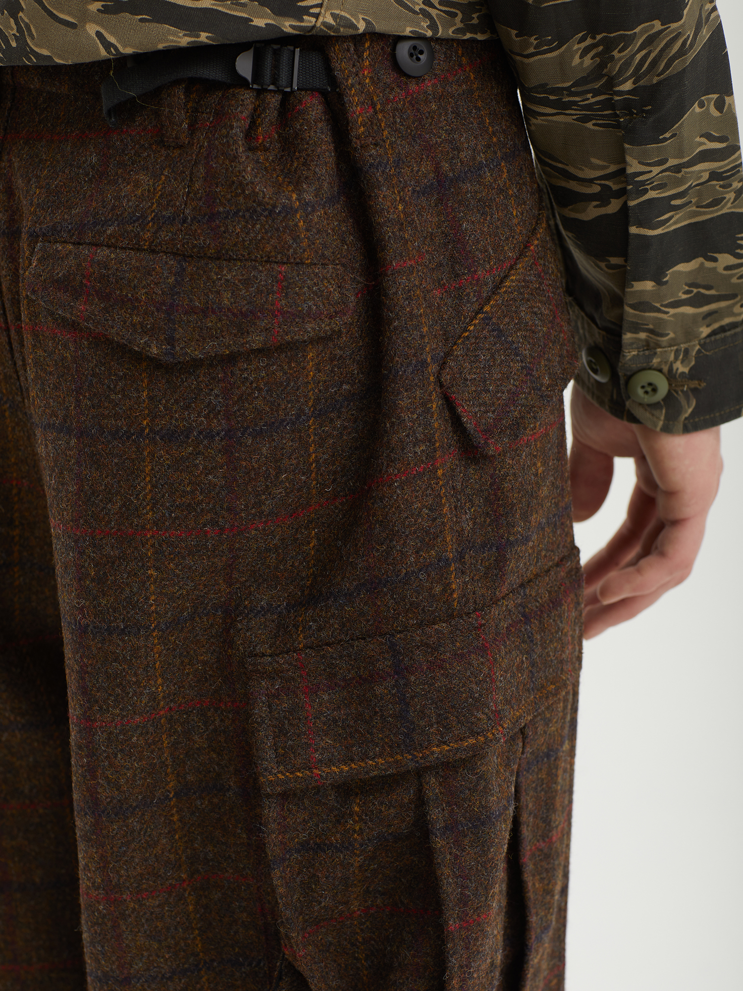 Брюки-карго Maharishi из плотного шерстяного твида. Изделие дополнено регулируемым поясом и складками на коленях для лучшей посадки. Материал произведен в Великобритании.