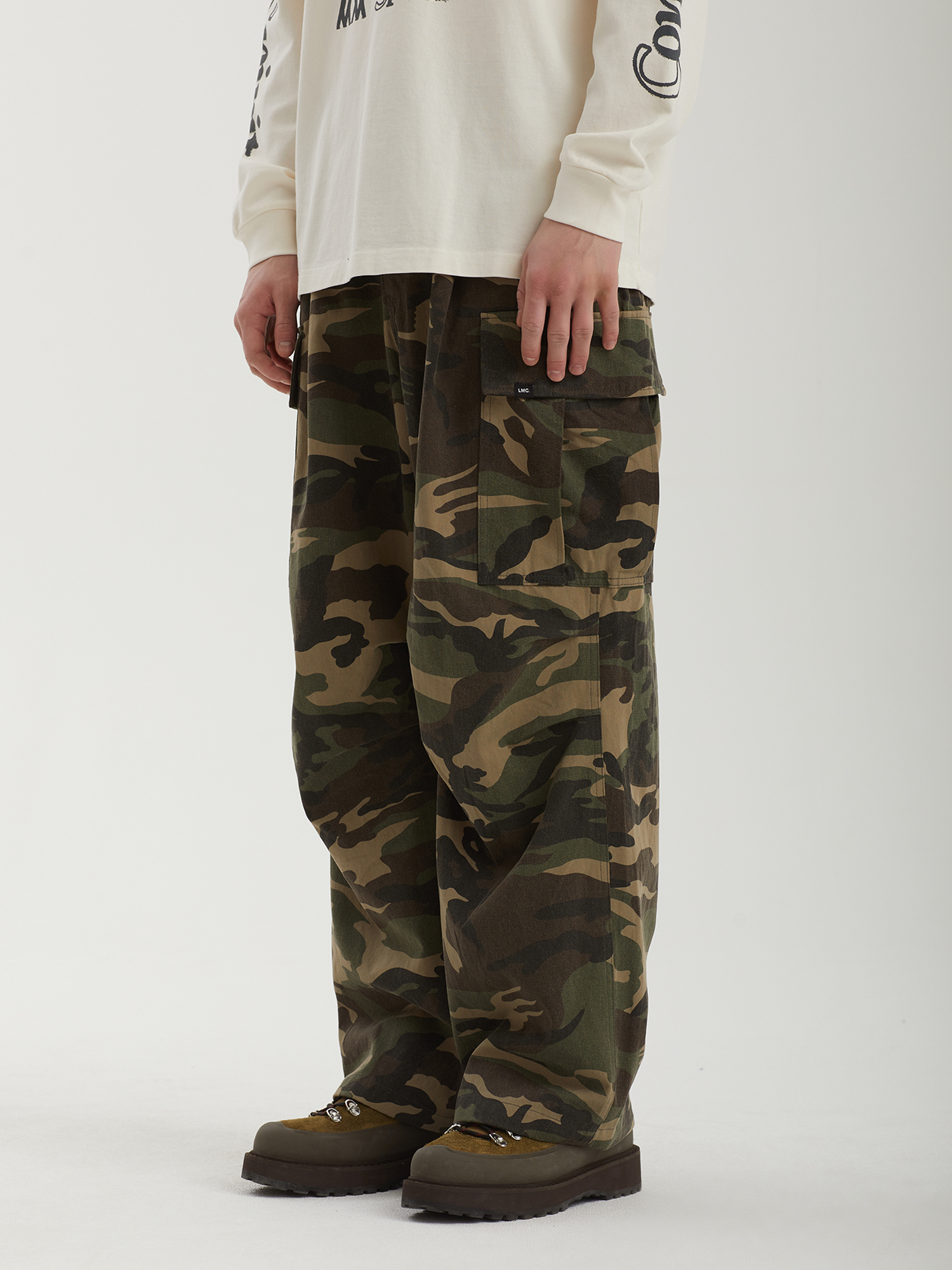 Брюки-карго Lost Management Cities из прочного хлопкового твила со сплошным камуфляжным принтом.