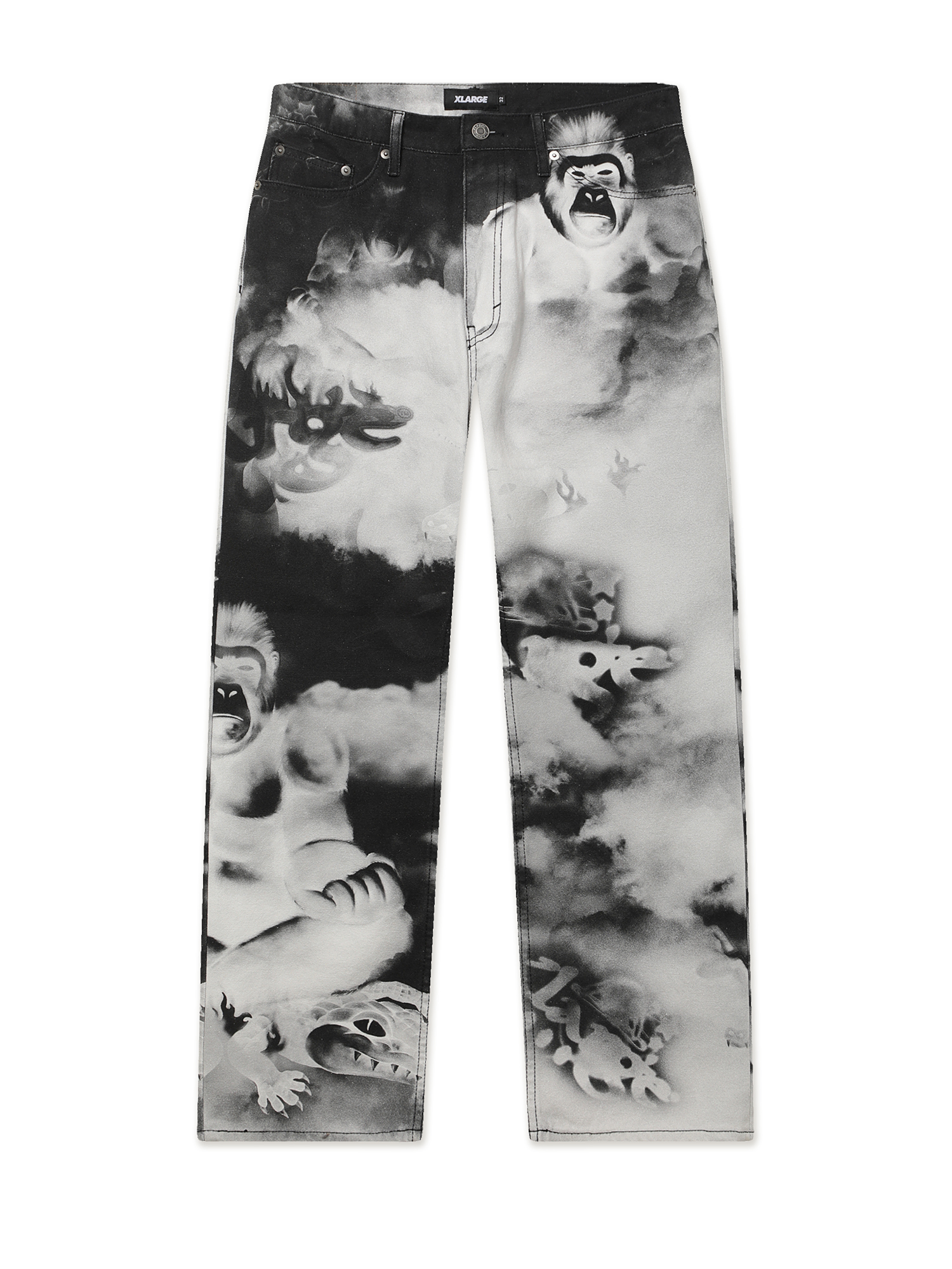 Брюки XLarge из плотного хлопкового твила со сплошным абстрактным принтом.