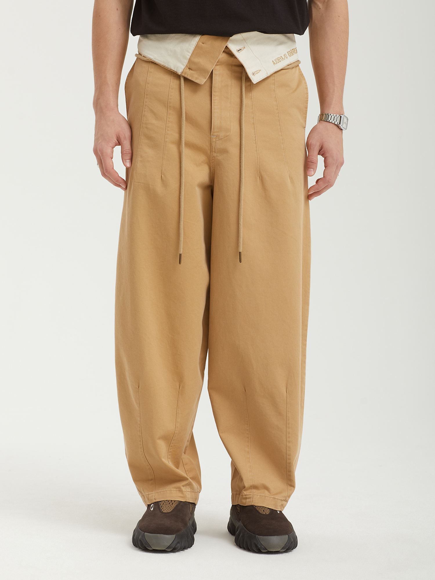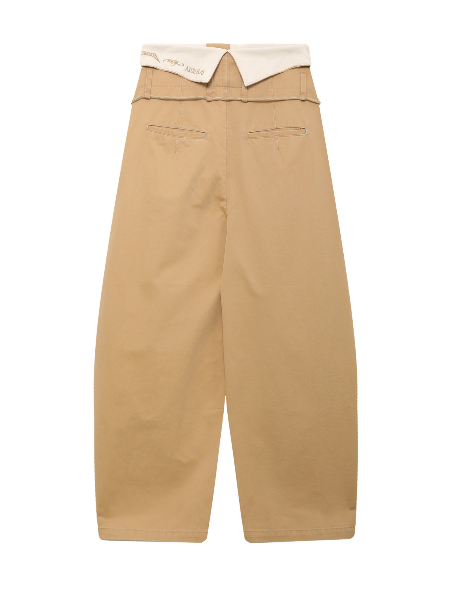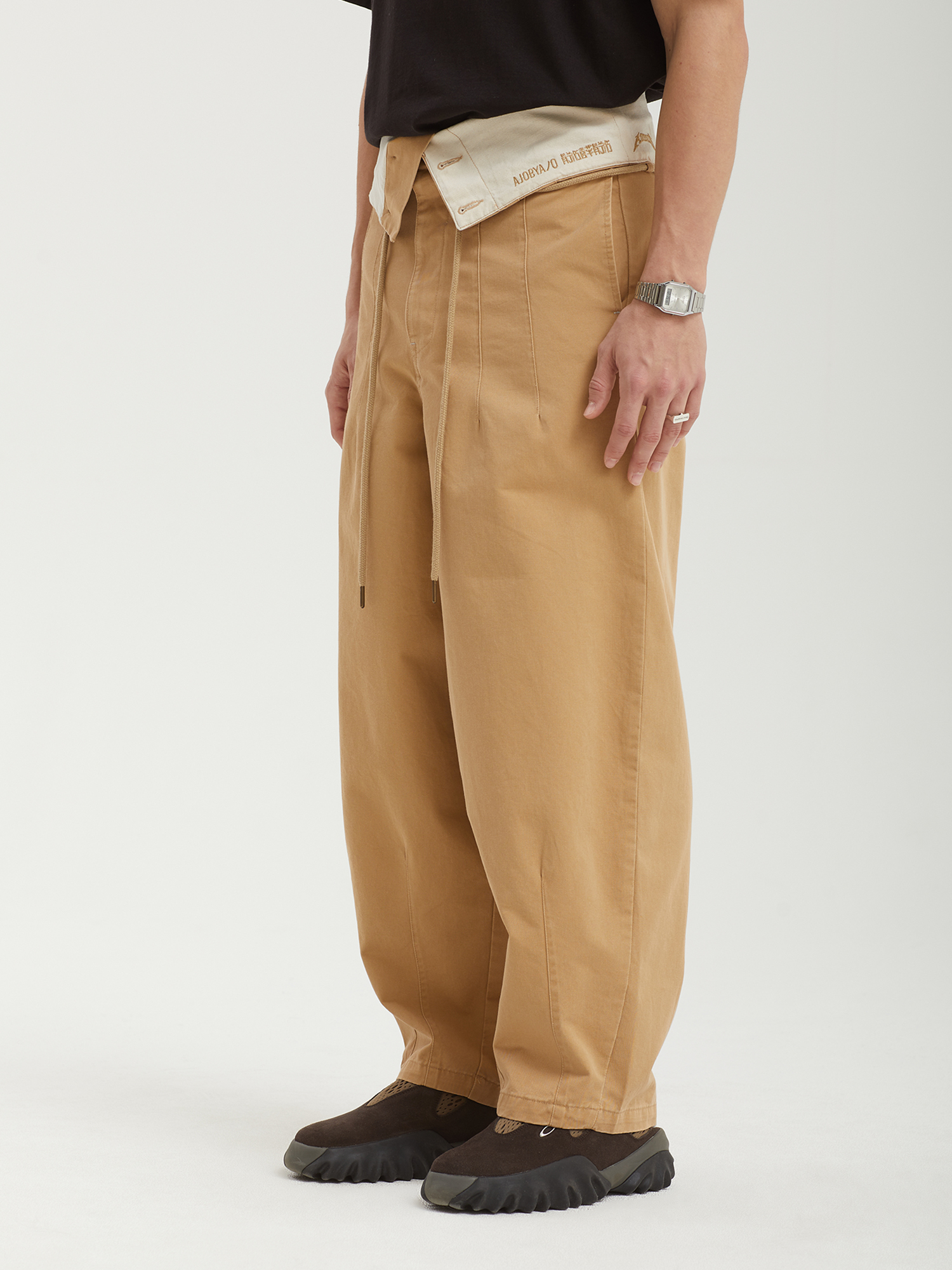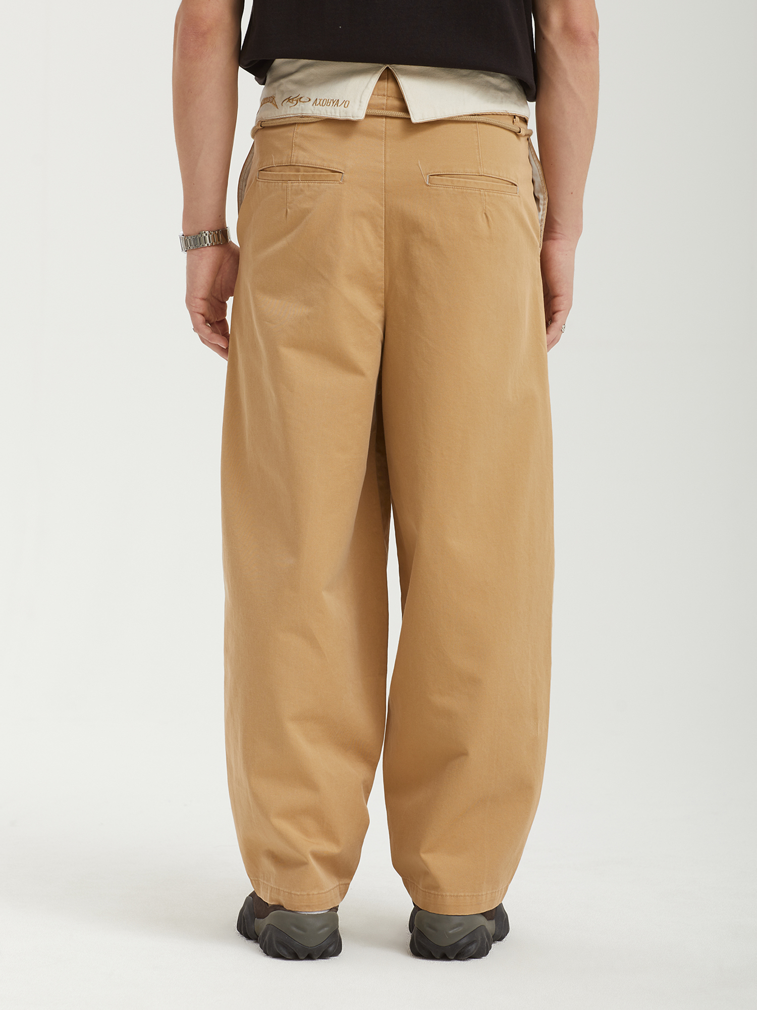 Брюки с оверсайз силуэтом и отложным костюмным поясом Ajobyajo из прочного хлопкового материала. Изделие выстирано для мягкости и легкого винтажного эффекта.