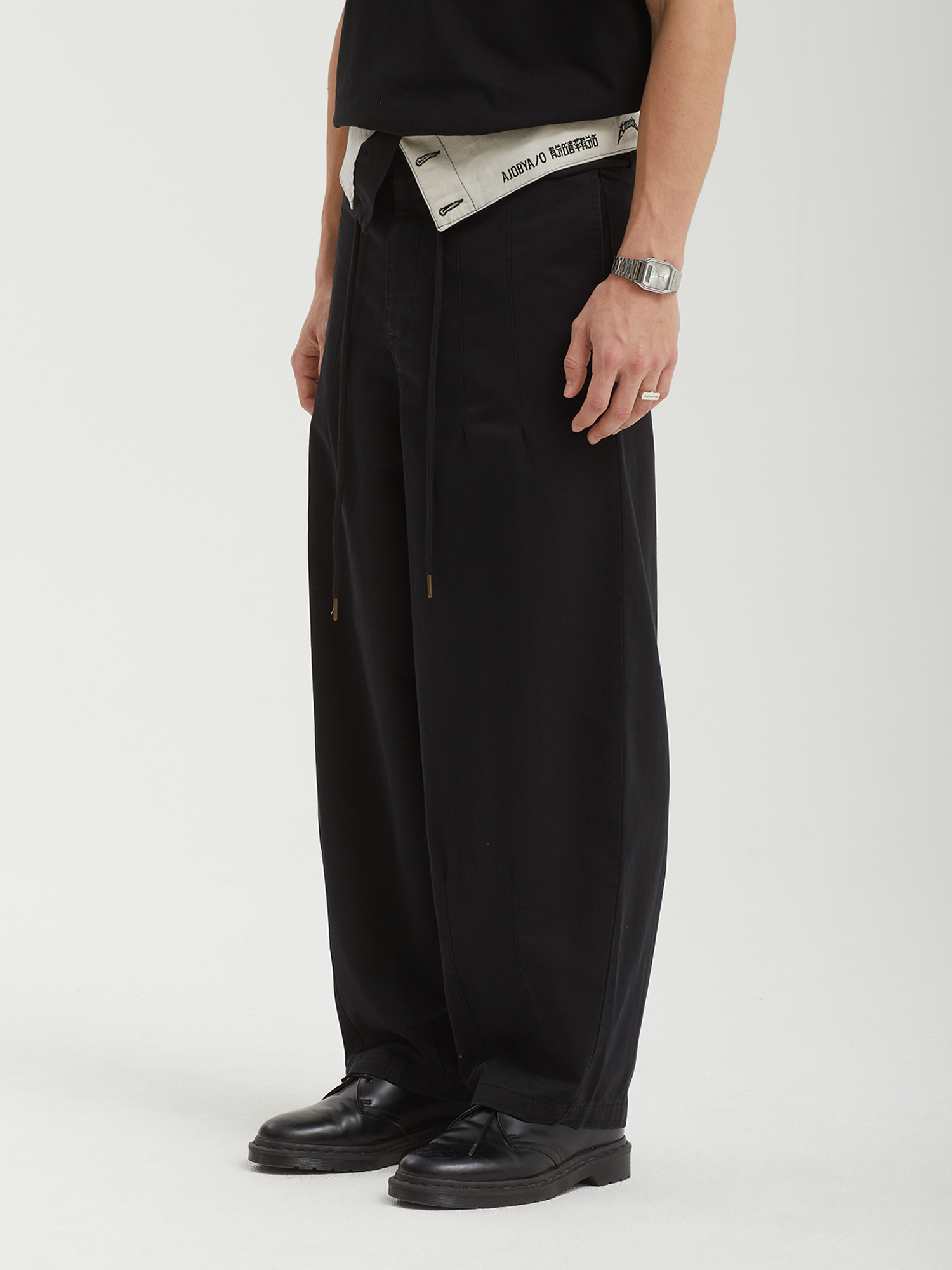 Брюки с оверсайз силуэтом и отложным костюмным поясом Ajobyajo из прочного хлопкового материала. Изделие выстирано для мягкости и легкого винтажного эффекта.