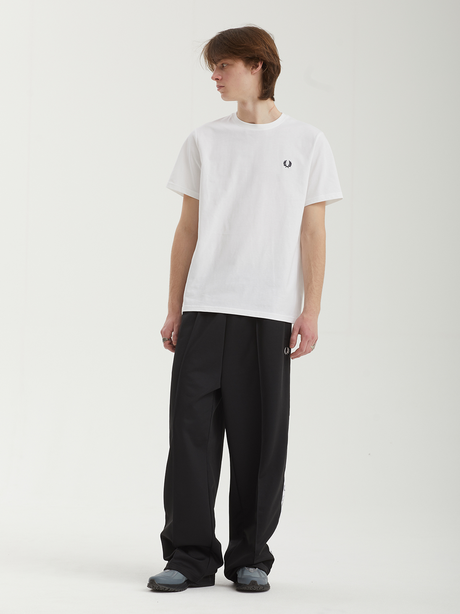 Широкие брюки Fred Perry из гладкой трикотажной ткани. Декорированы лампасами в духе архивных моделей бренда.