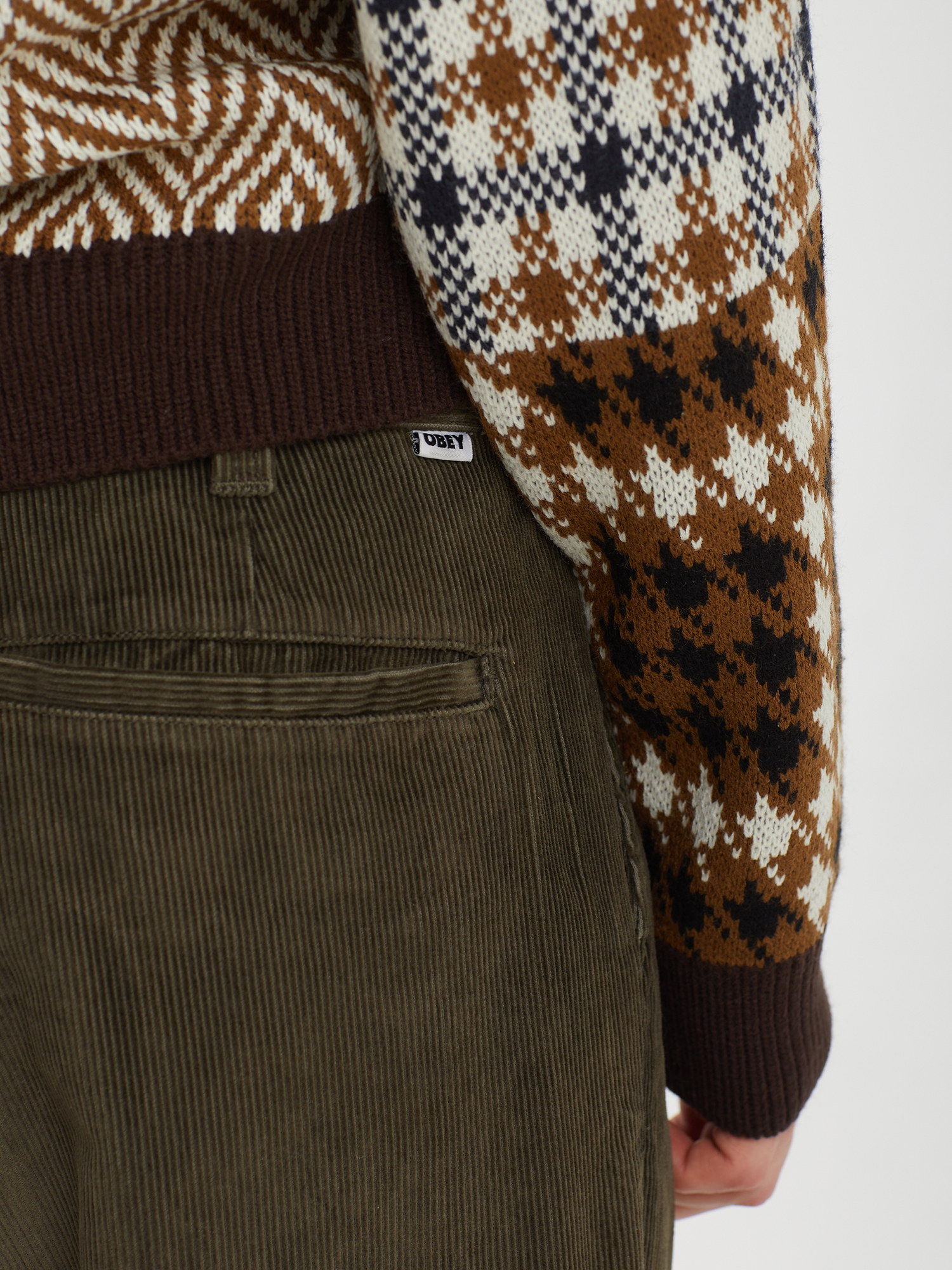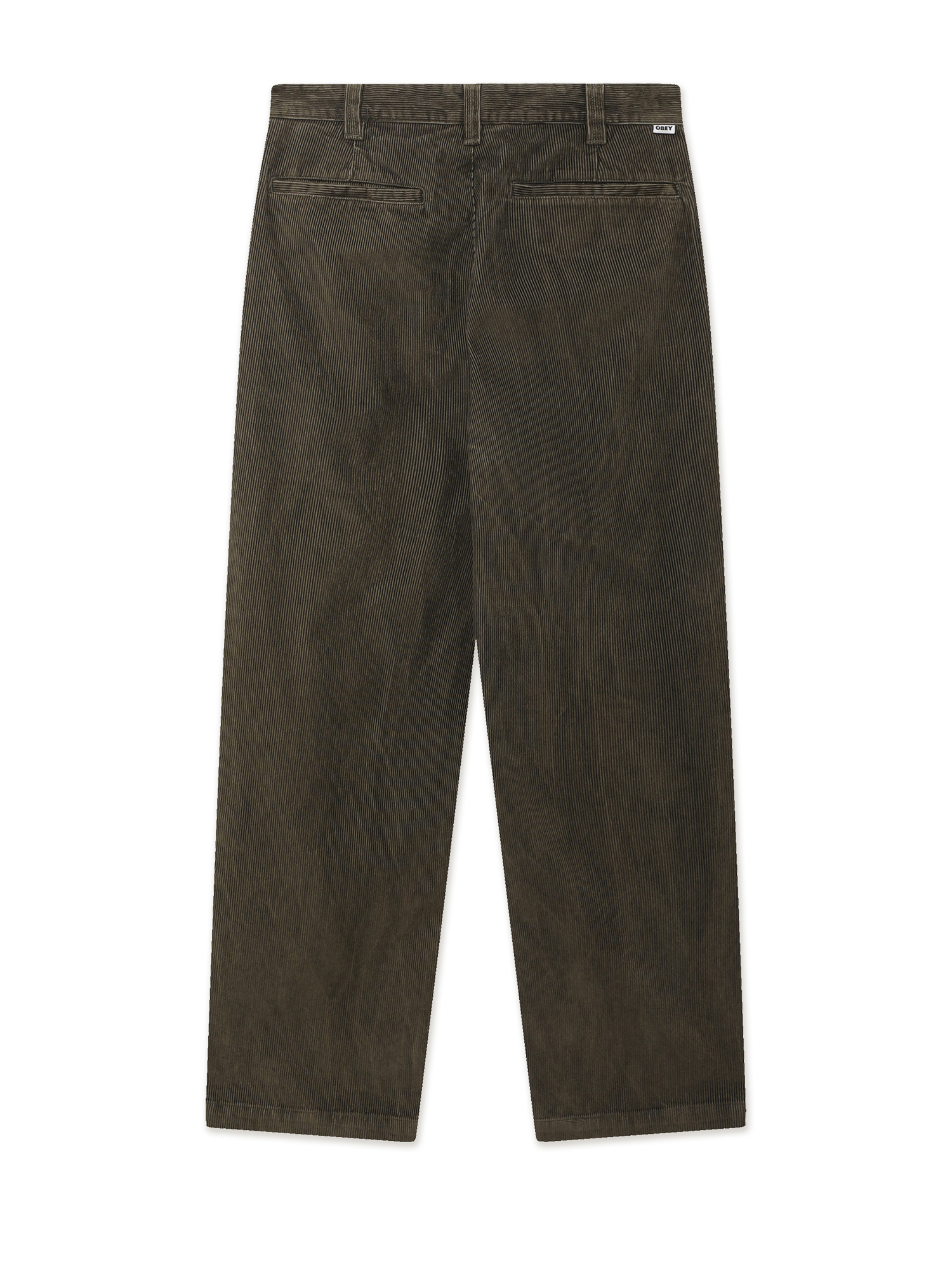 Брюки Obey выполнены из легкого хлопкового вельвета. Фабричная обработка изделия придает ткани мягкость и винтажный эффект. Расслабленный прямой крой с защипами в области бедер обеспечивает комфортную посадку и свободу движений. Модель оснащена боковыми и задними прорезными карманами. Тканая этикетка на поясе добавляет изделию фирменный акцент.