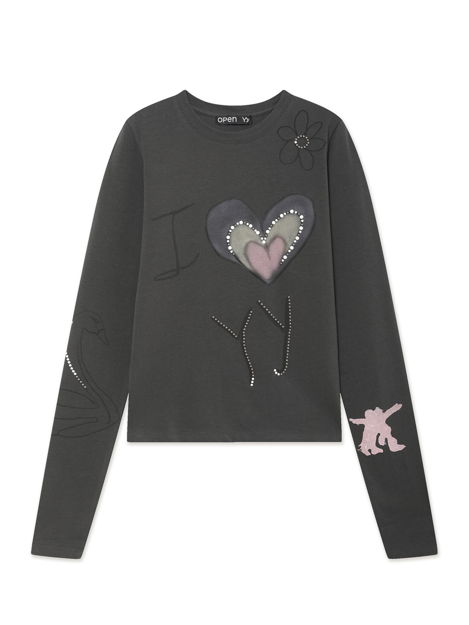 Топ с длинным рукавом Open YY из эластичного джерси. Изделие дополнено сезонными графическими принтами.