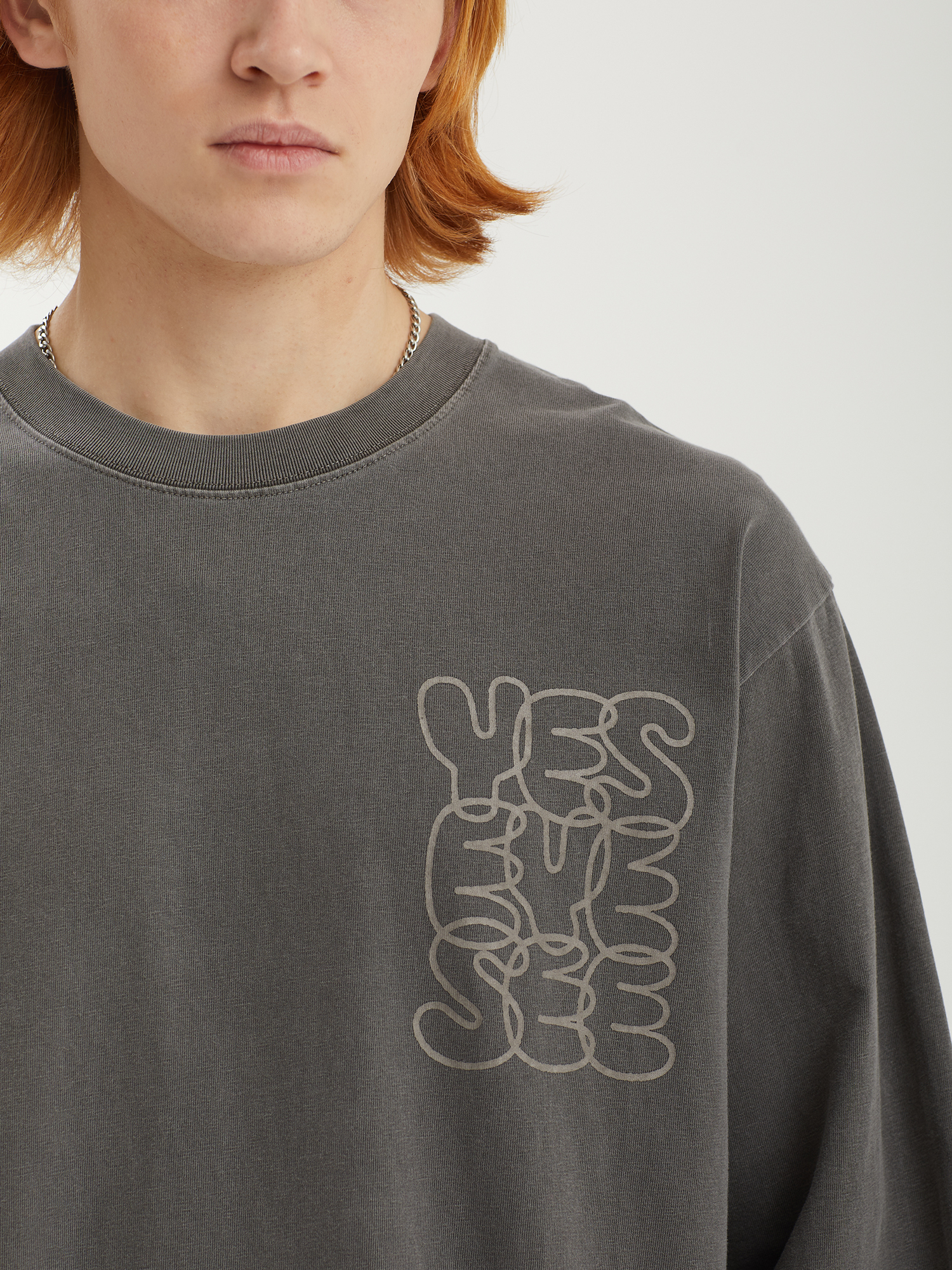 Лонгслив с логотипами Yeseyesee из хлопкового материала, окрашенного пигментом для получения оригинального рисунка.