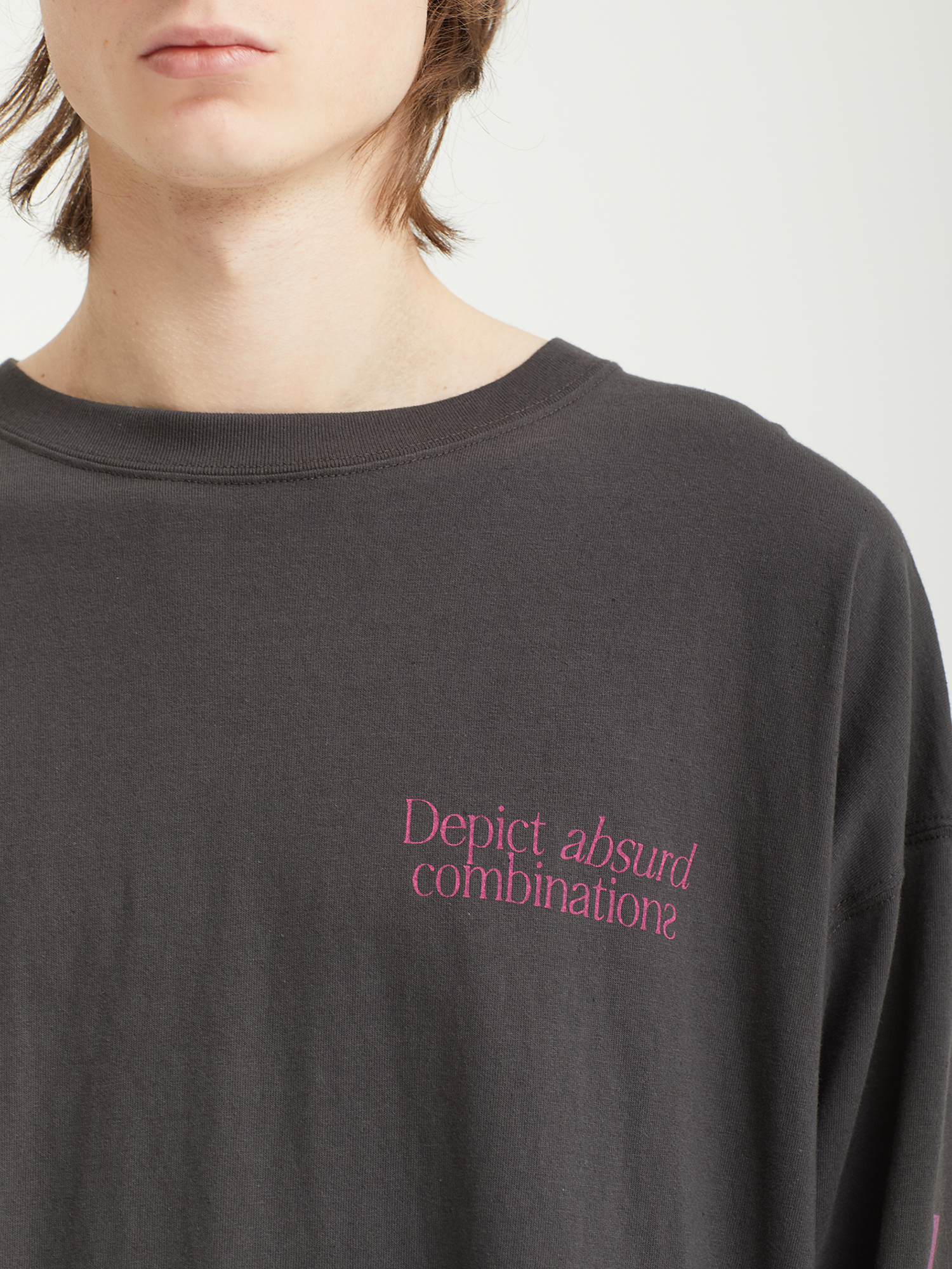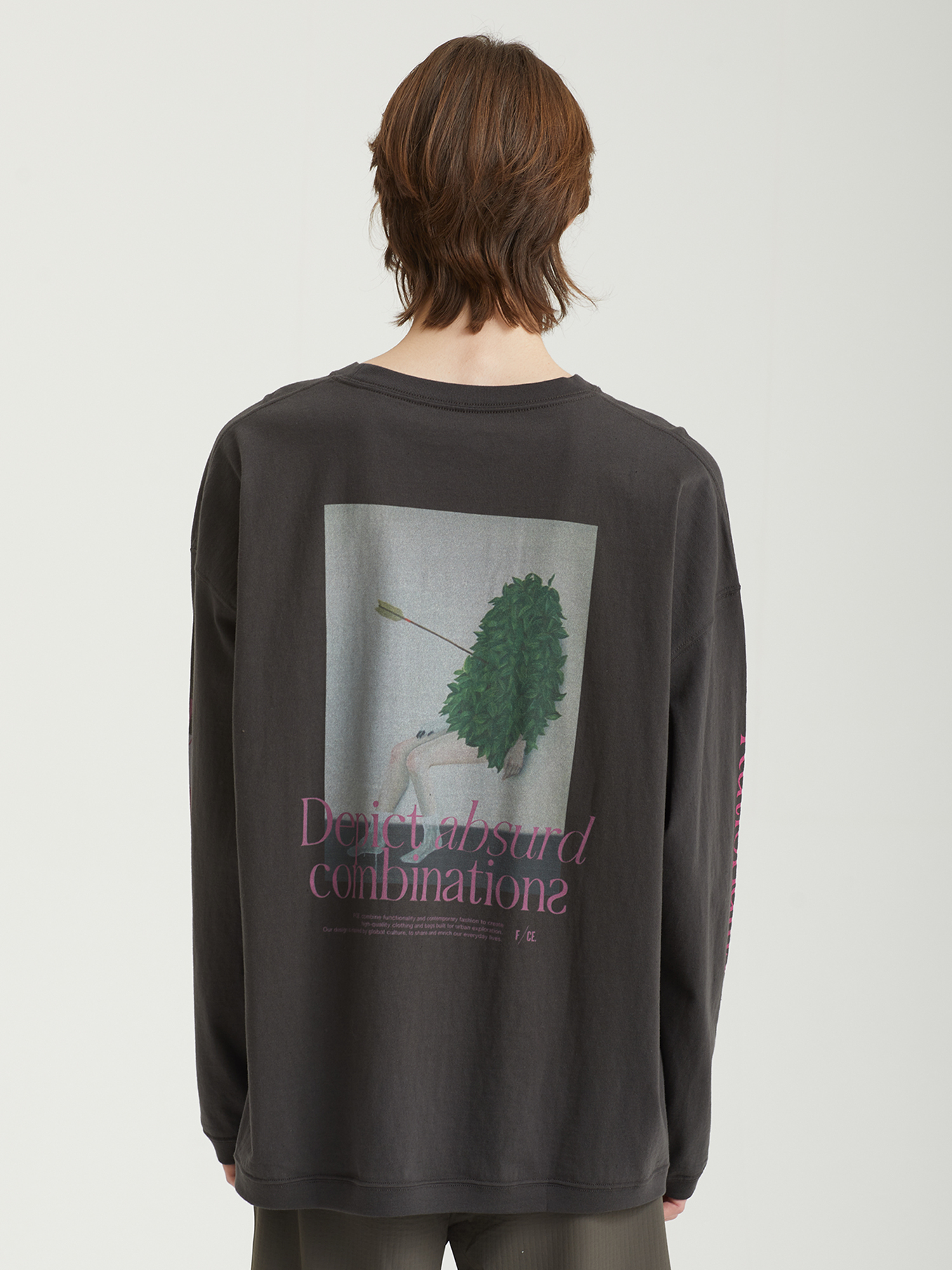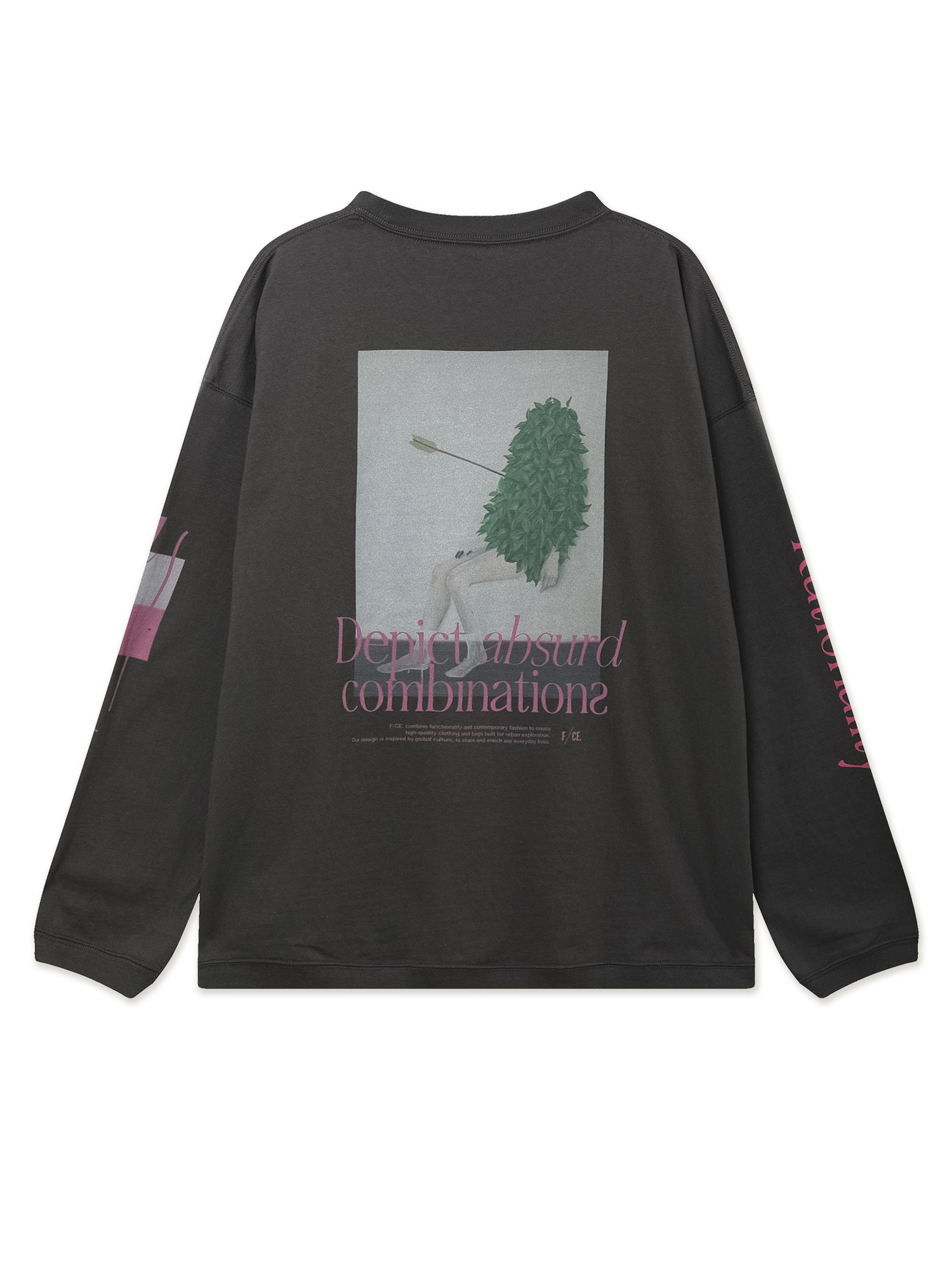 Лонгслив F/CE, созданный в сотрудничестве с японской художницей Марико Эномото. Использован переработанный хлопок: в отличие от обычной хлопковой пряжи, его волокна имеют разную длину и небольшую неоднородность. Легкий винтажный эффект подчеркнут специальной обработкой принта.