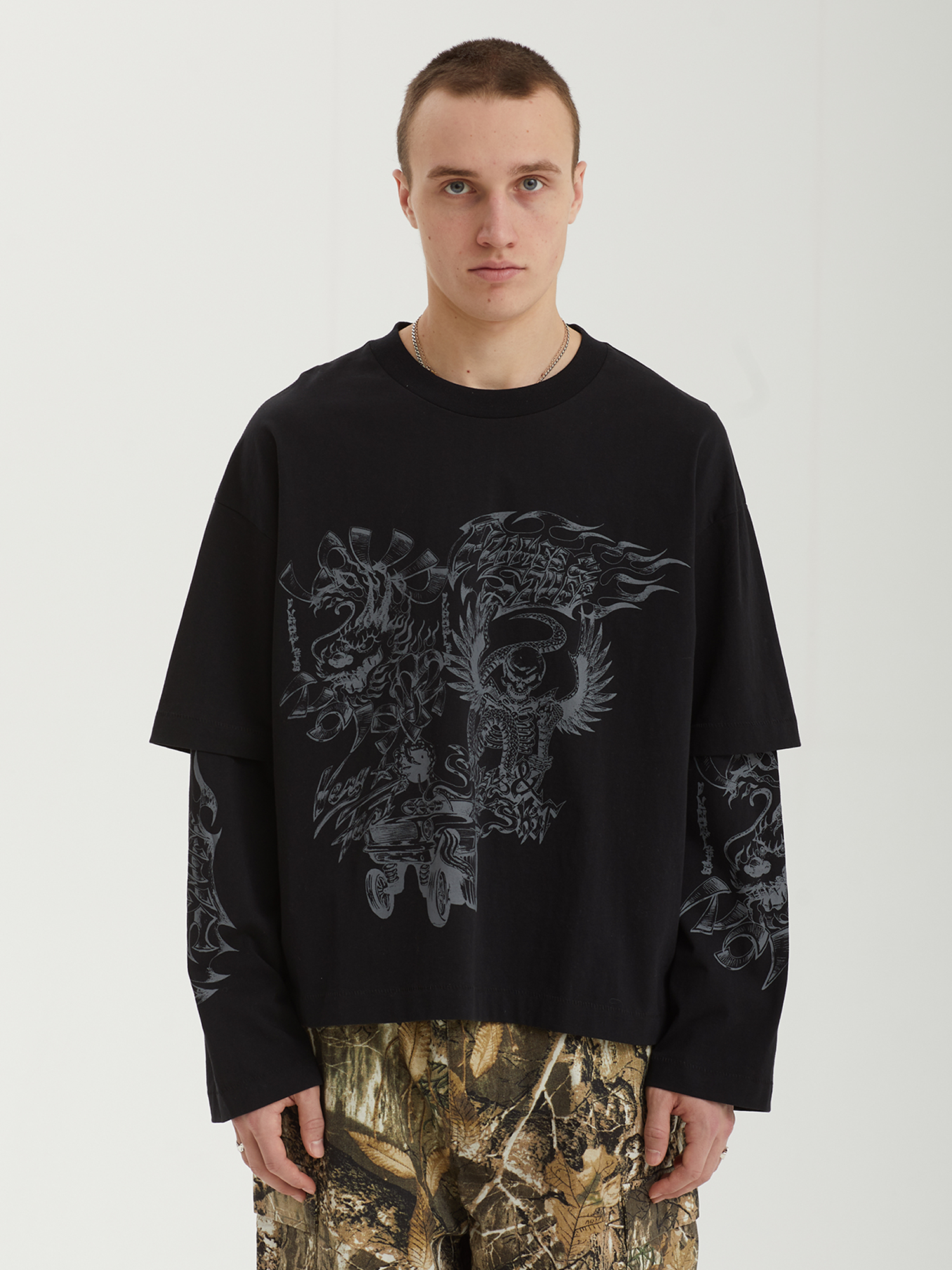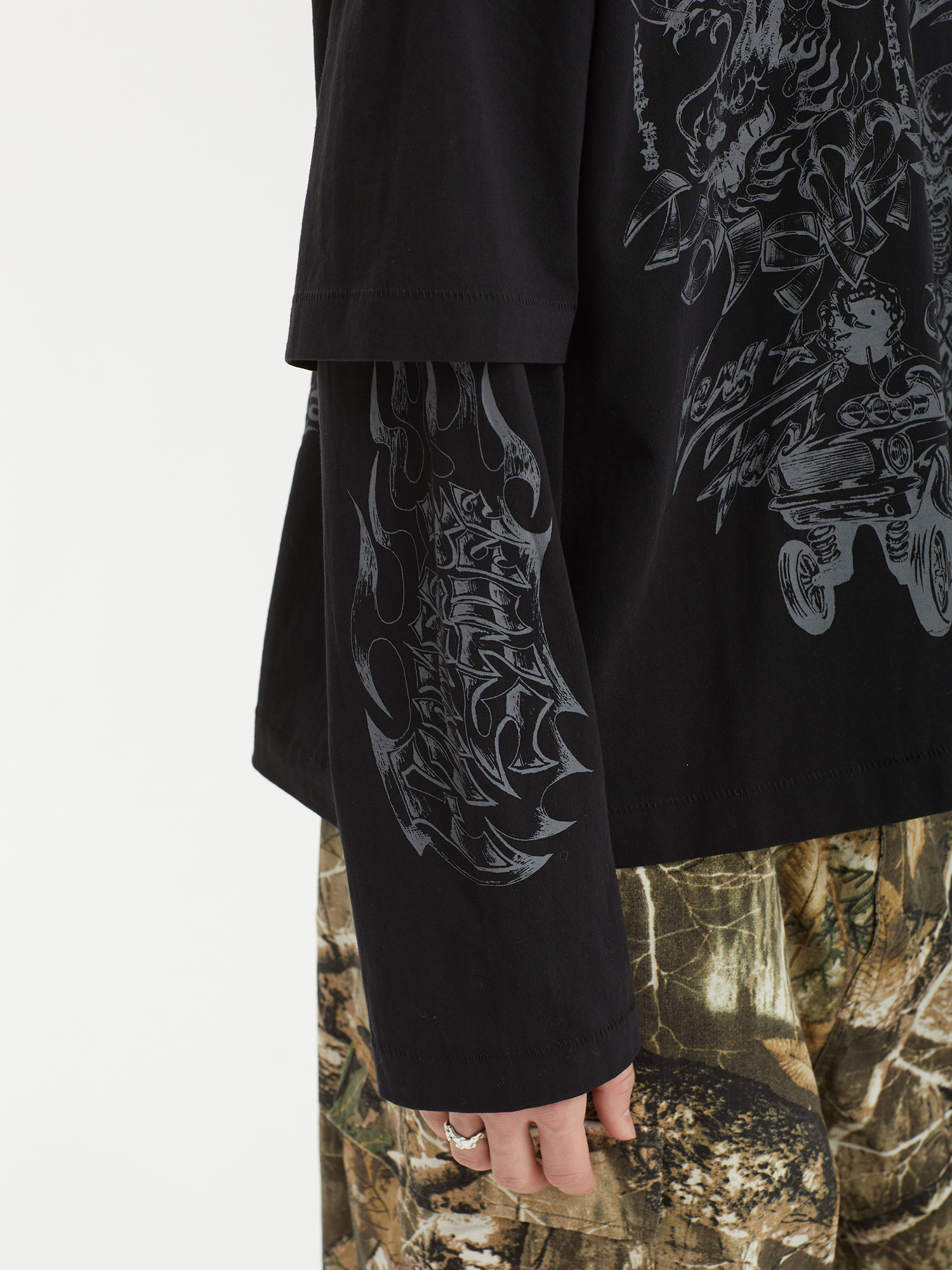 Лонгслив Jungles Jungles из хлопкового джерси с сезонными принтами. Бренд прошел сертификацию BSCI — инициативы по соблюдению социальных норм бизнеса.
