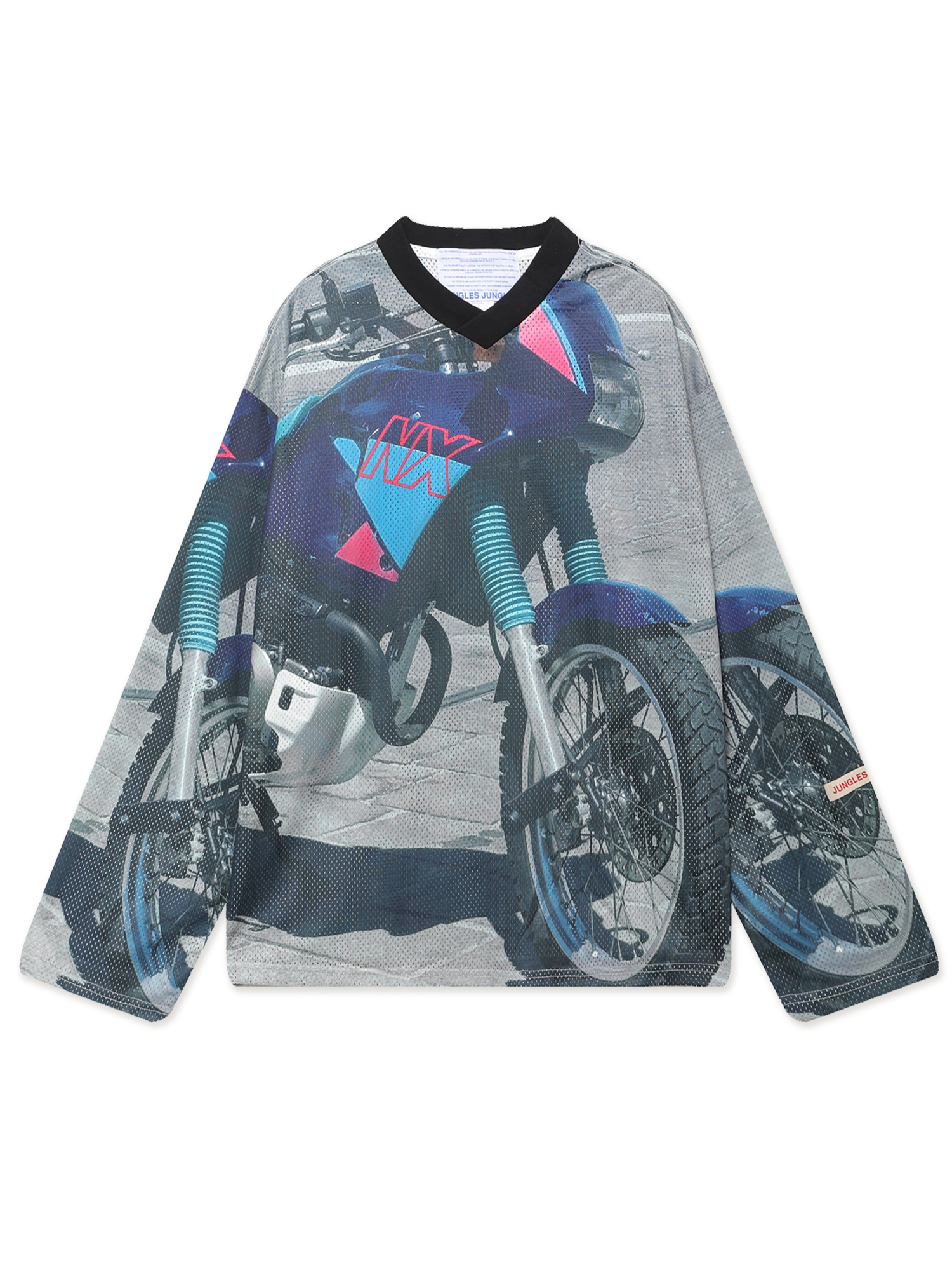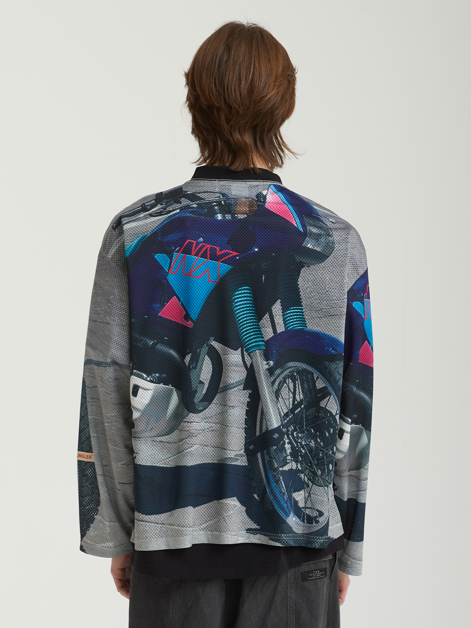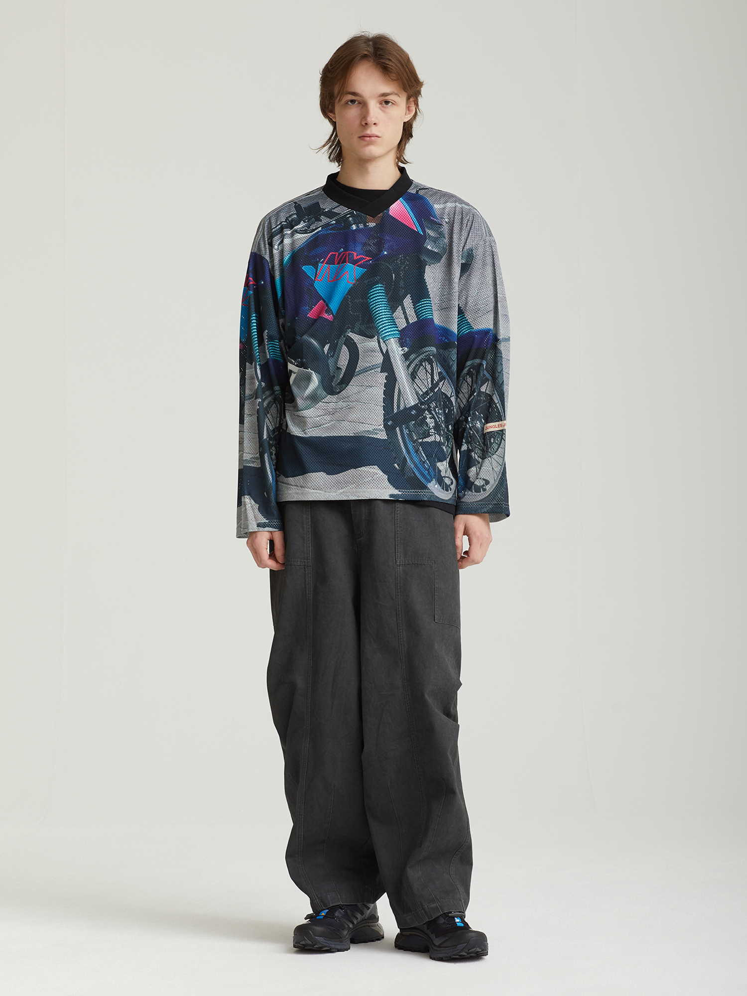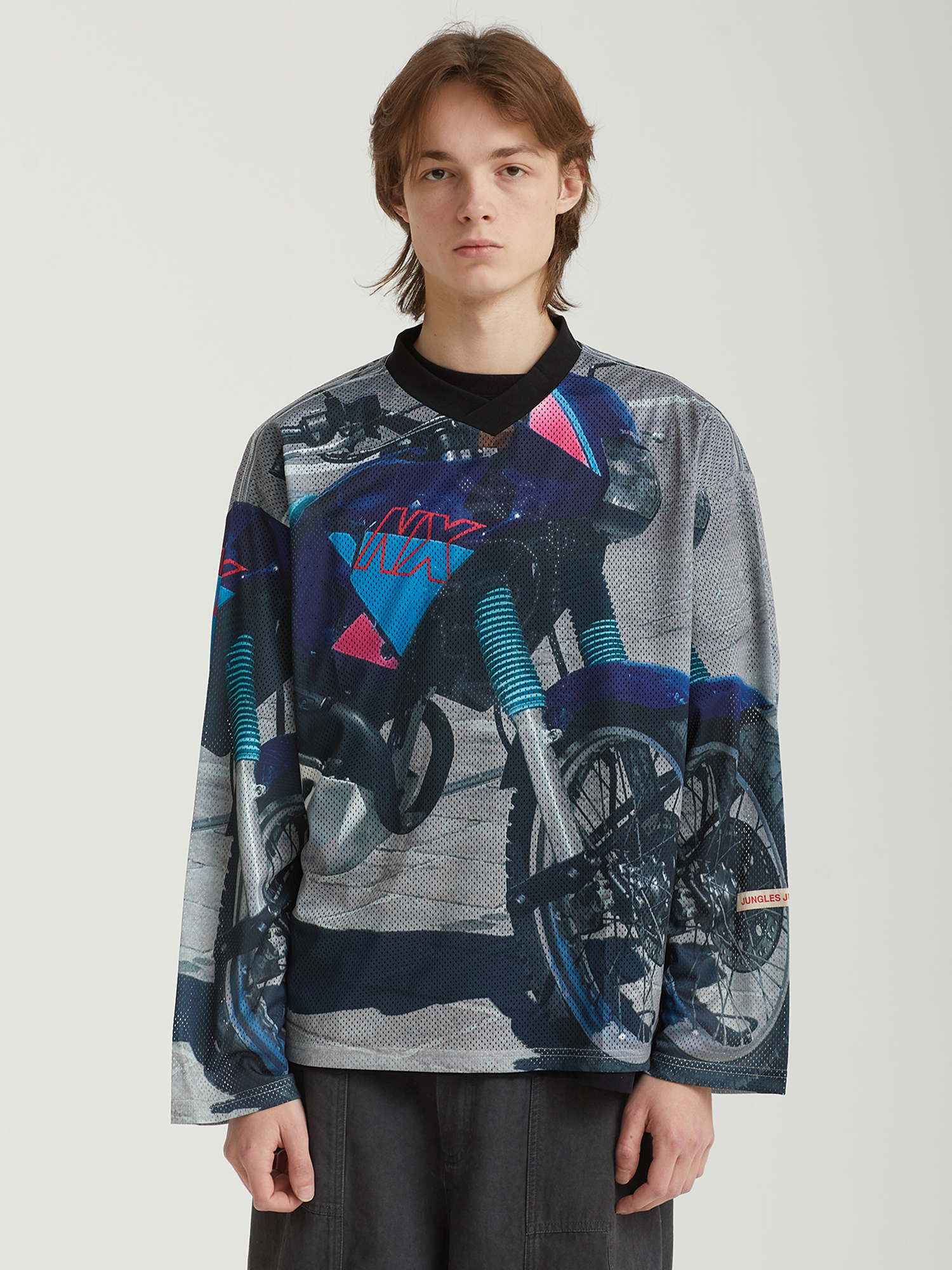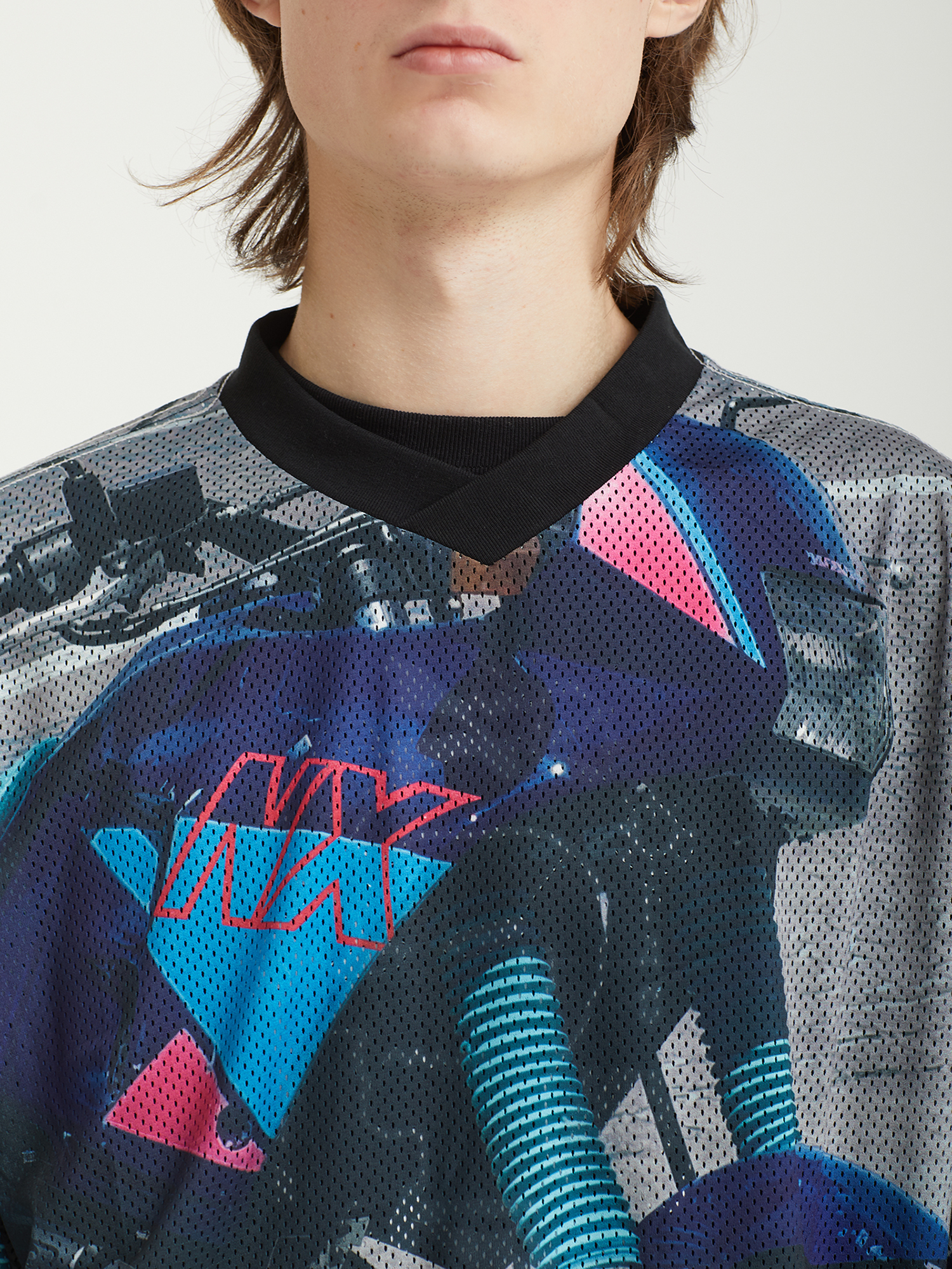 Джерси из сетки Jungles Jungles со сплошным сезонным принтом. Бренд прошел сертификацию BSCI — инициативы по соблюдению социальных норм бизнеса.