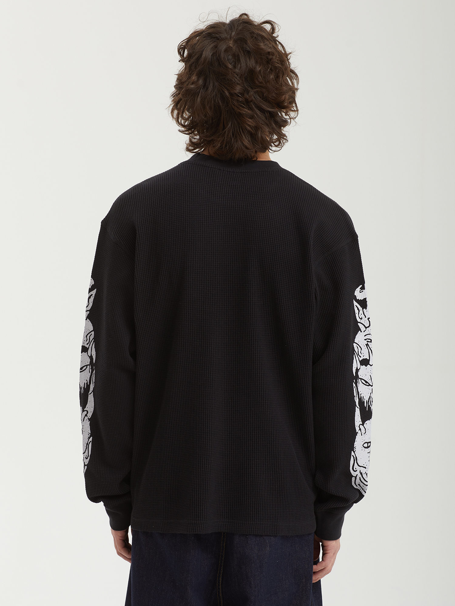 Термальный лонгслив Obey из смесового вафельного материала. Изделие дополнено контрастными принтами на рукавах.