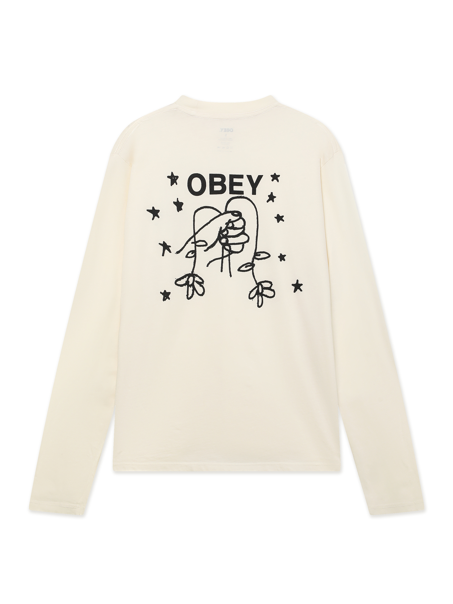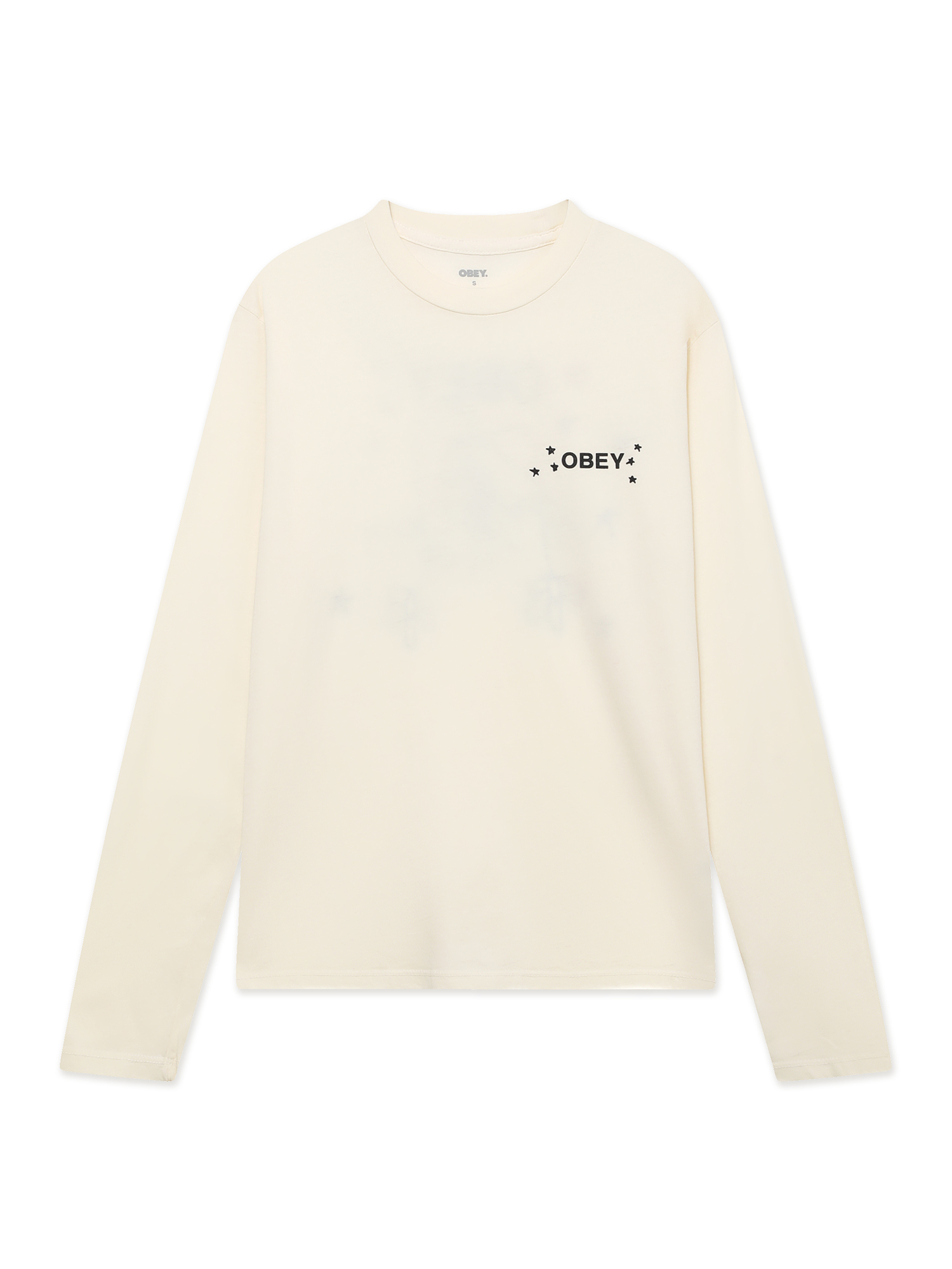Лонгслив Obey изготовлен из хлопка в свободном укороченном крое и оформлен принтами с обеих сторон.