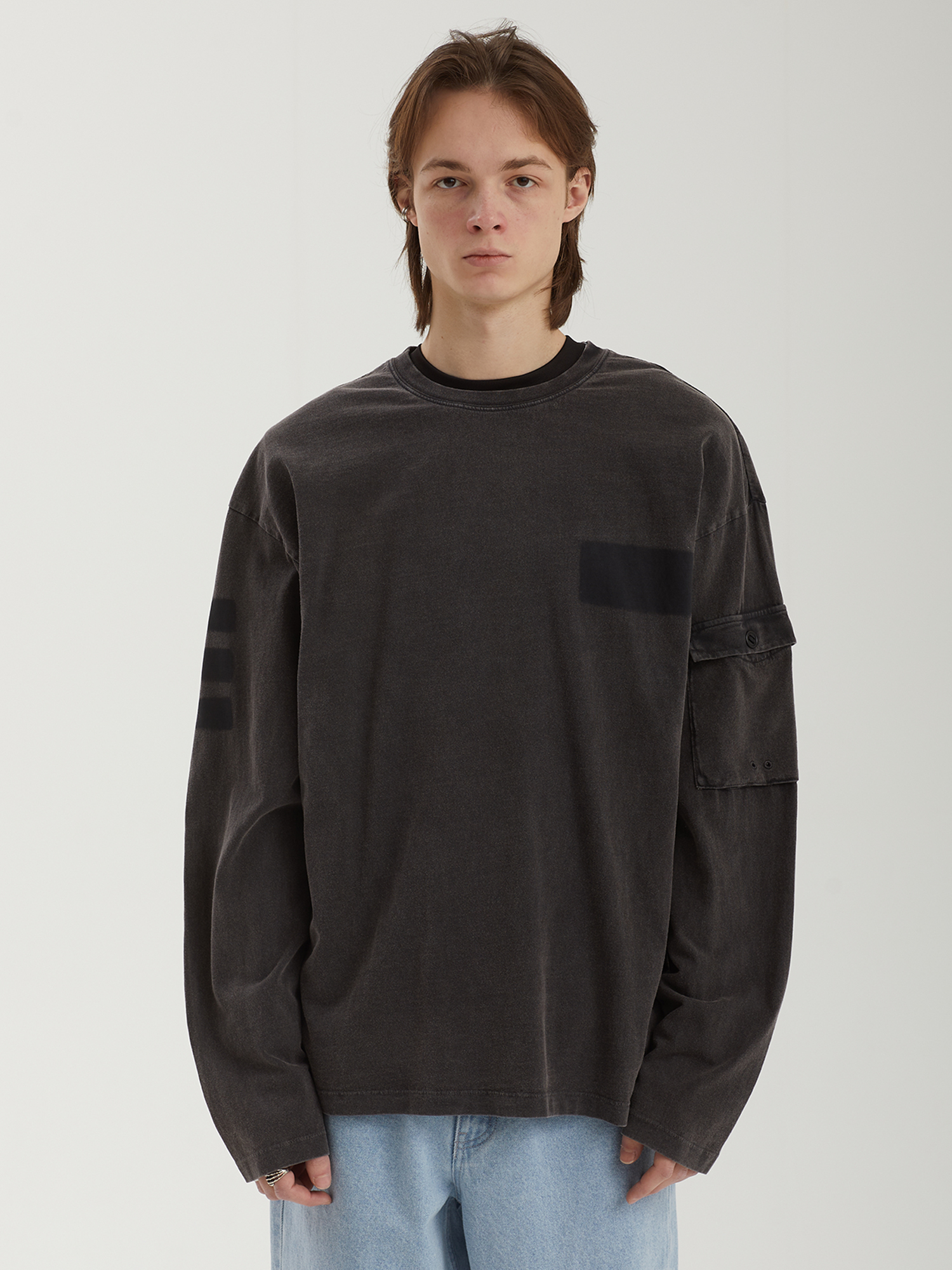 Лонгслив Peacemaker из плотного хлопкового джерси с фабричной обработкой, которая придает изделию мягкость и легкий винтажный эффект. Модель дополнена удобным накладным карманом с клапаном на рукаве.