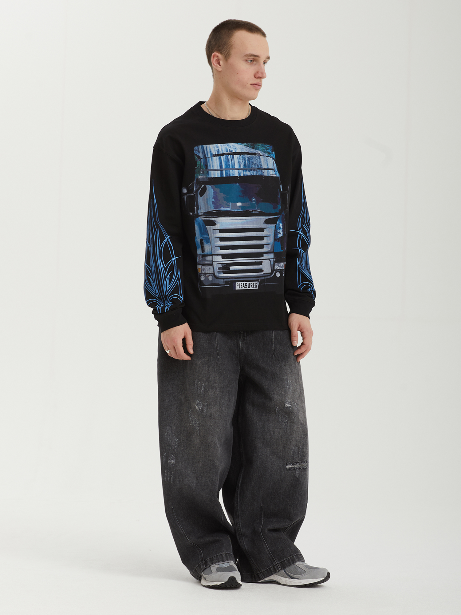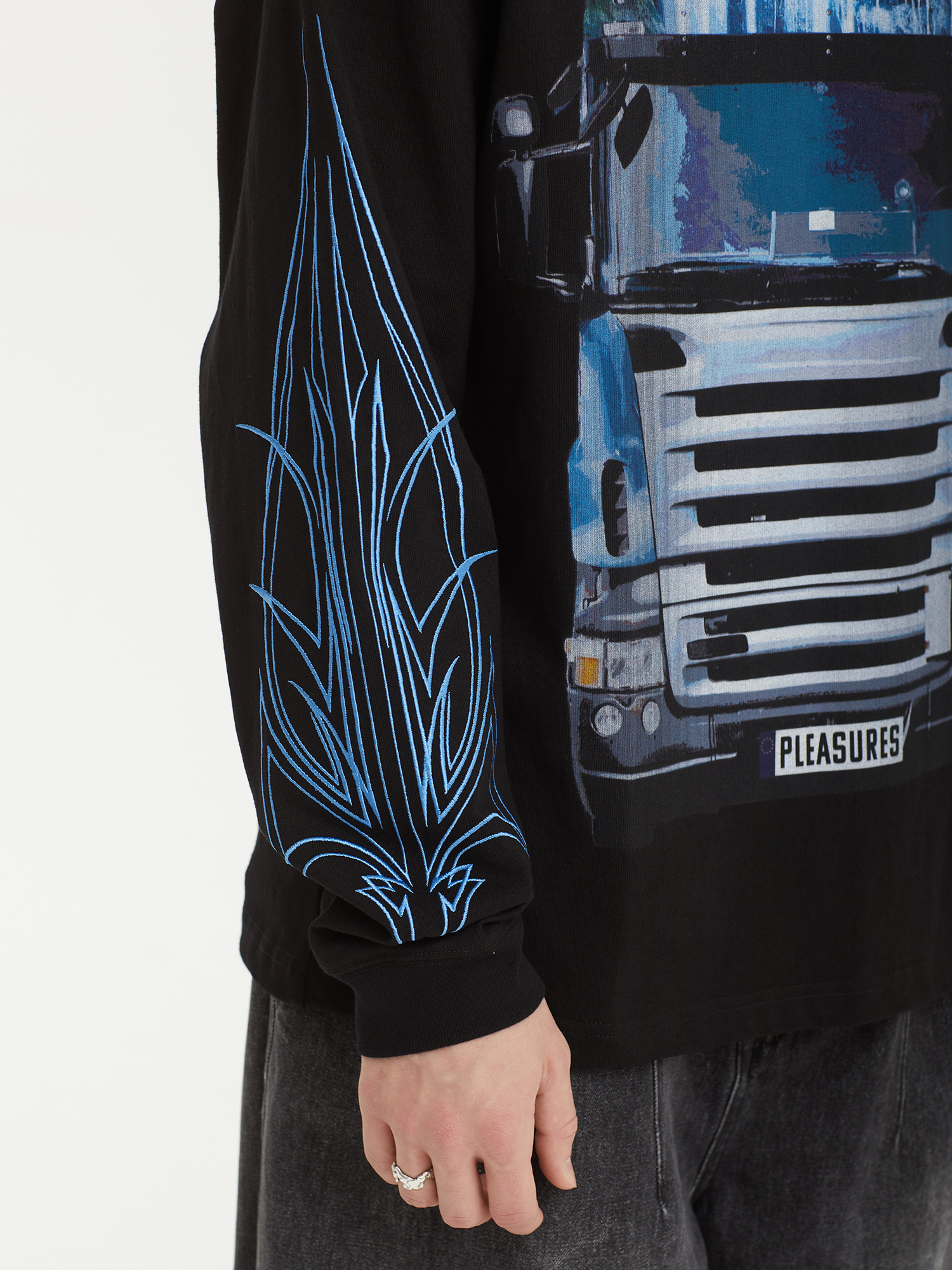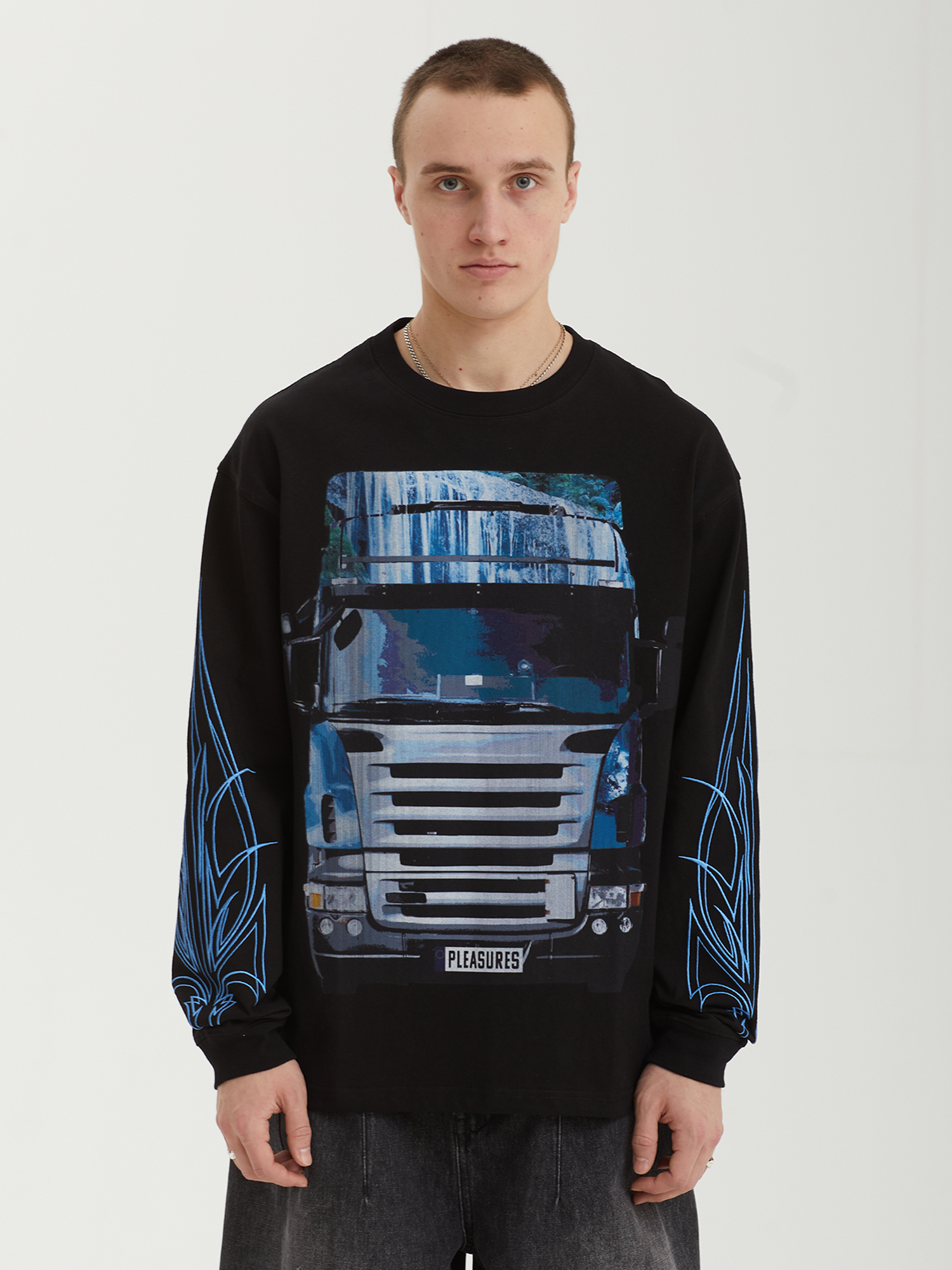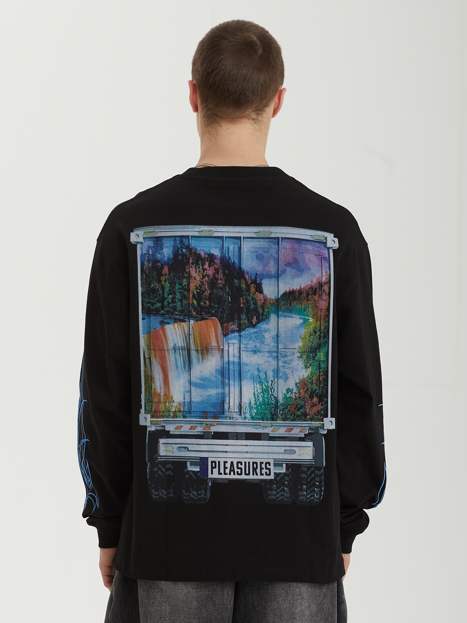 Лонгслив Pleasures из плотного хлопкового джерси с сезонными графическими принтами.