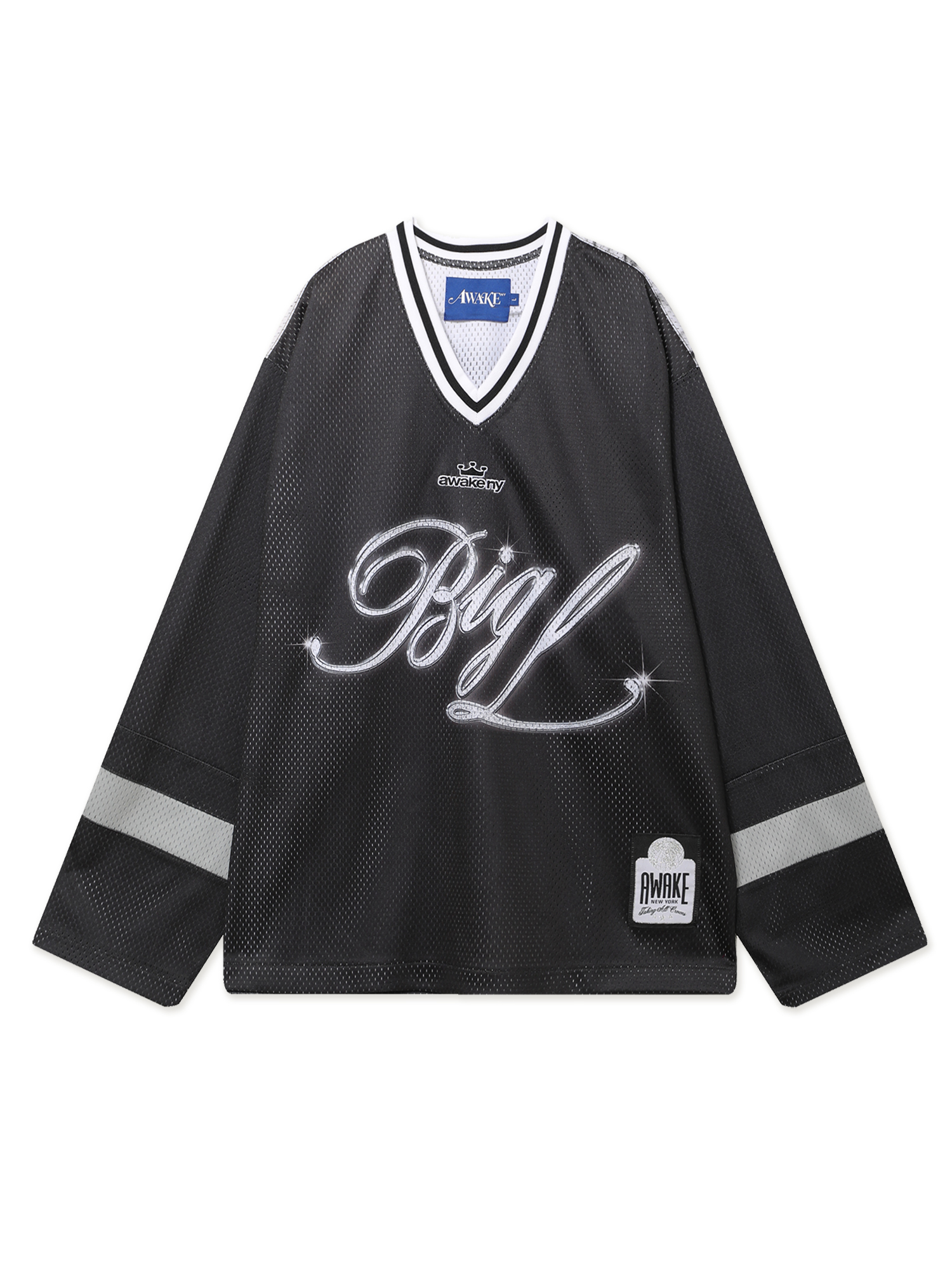 Хоккейное джерси из капсульной коллекции Awake NY, посвященной легендарному нью-йоркскому хип-хоп-исполнителю Big L. Изделие выполнено из легкой сетчатой ткани в свободном крое. Полноразмерный принт на спине выступает главным визуальным акцентом модели. Фронтальная часть дополнена вышитым логотипом бренда и тканой нашивкой.