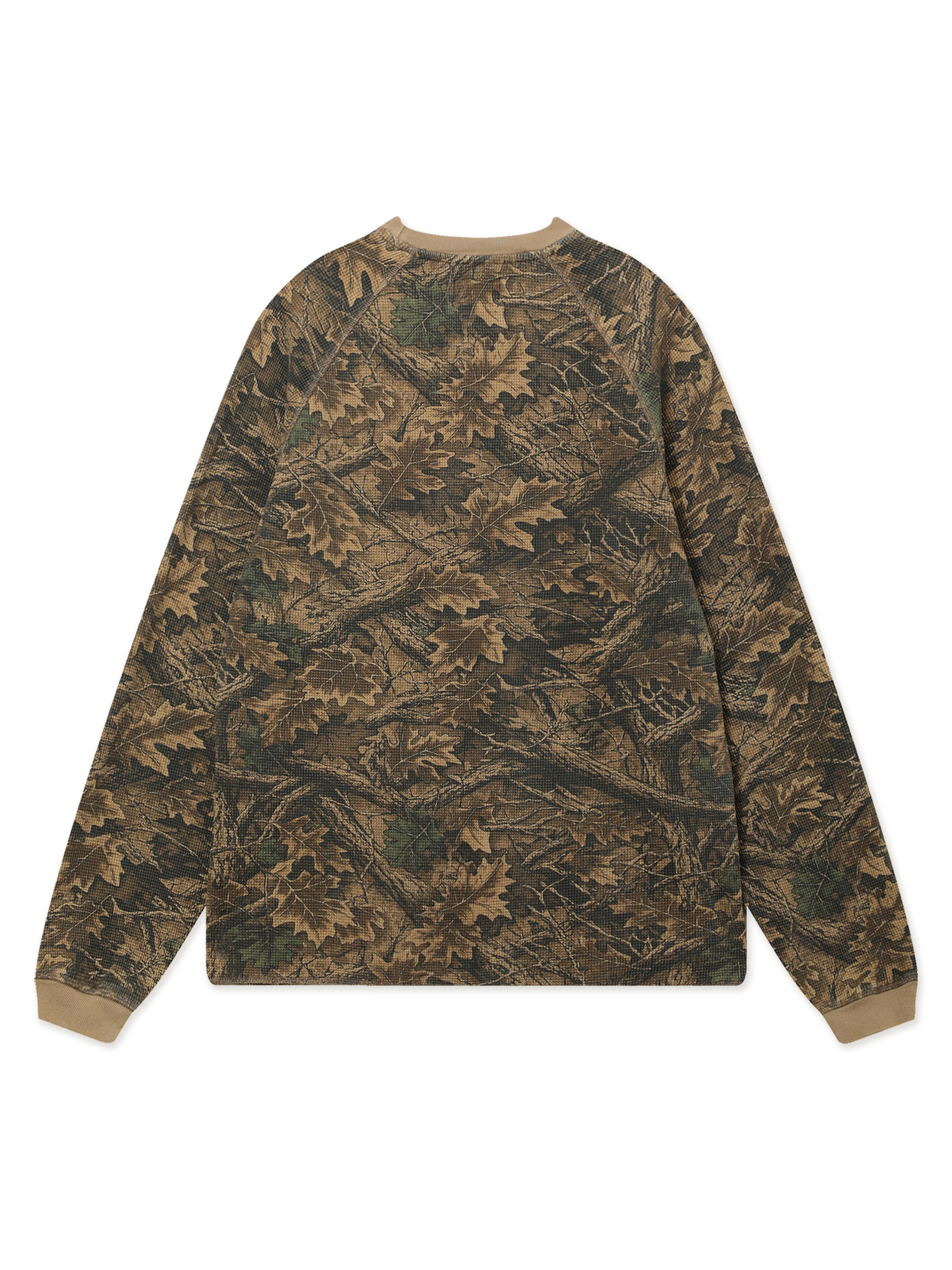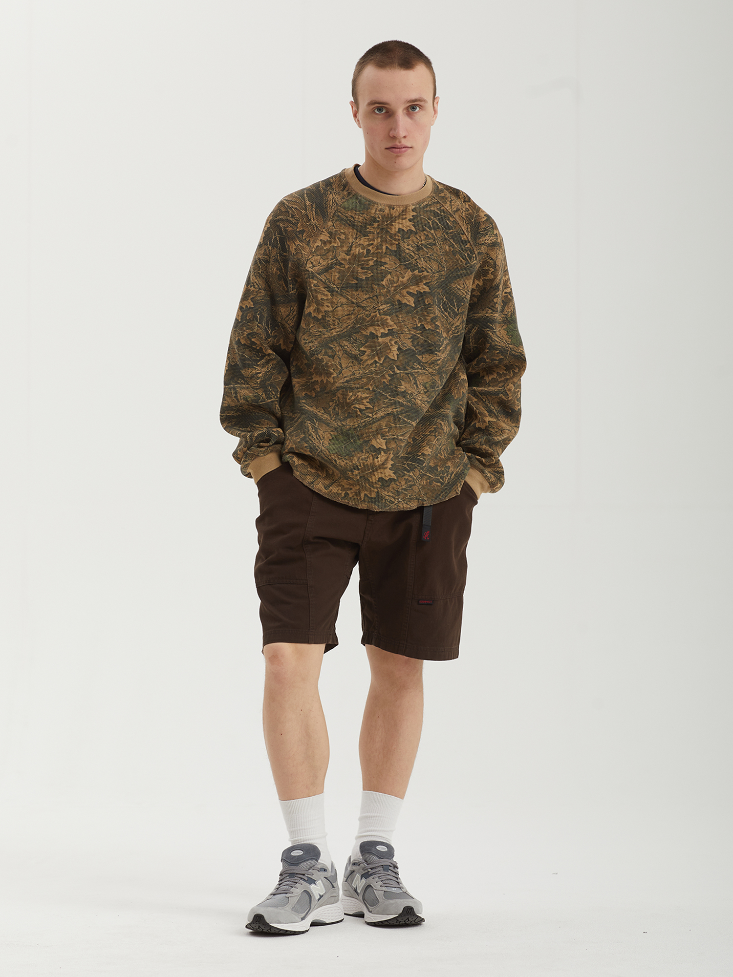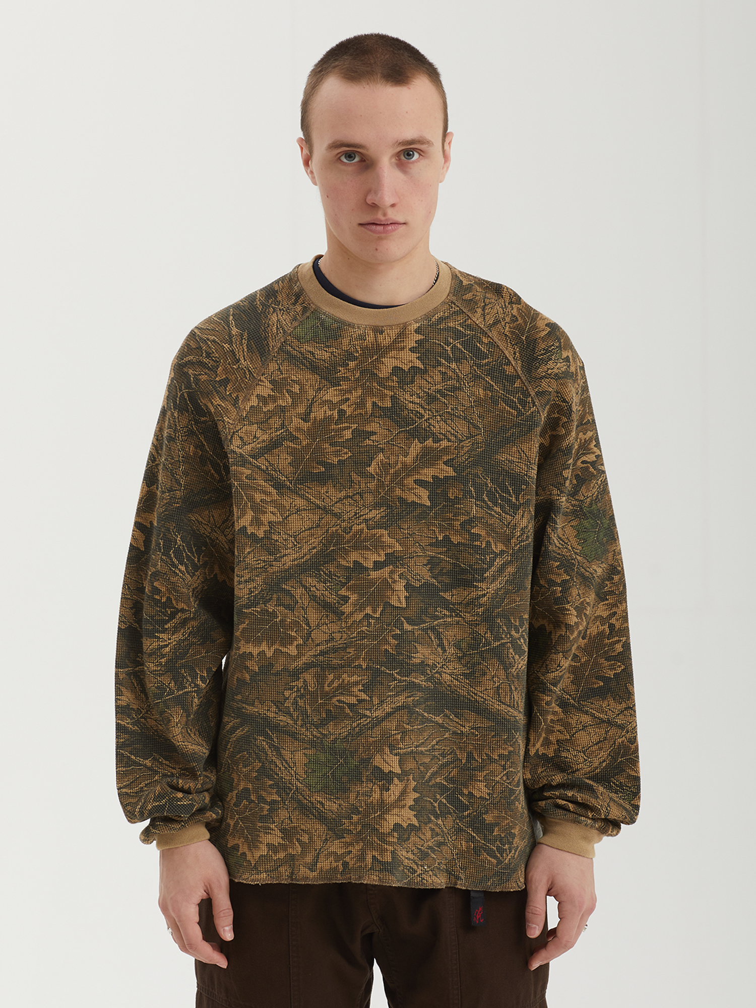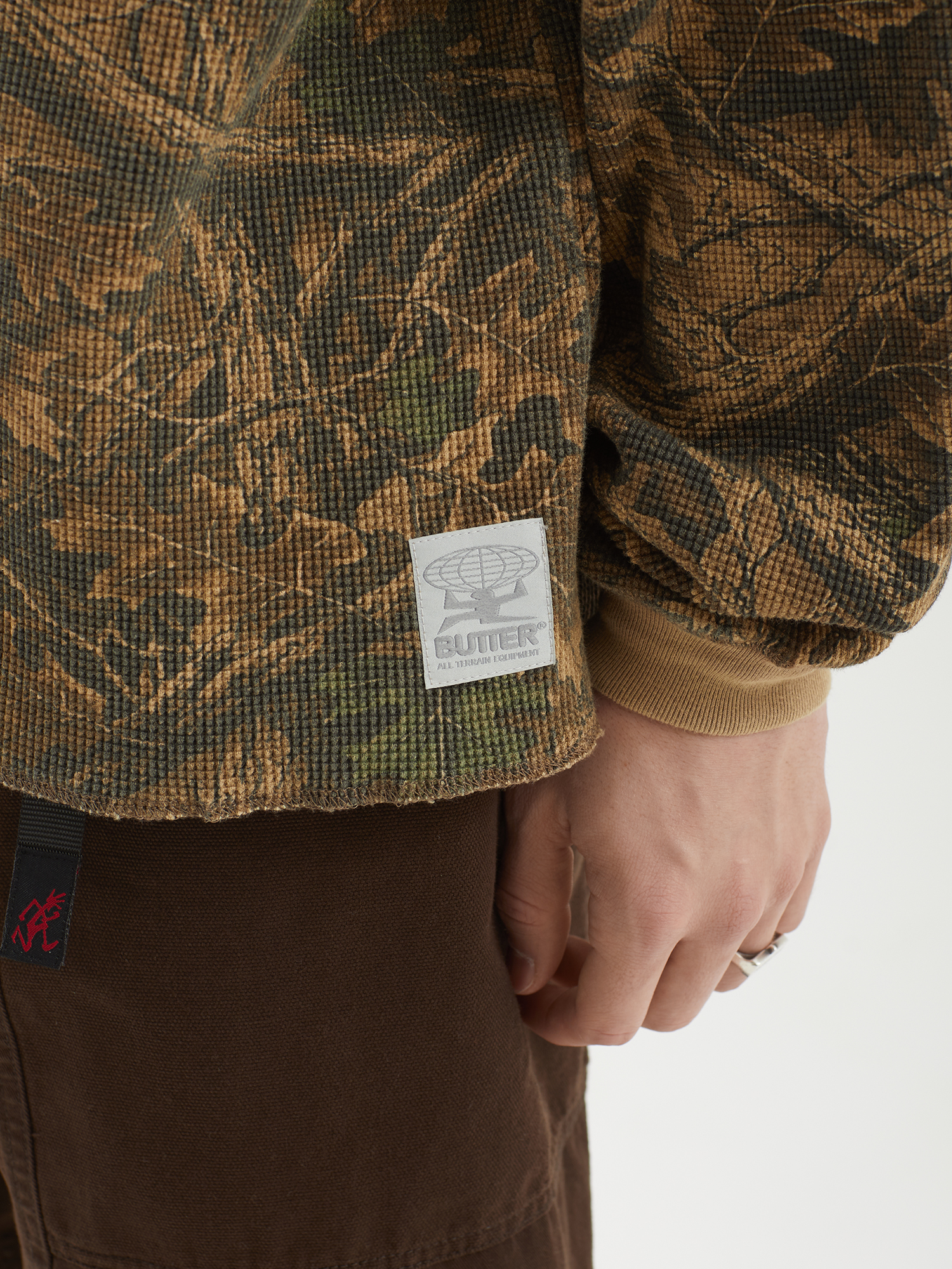 Джемпер Butter Goods из плотного вафельного материала с камуфляжным принтом. Изделие выстирано в готовом виде для мягкости и легкого винтажного эффекта.