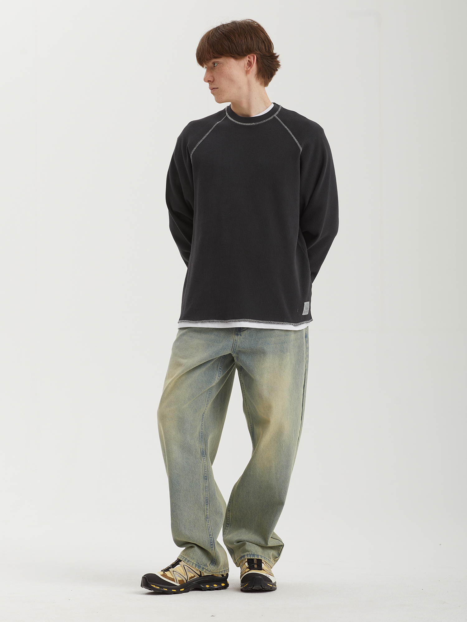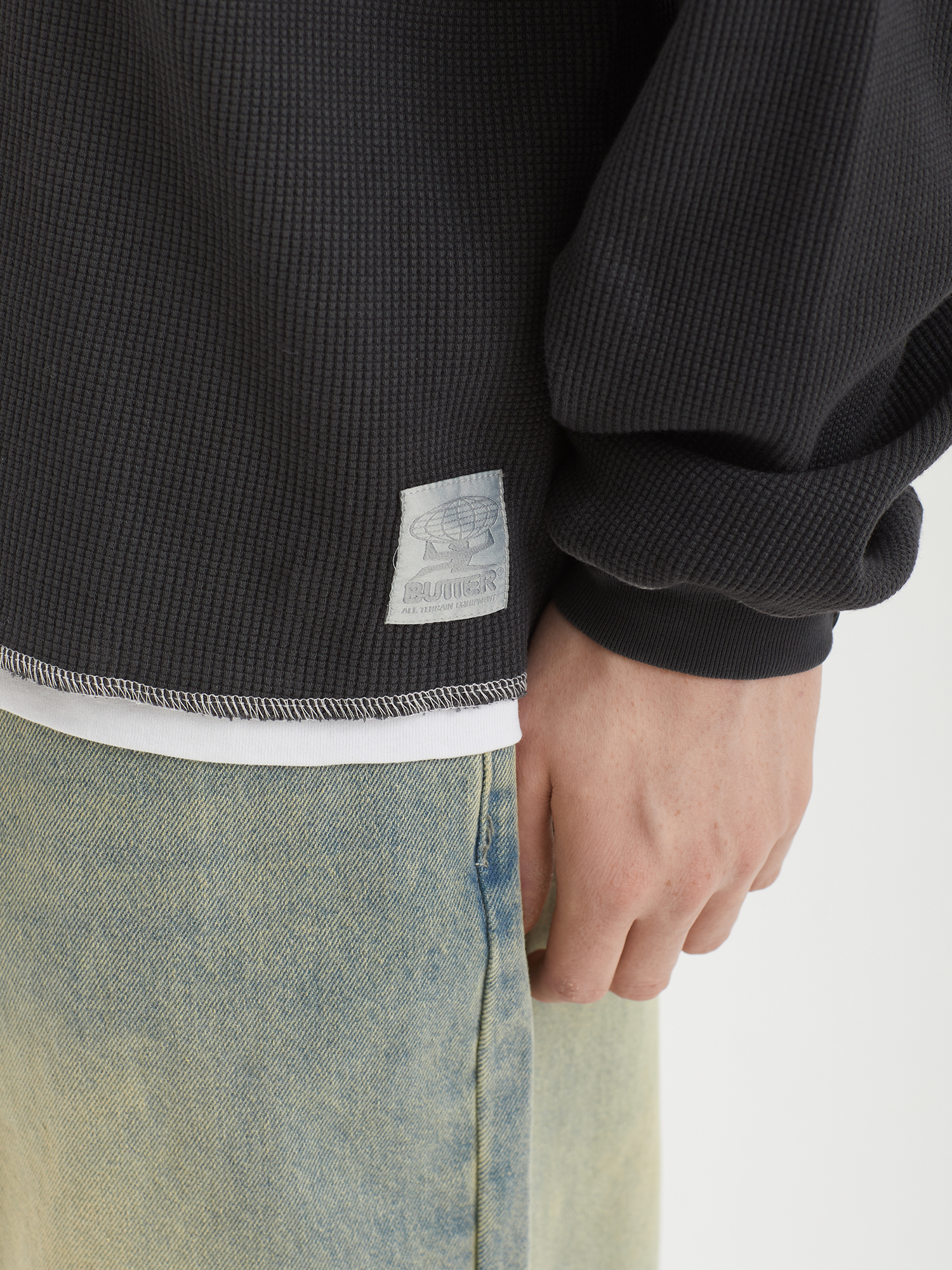 Джемпер Butter Goods из плотного вафельного материала. Изделие выстирано в готовом виде для мягкости и легкого винтажного эффекта.