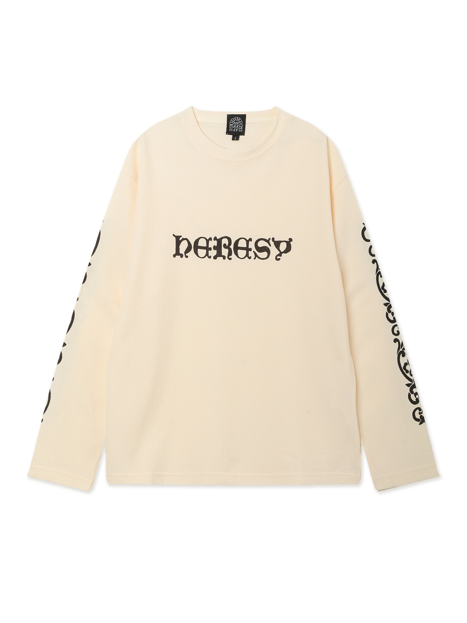 Джемпер с логотипами Heresy из плотного вафельного материала. Изделие предварительно выстирано для минимизации усадки.