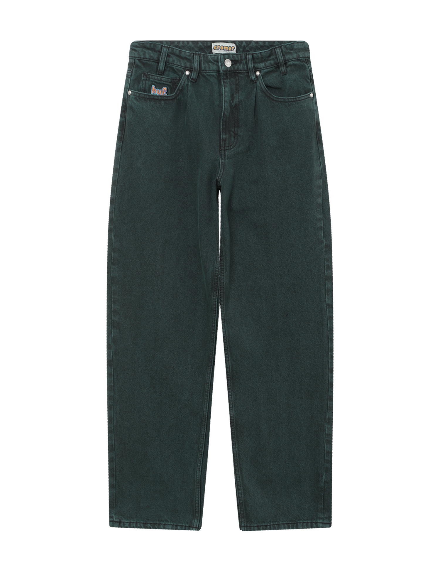 Джинсы Huf из выстиранного хлопкового денима с архивным объемным силуэтом. Изделие дополнено закрепляющими строчками для дополнительной износостойкости.