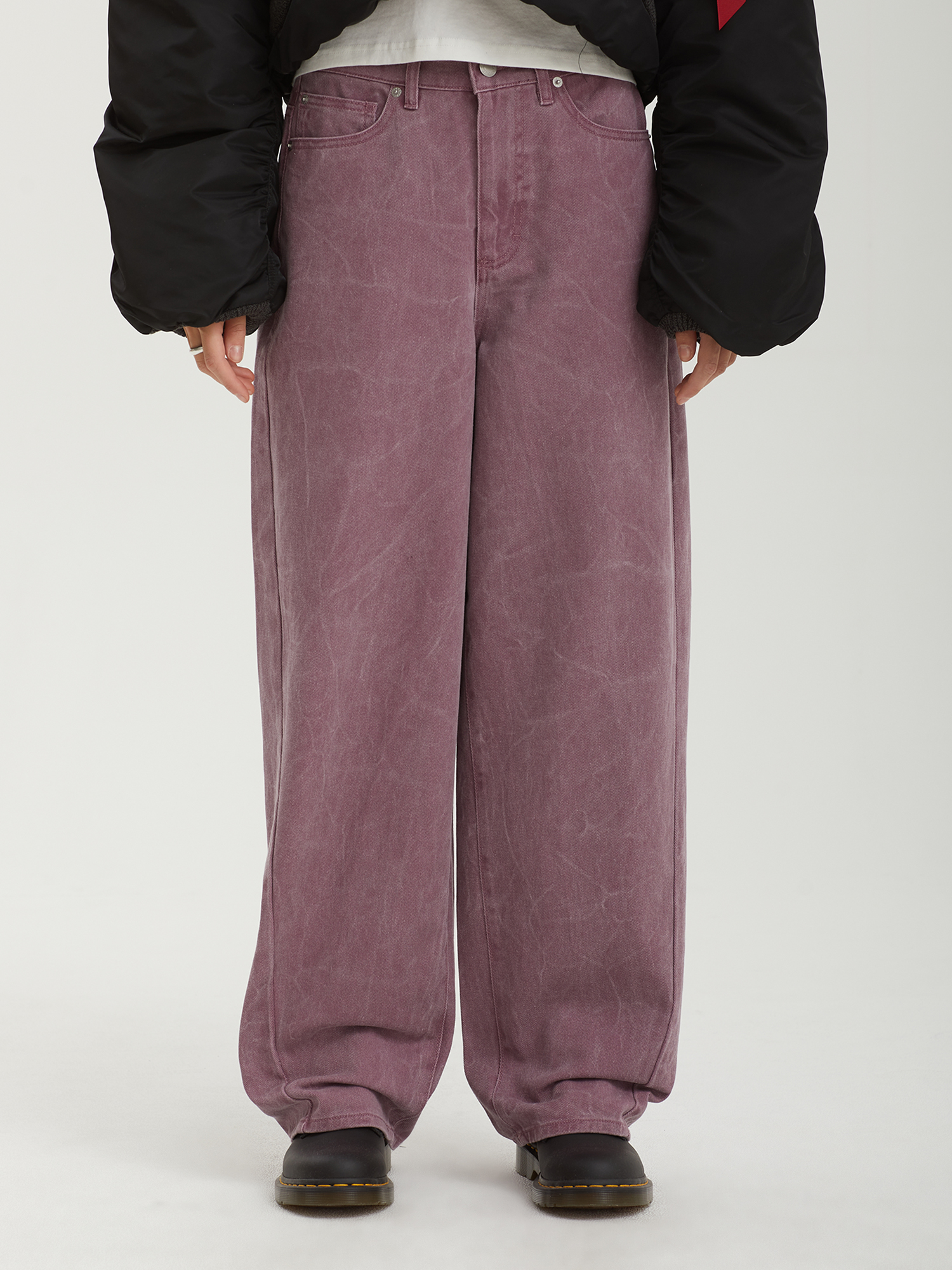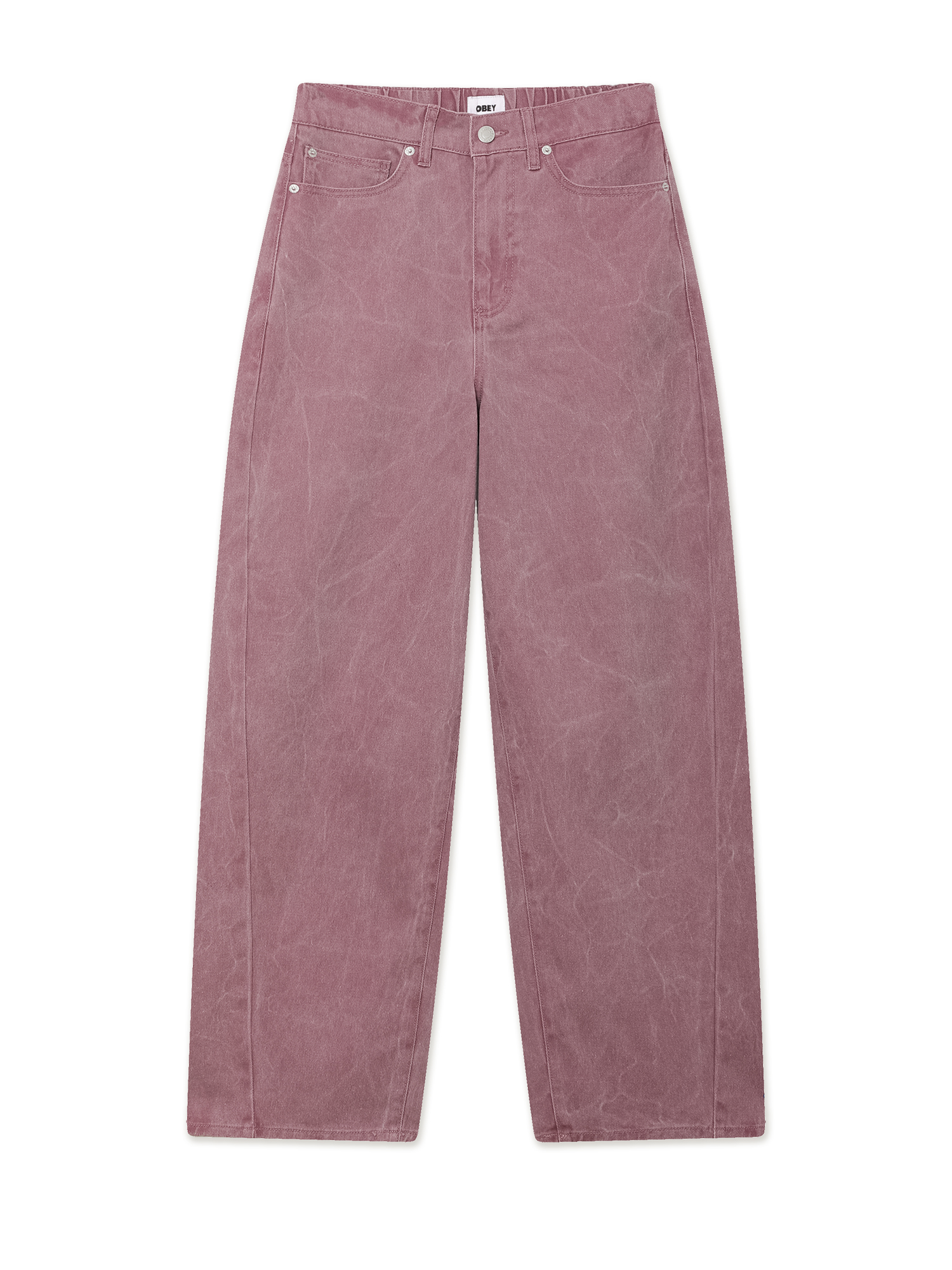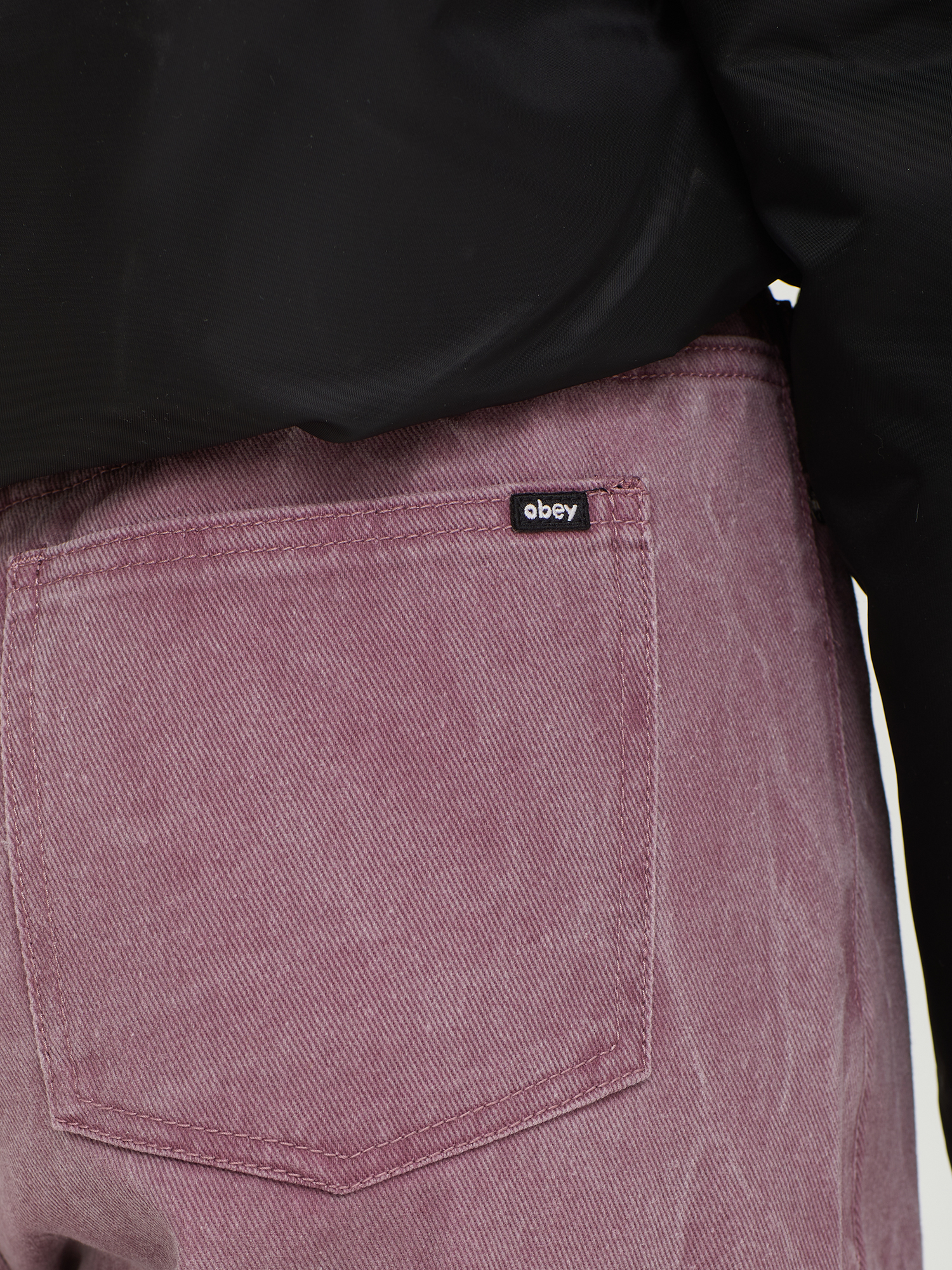 Джинсы Obey из цветного хлопкового денима. Изделие выстирано для получения оригинального рисунка ткани.
