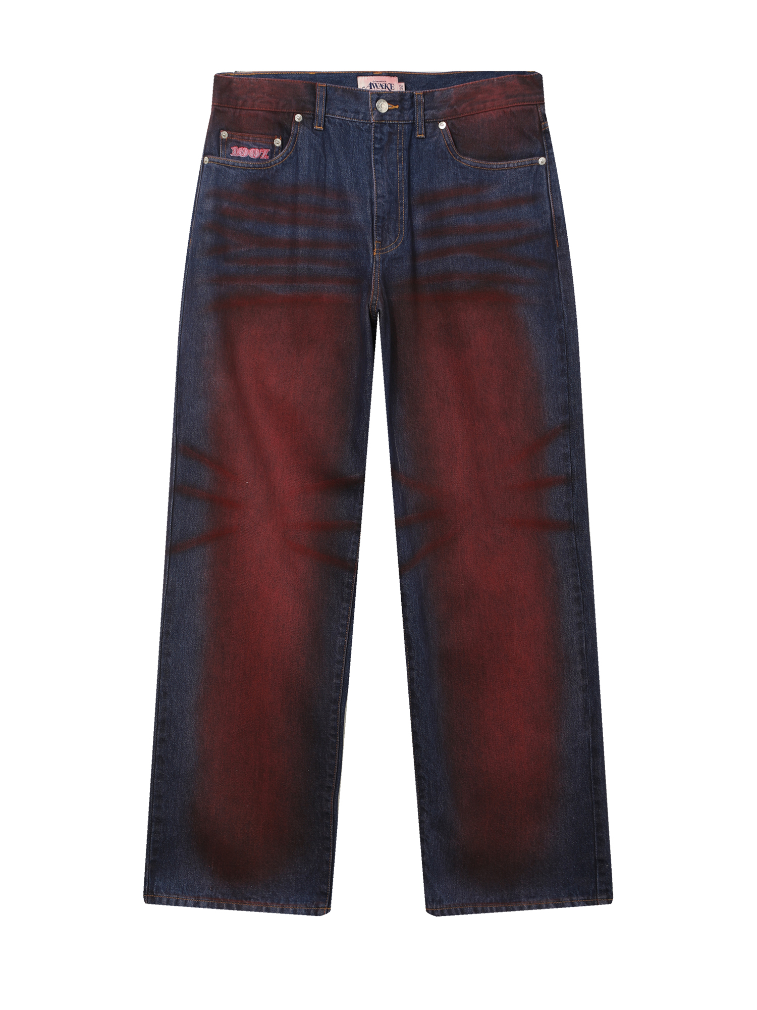 Джинсы Awake NY выполнены из плотного хлопкового денима и имеют свободный baggy-крой — широкий в области бедер и колен и слегка зауженный к низу изделия.