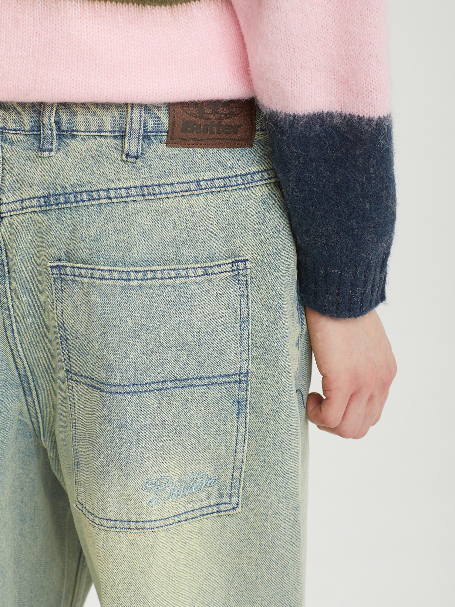 Джинсы Butter Goods в оттенке Sunfade Blue выполнены из хлопкового денима и имеют характерный свободный baggy-крой. Выраженный эффект выцветания придает ткани винтажный характер. Внутренняя часть пояса и карманов выполнена из клетчатого текстиля. На заднем кармане — лаконичная вышивка, а на поясе — прочный PU-патч. Шлевки дополнены внутренним шнурком, позволяющим настроить посадку без ремня.