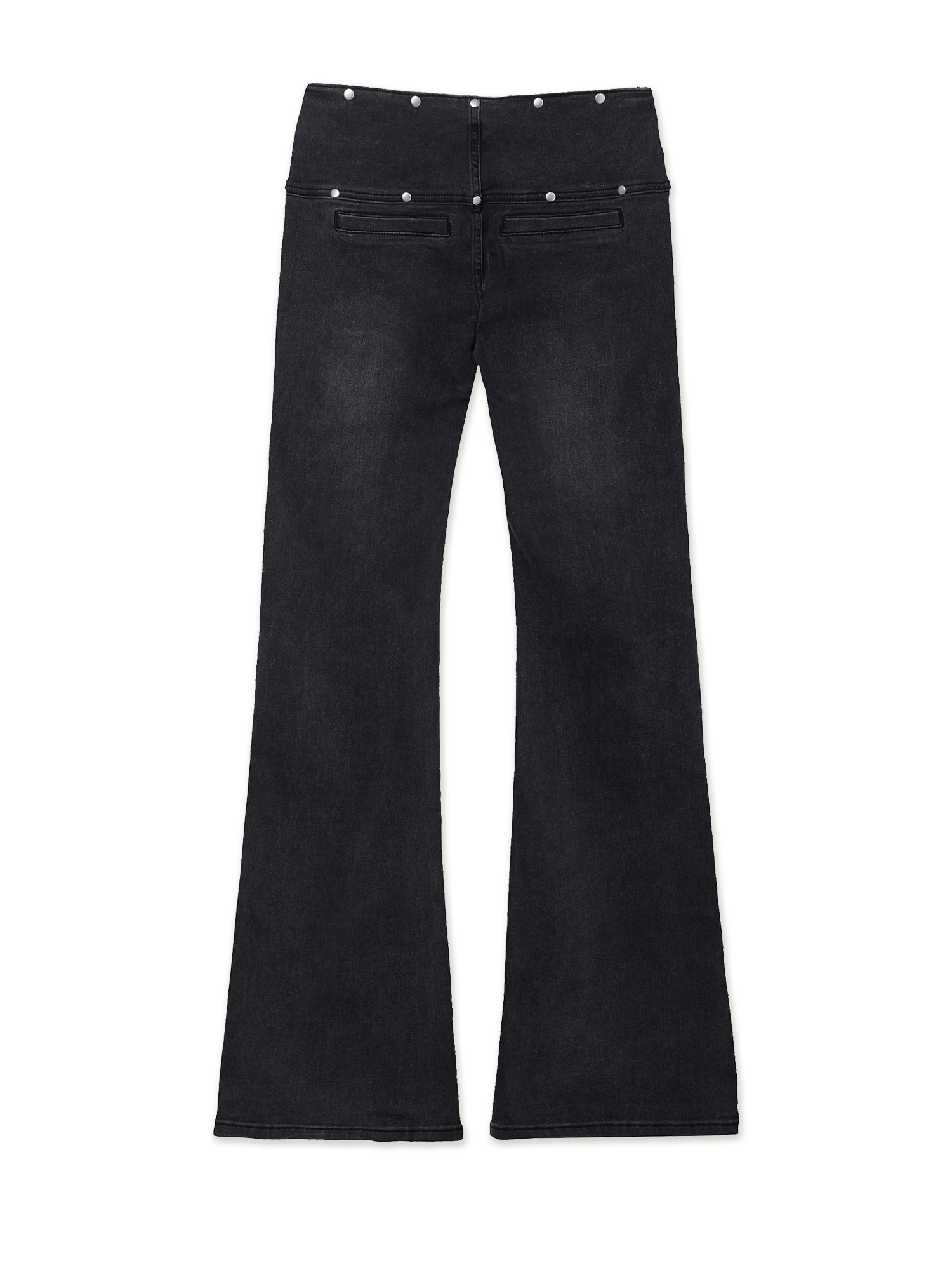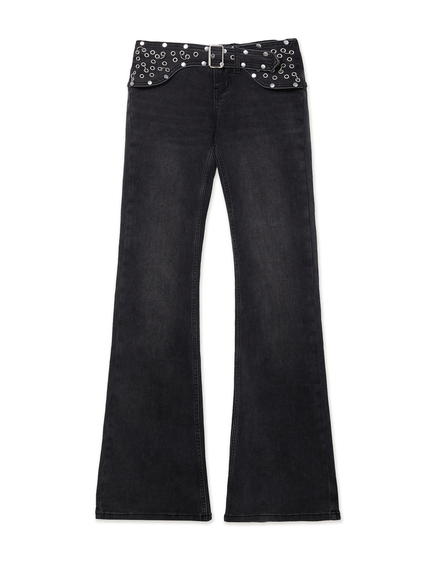 Джинсы Ragged Jeans из эластичного выстиранного денима. Низкая посадка и декоративные элементы в стиле 2000-х годов.