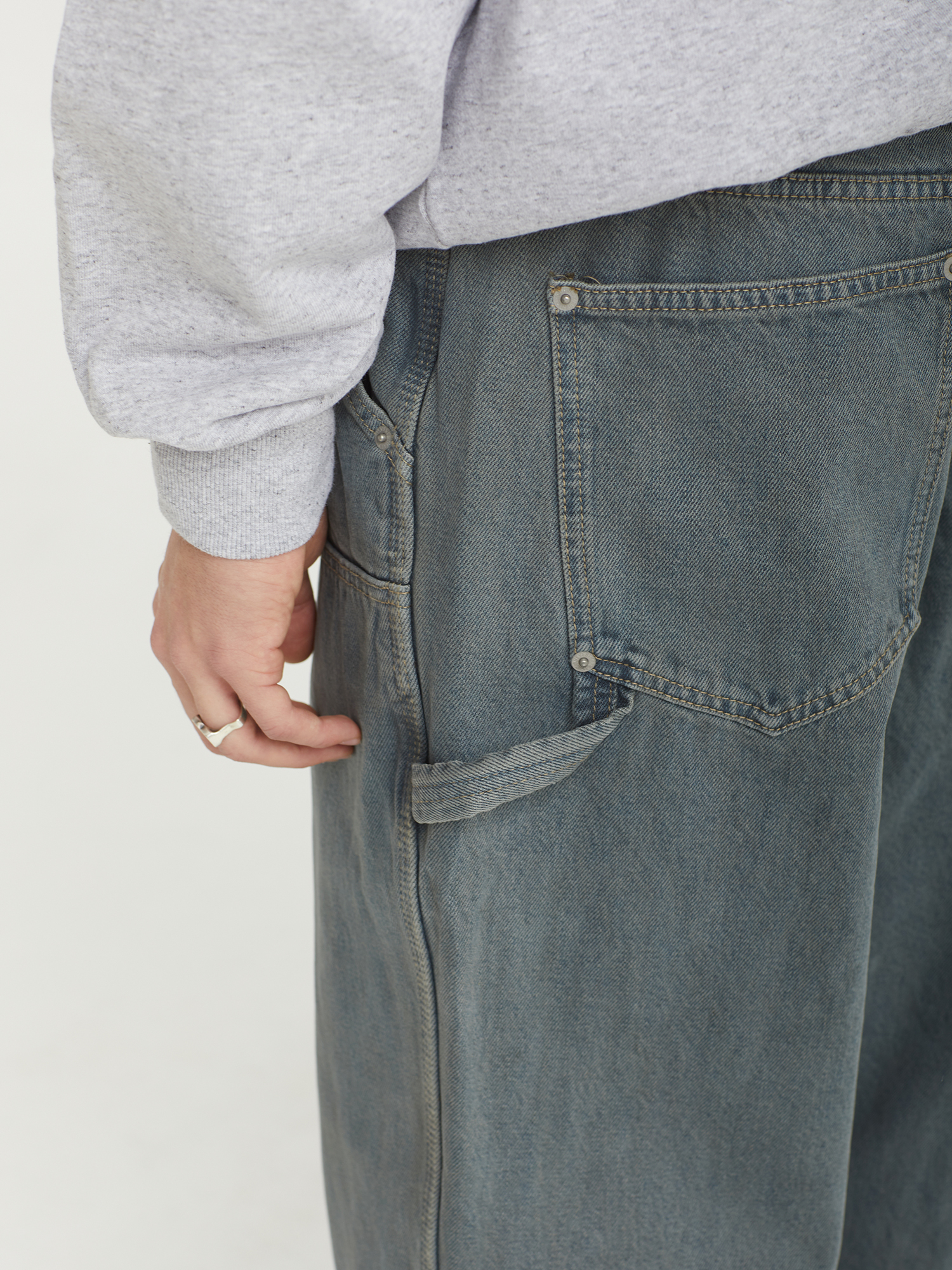 Джинсы thisisneverthat выполнены из плотного хлопкового денима и имеют расслабленный силуэт. Фабричная обработка Stone washing придает ткани выразительную винтажную фактуру, а усиленные накладки на коленях повышают износостойкость модели. Джинсы оснащены практичными накладными карманами и петлей для инструмента.