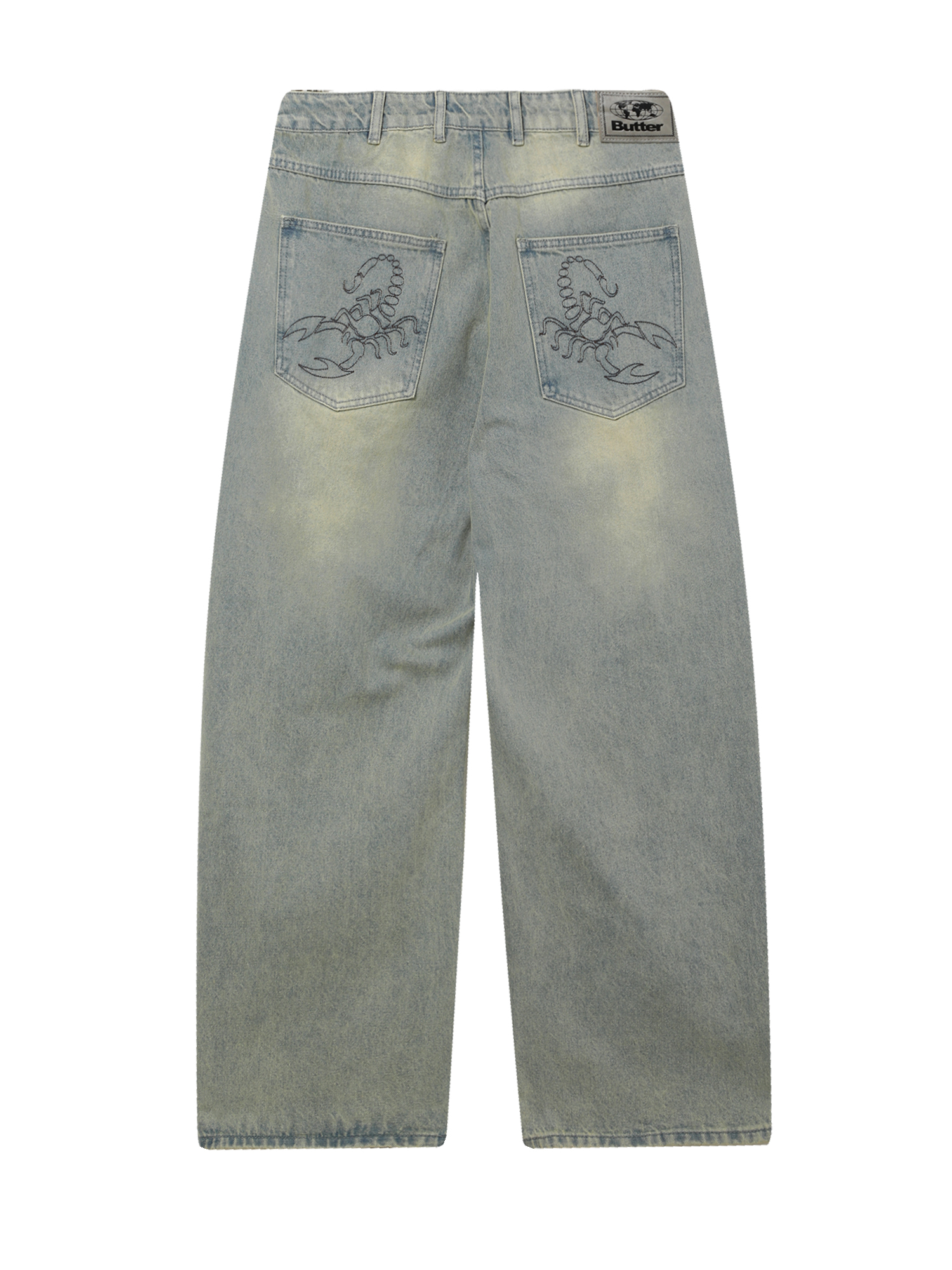 Джинсы Butter Goods из хлопкового денима с вышитыми скорпионами.