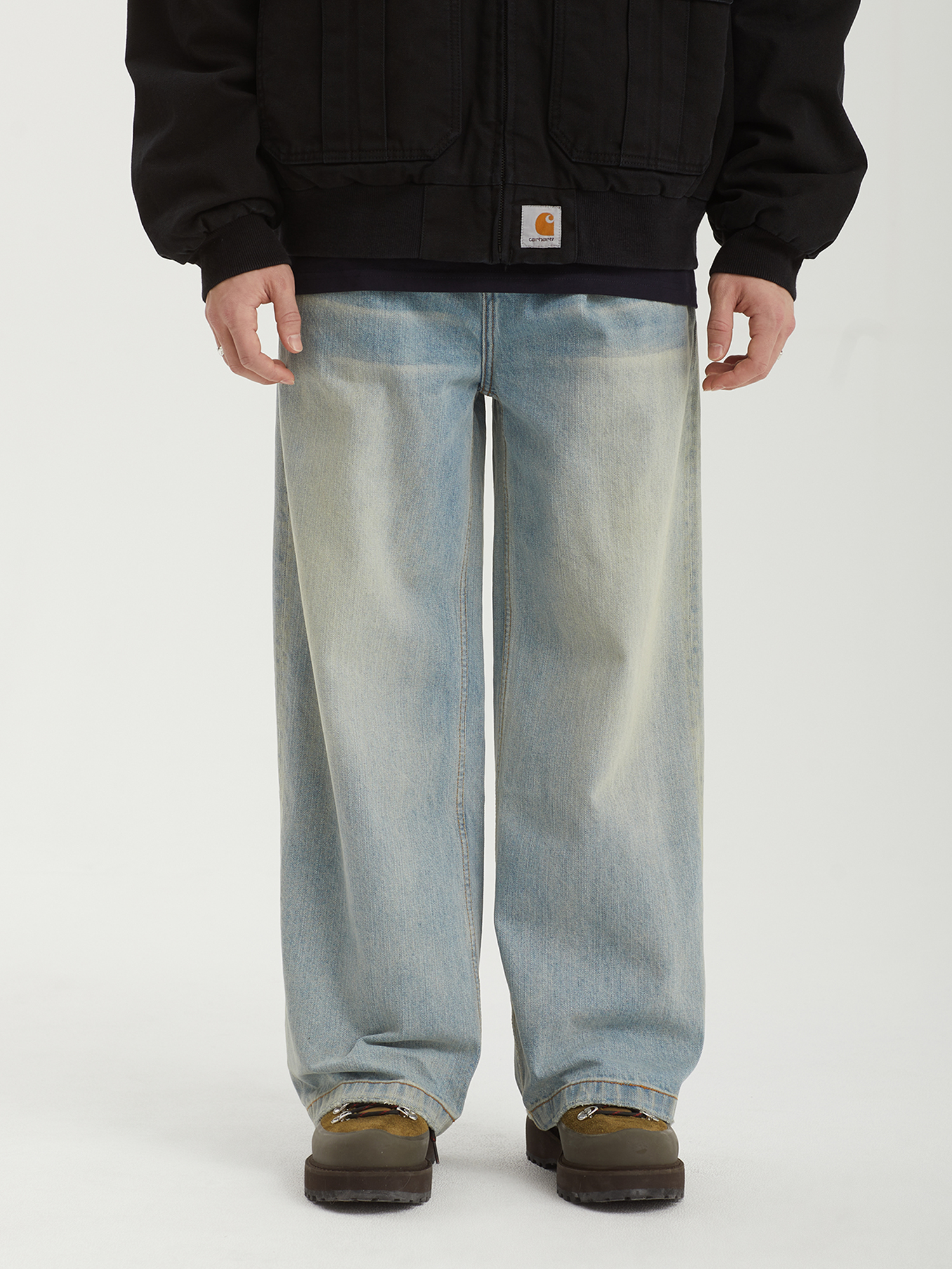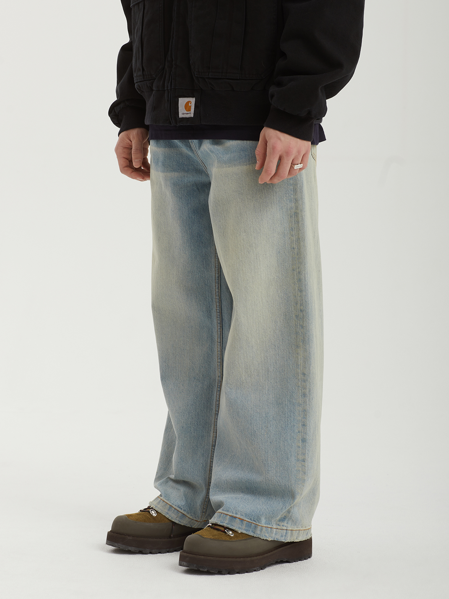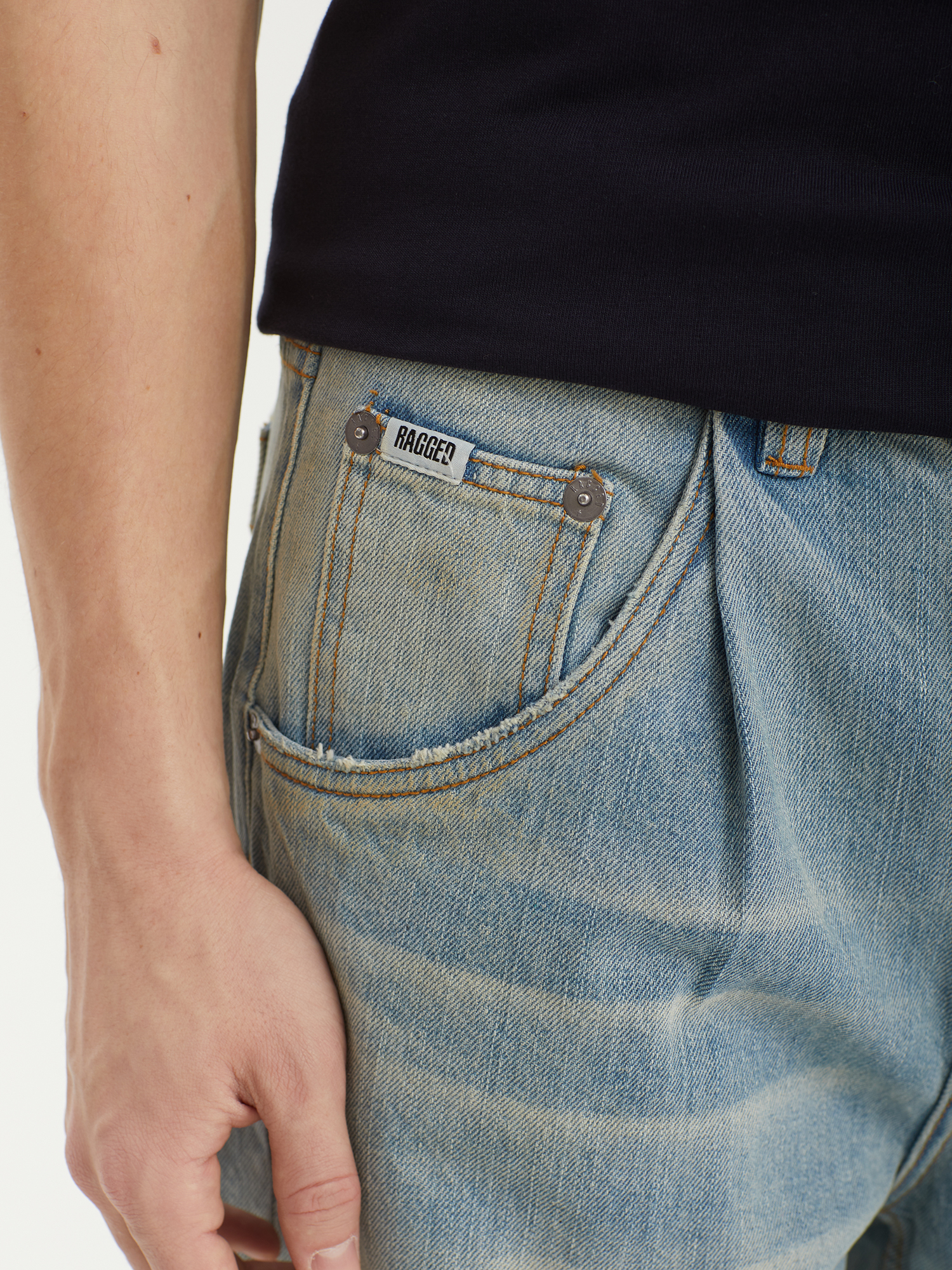 Джинсы Ragged Jeans из плотного денима без добавления эластана. Изделие дополнено фирменной перекрестной строчкой на задних карманах.