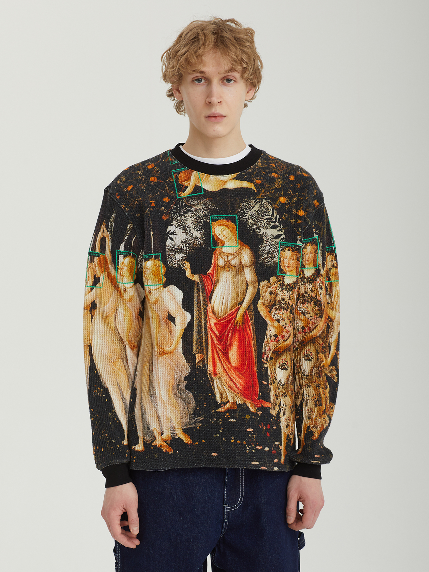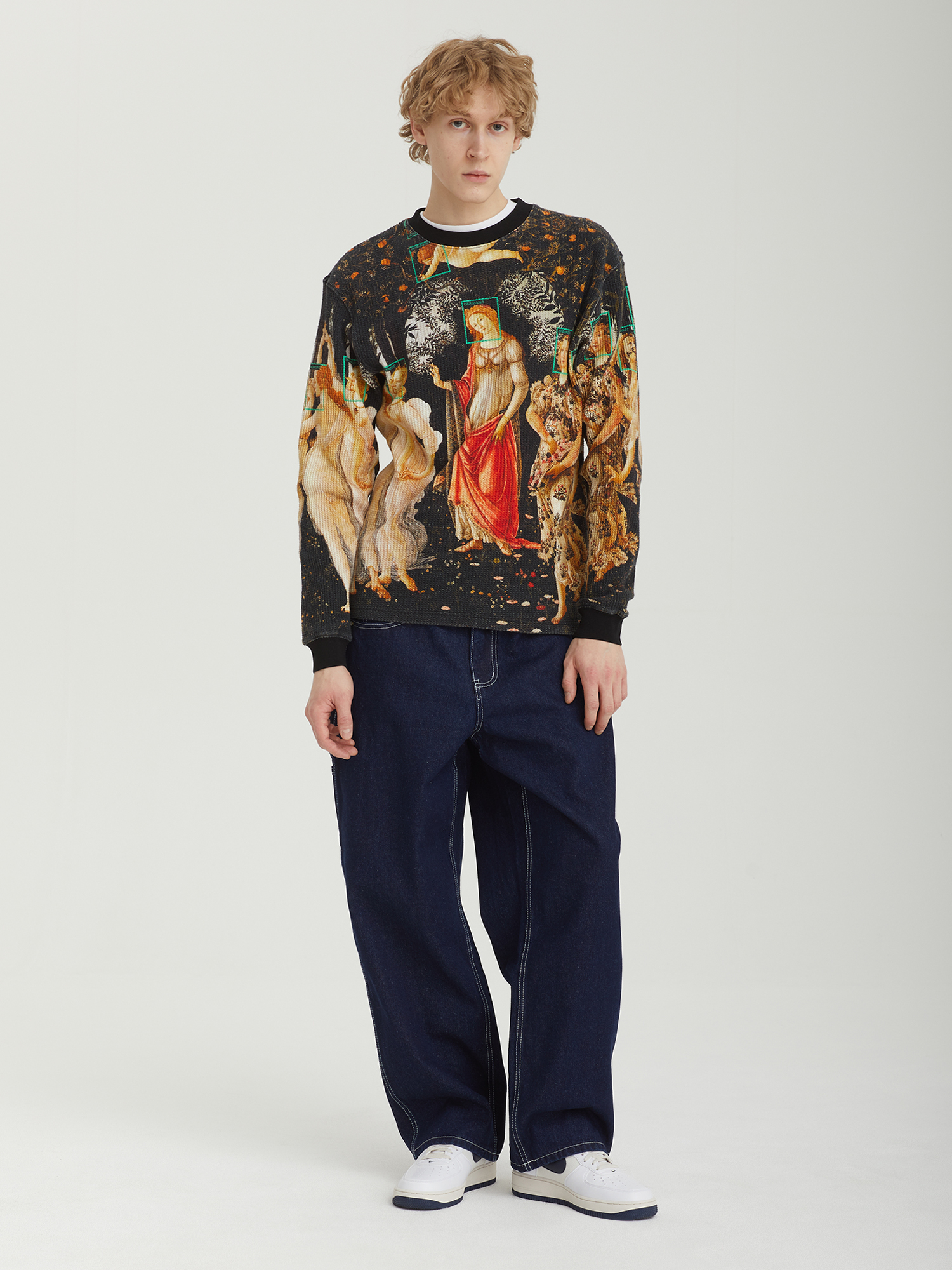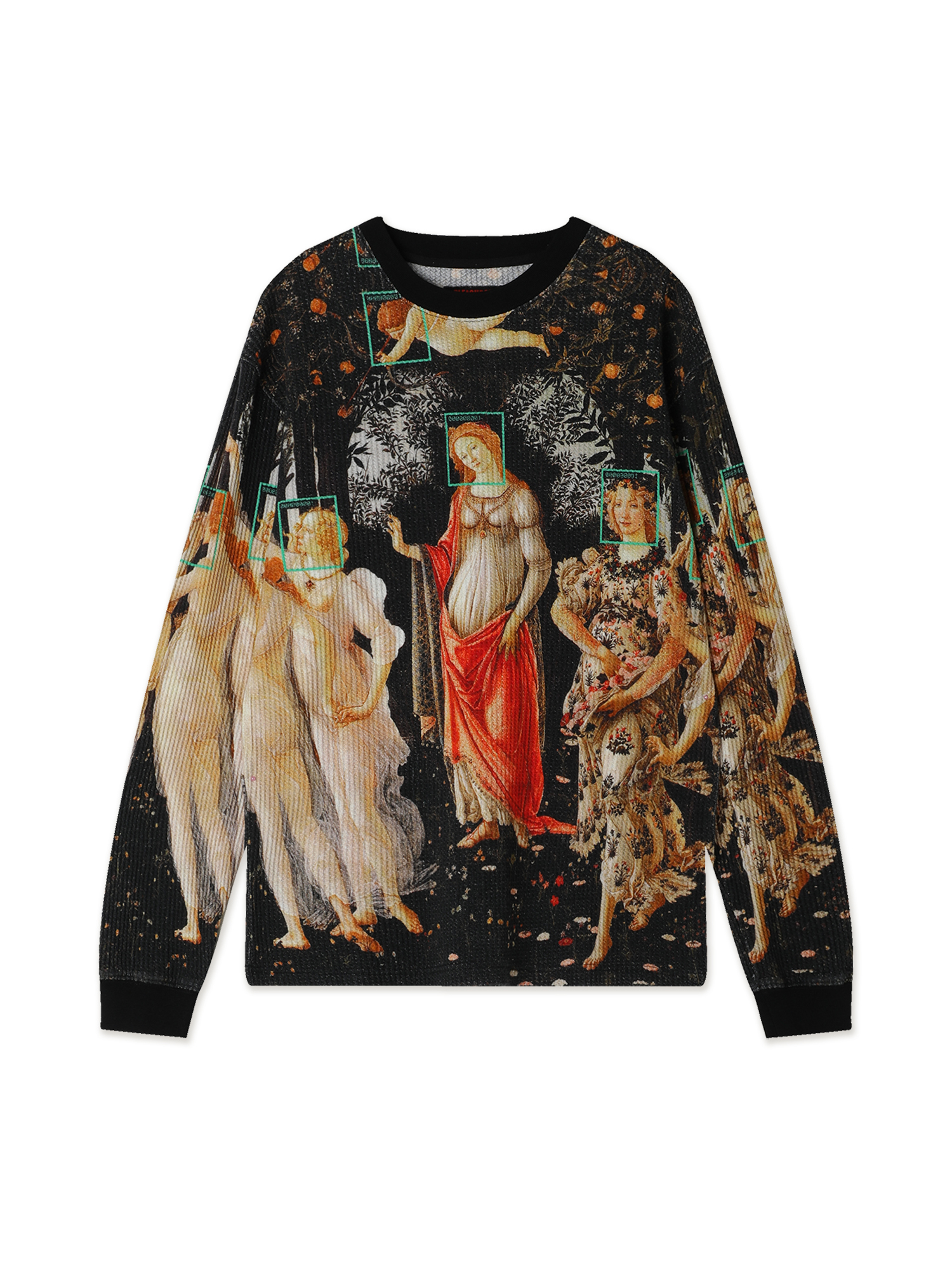 Термальный лонгслив Pleasures из вафельного хлопкового джерси. Изделие дополнено сплошным графическим принтом.