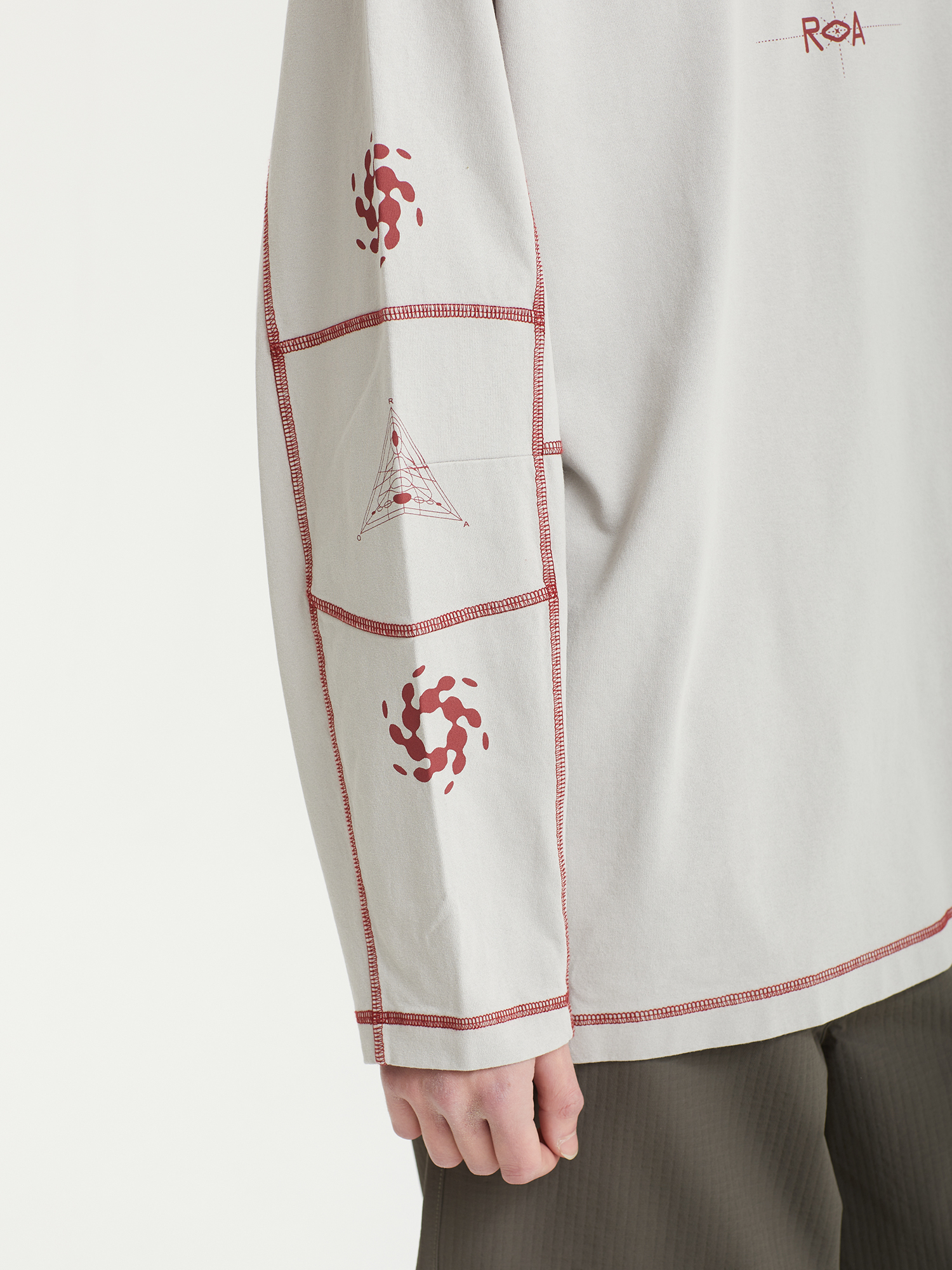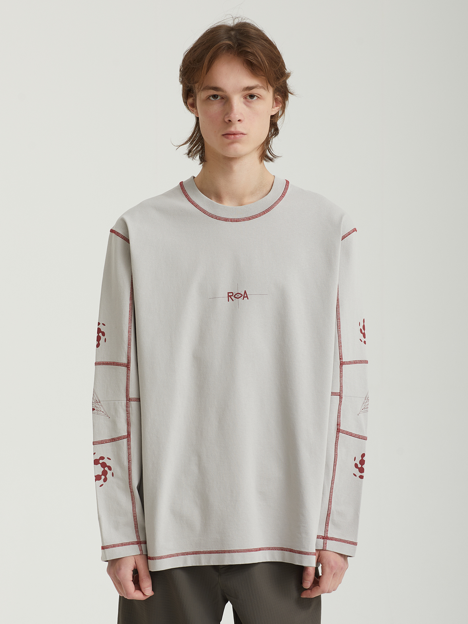 Лонгслив ROA выполнен из плотного органического хлопкового джерси. Изделие оформлено контрастными принтами и декоративной строчкой с обеих сторон.