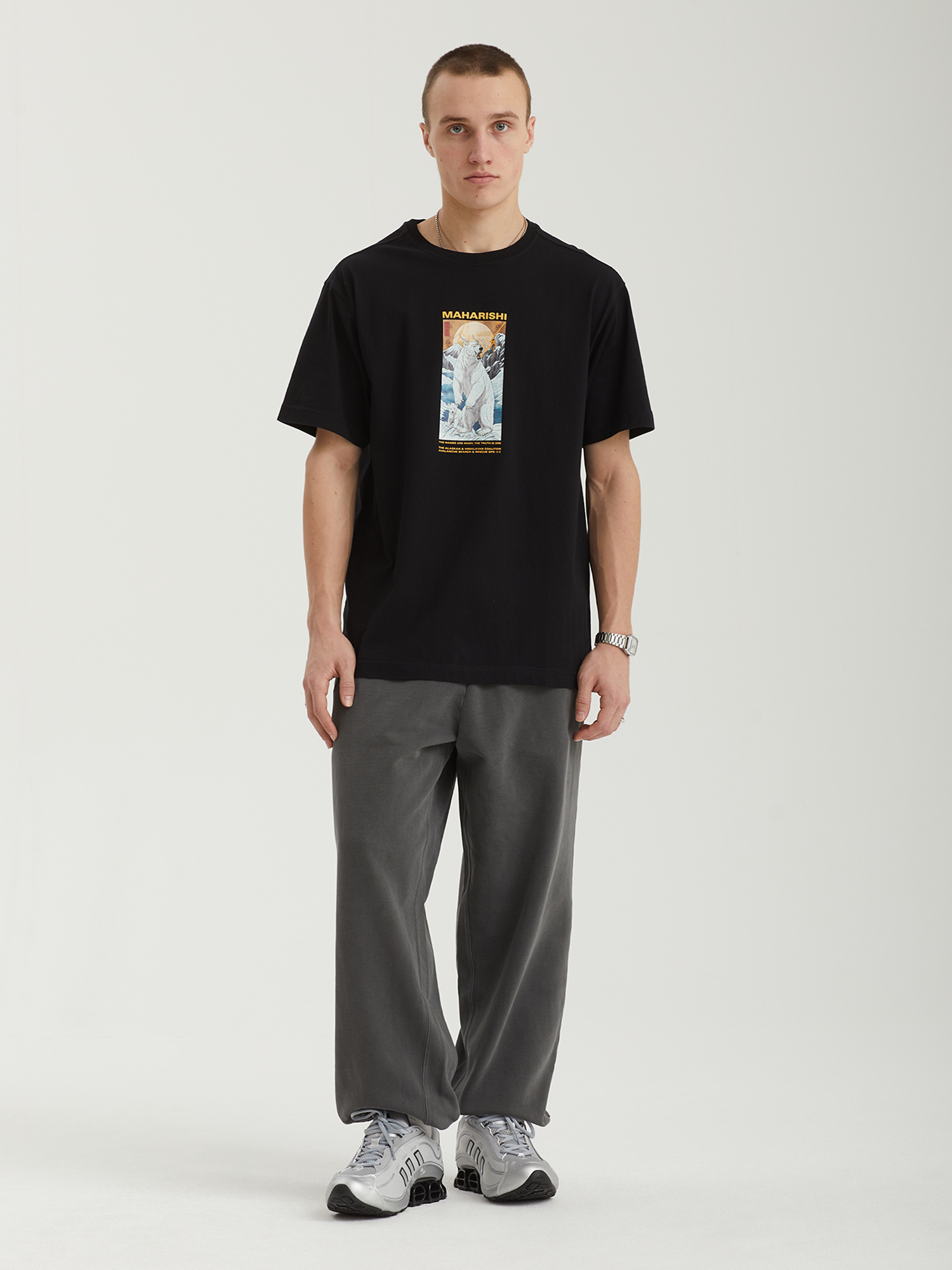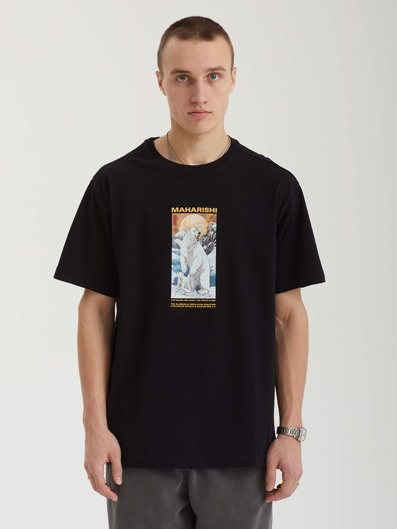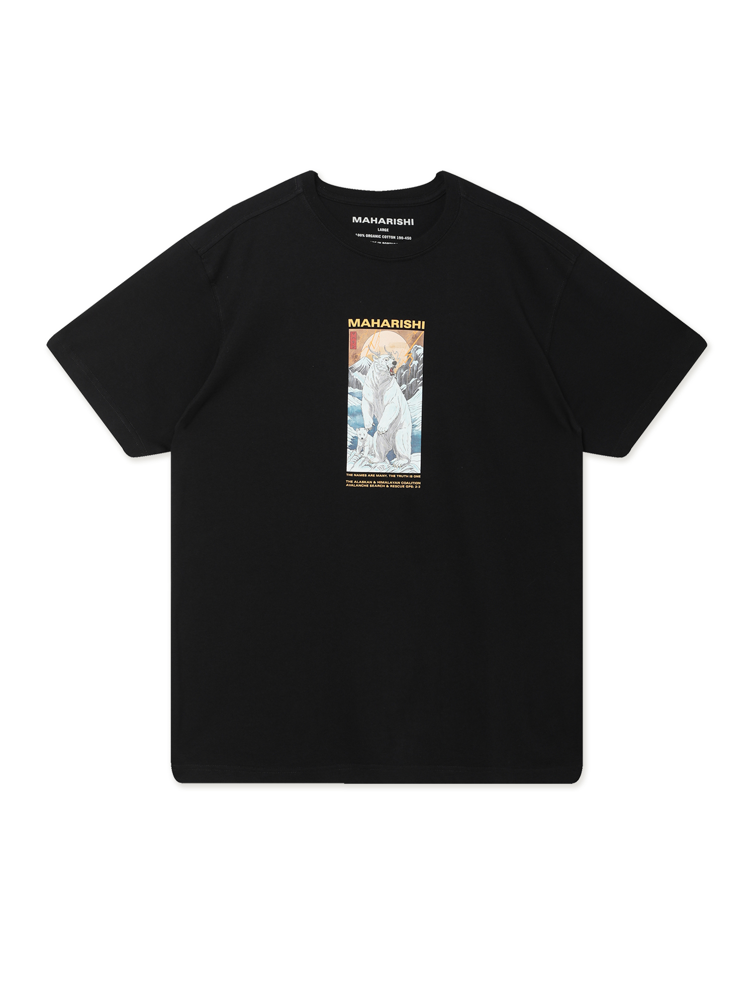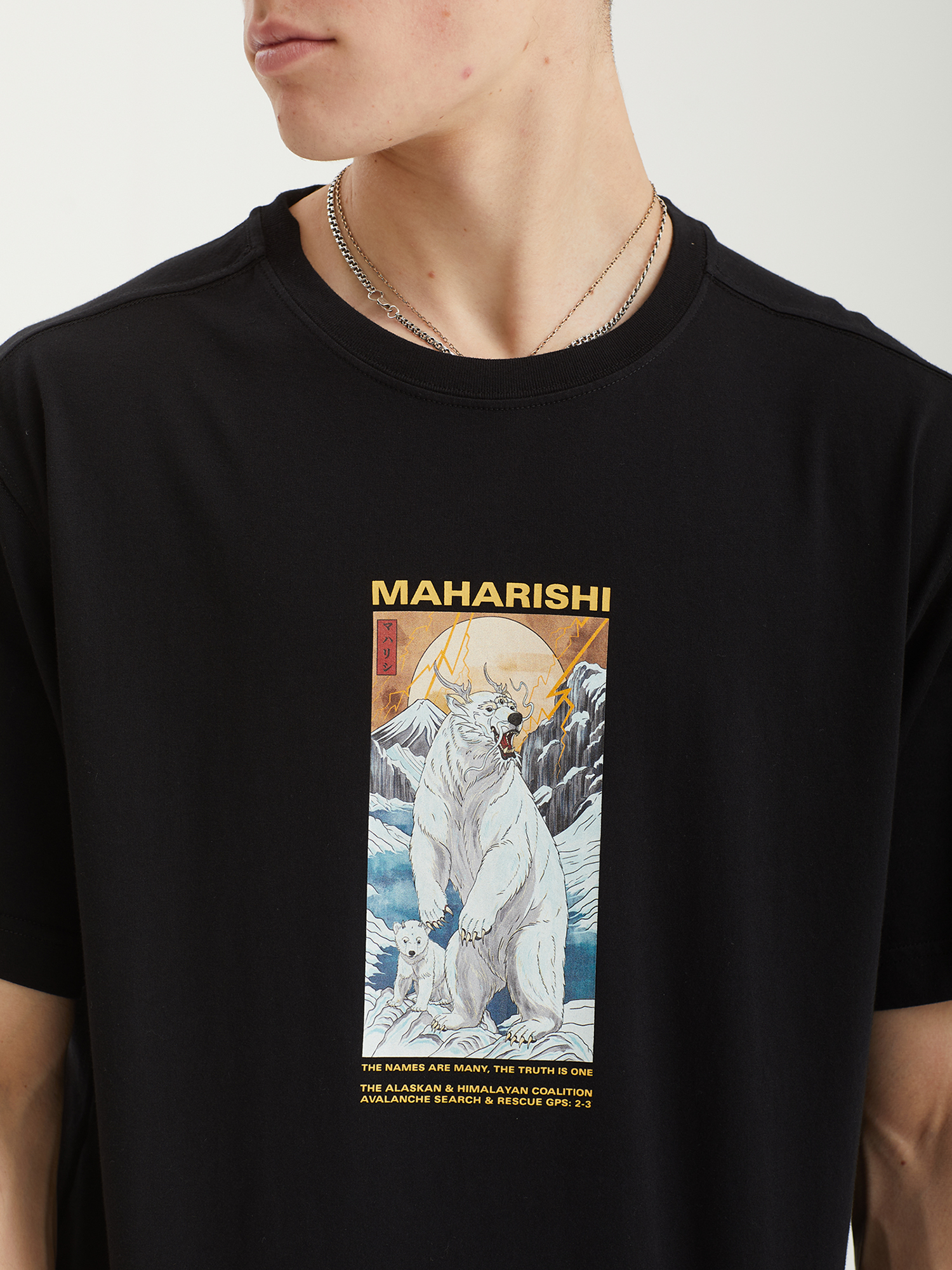 Футболка Maharishi из хлопкового джерси. На груди — графика с полярным медведем в стиле азиатской ксилографии, часть коллекции «Alaskan Coalition Rescue».