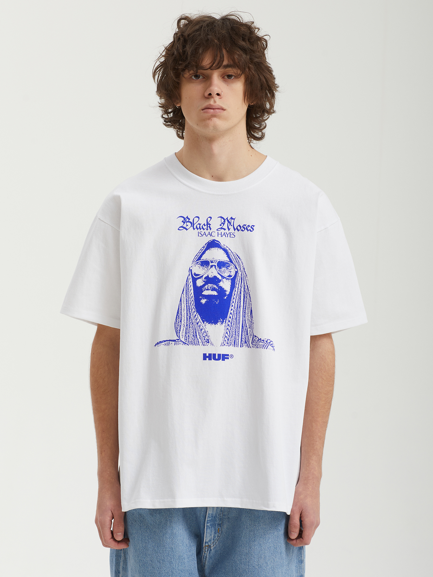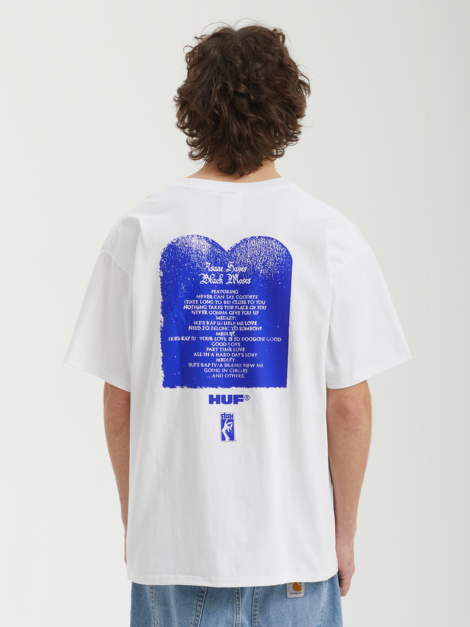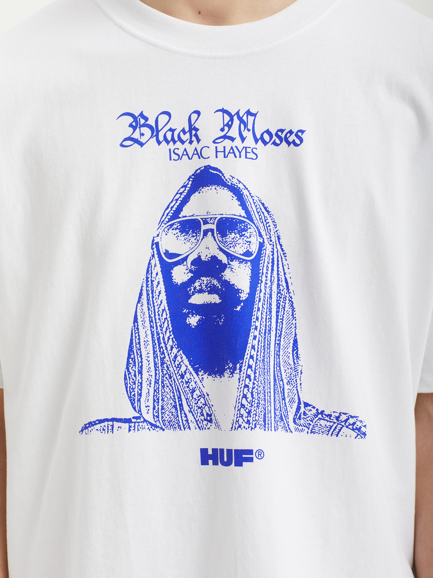 Футболка с сезонными принтами Huf из коллаборации с блюзовым музыкантом Айзеком Хейзом (Isaac Hayes). Изделие выполнено из плотного хлопкового джерси.