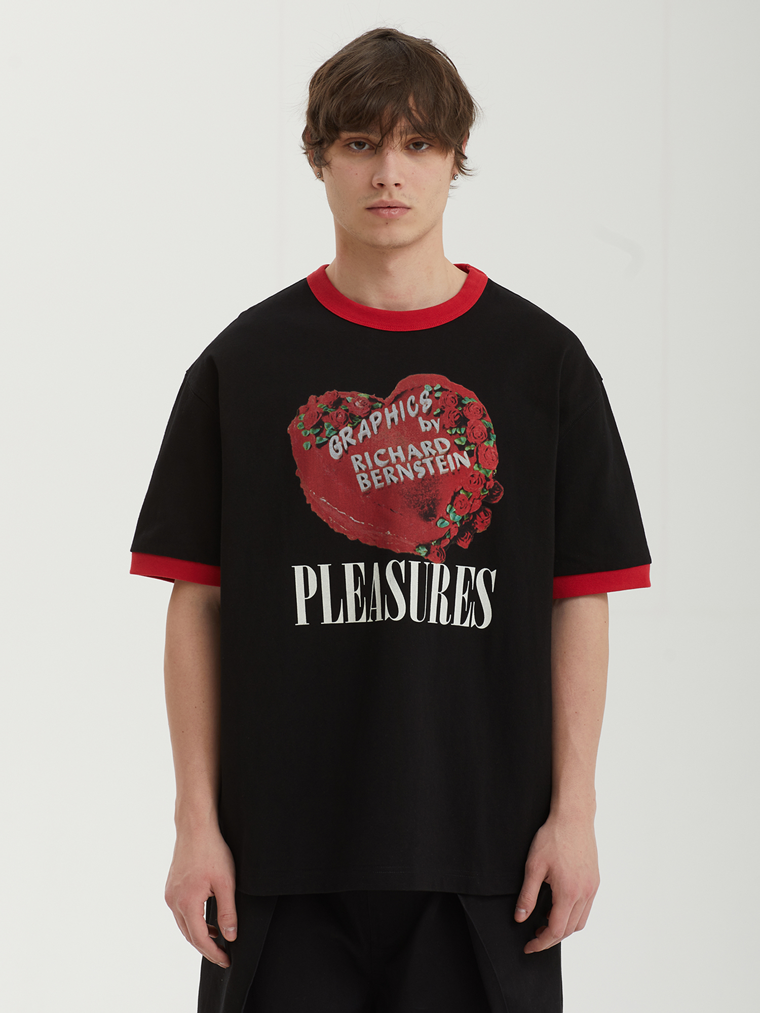 Футболка Pleasures из плотного хлопкового джерси с принтом. Графика вдохновлена работами художника Ричарда Бернштейна (Richard Bernstein).