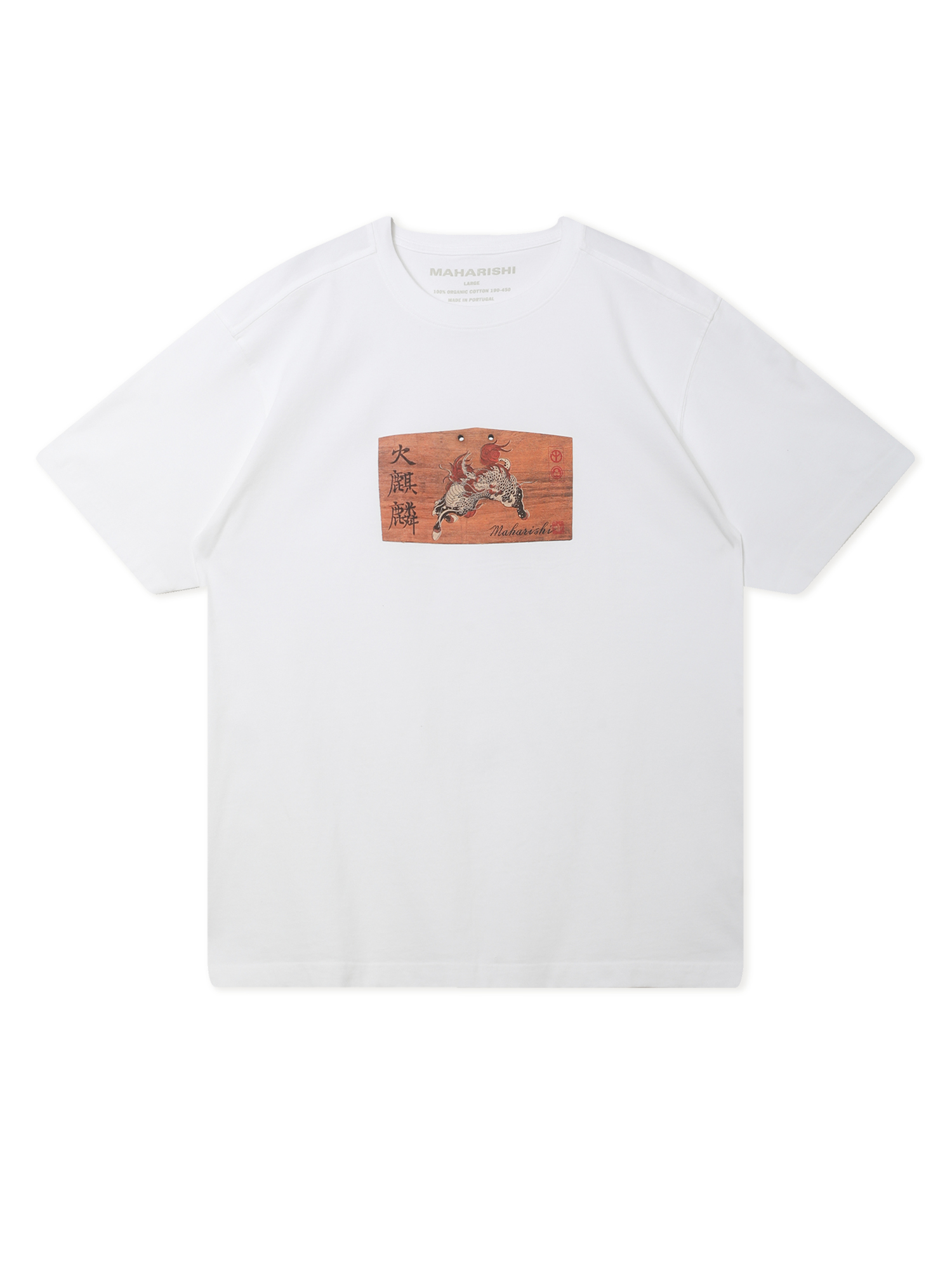 Футболка Maharishi из хлопкового джерси. Изделие дополнено сезонным принтом с молельной буддистской дощечкой.