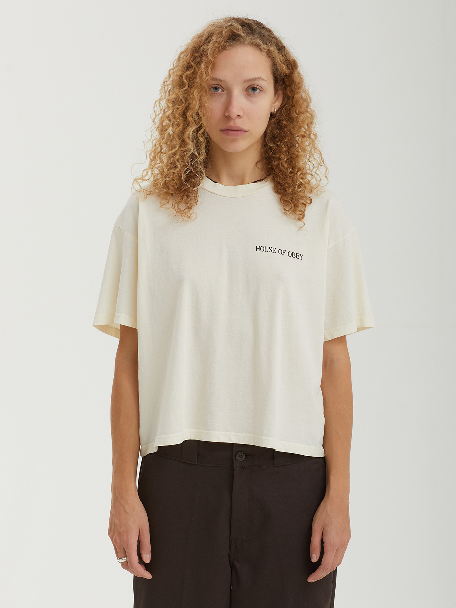 Футболка Obey из легкого хлопкового материала. Изделие окрашено в готовом виде.