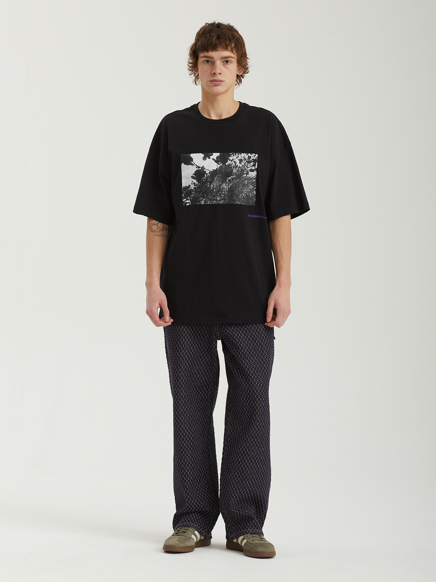 Футболка Peacemaker из плотного хлопкового джерси украшена графическими принтами с обеих сторон.
