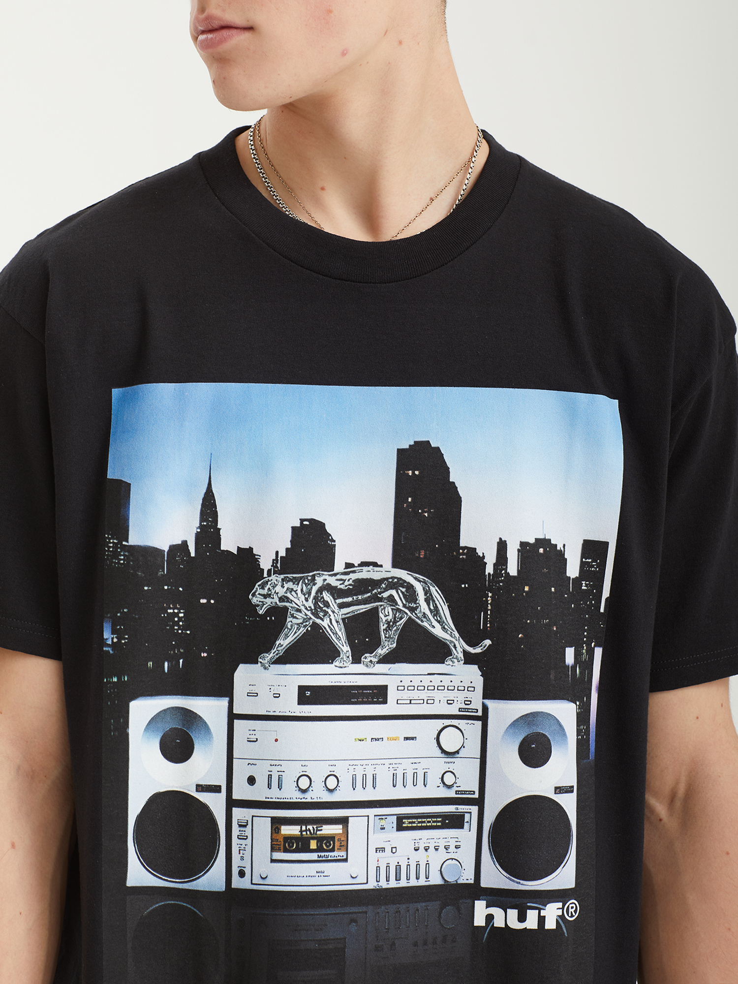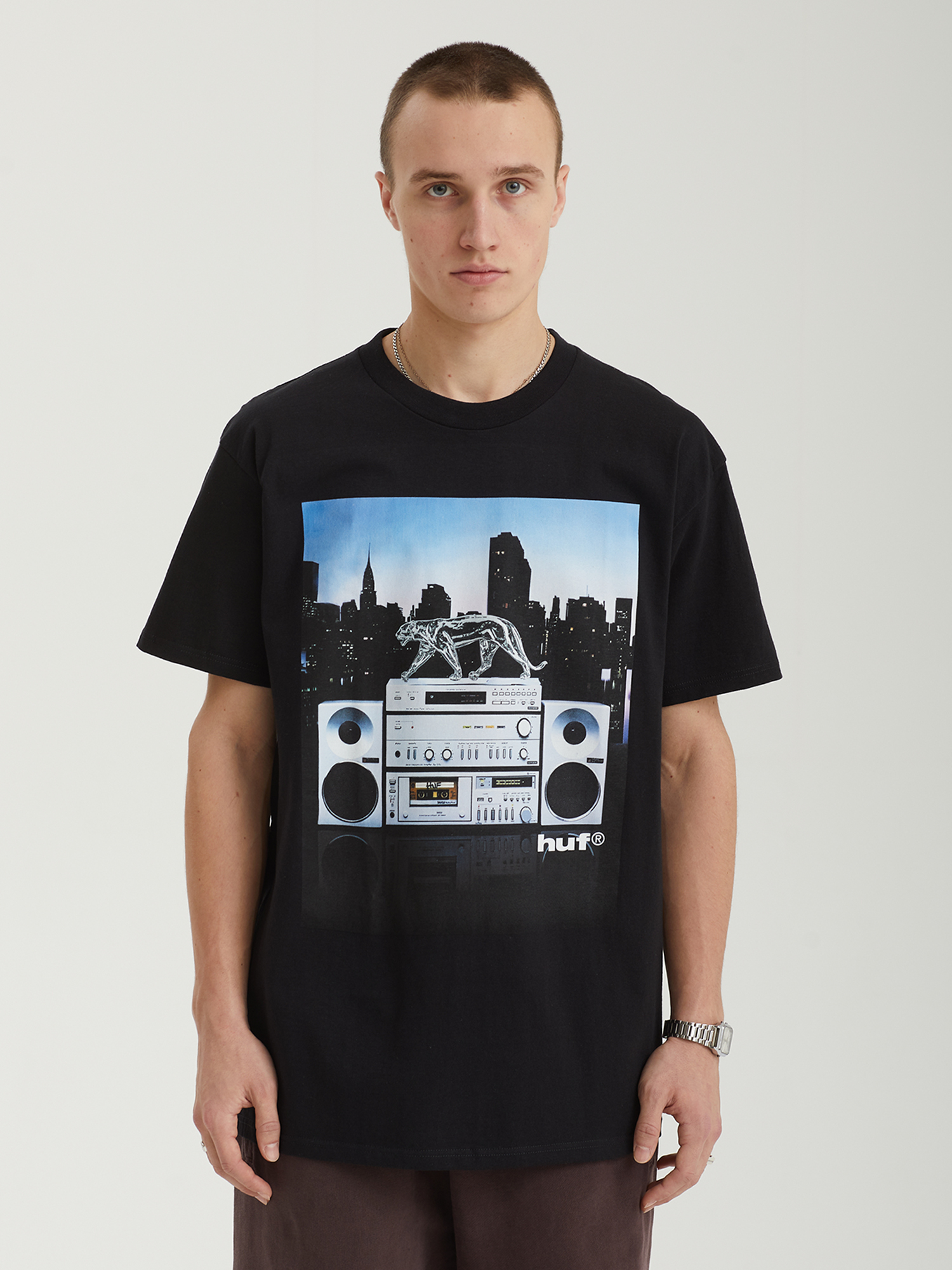 Футболка HUF выполнена из легкого хлопкового джерси и украшена сезонным графическим принтом на фронтальной панели.