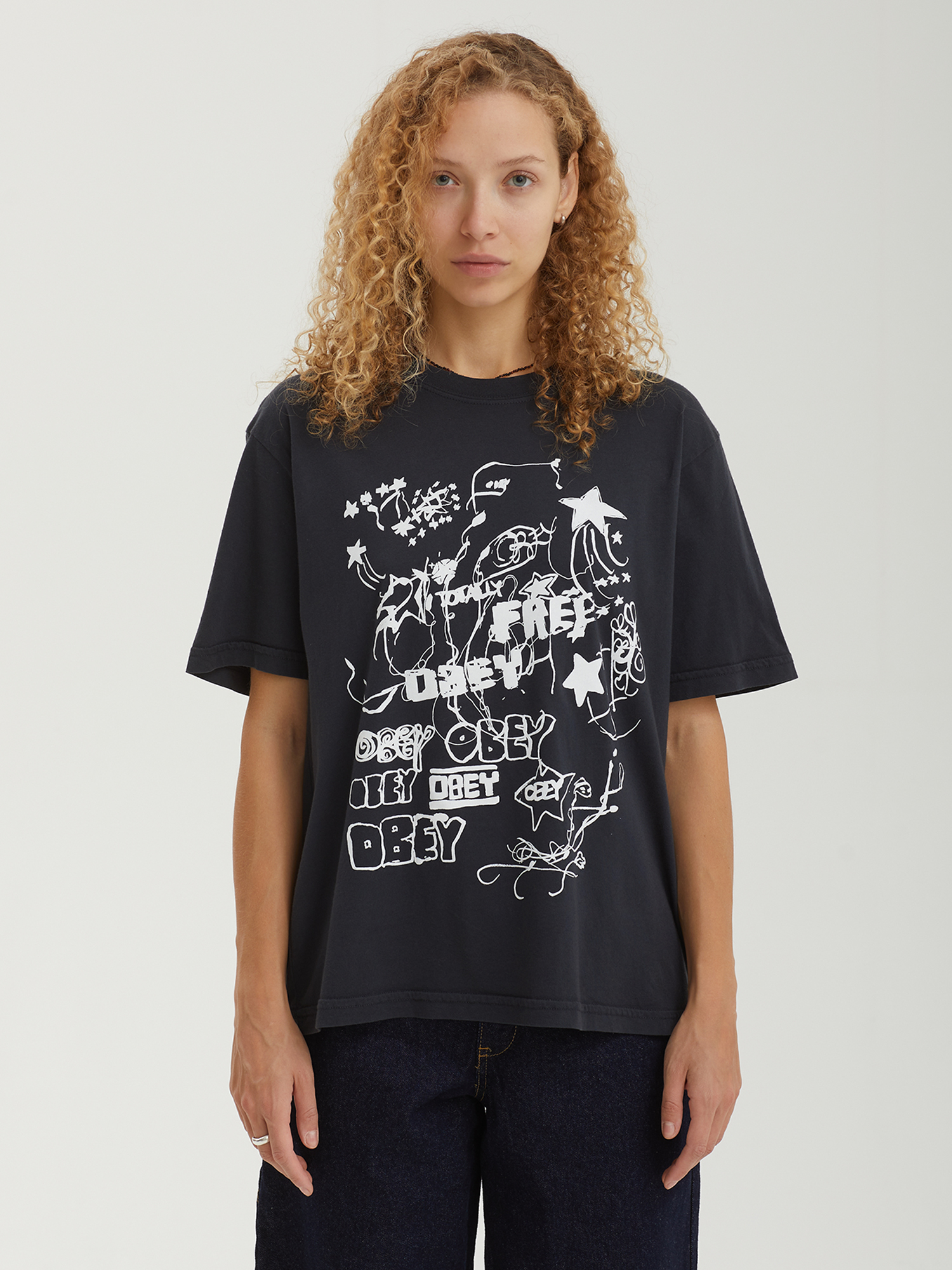 Футболка с контрастным принтом Obey из хлопкового материала. Изделие окрашено в готовом виде.