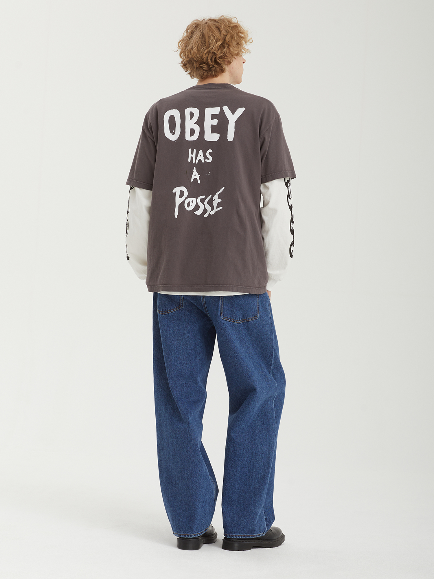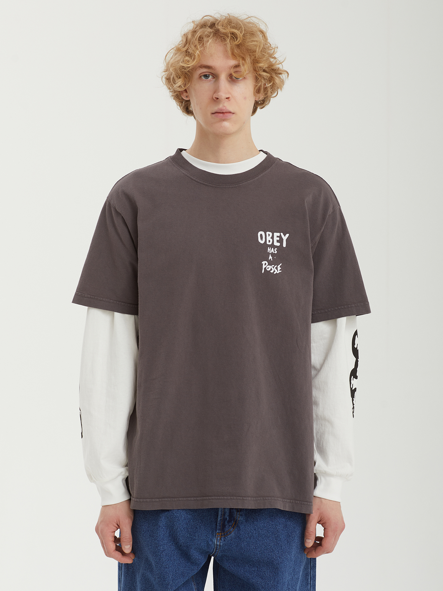 Футболка с логотипами Obey из хлопкового материала. Изделие окрашено пигментом для получения уникального оттенка ткани.