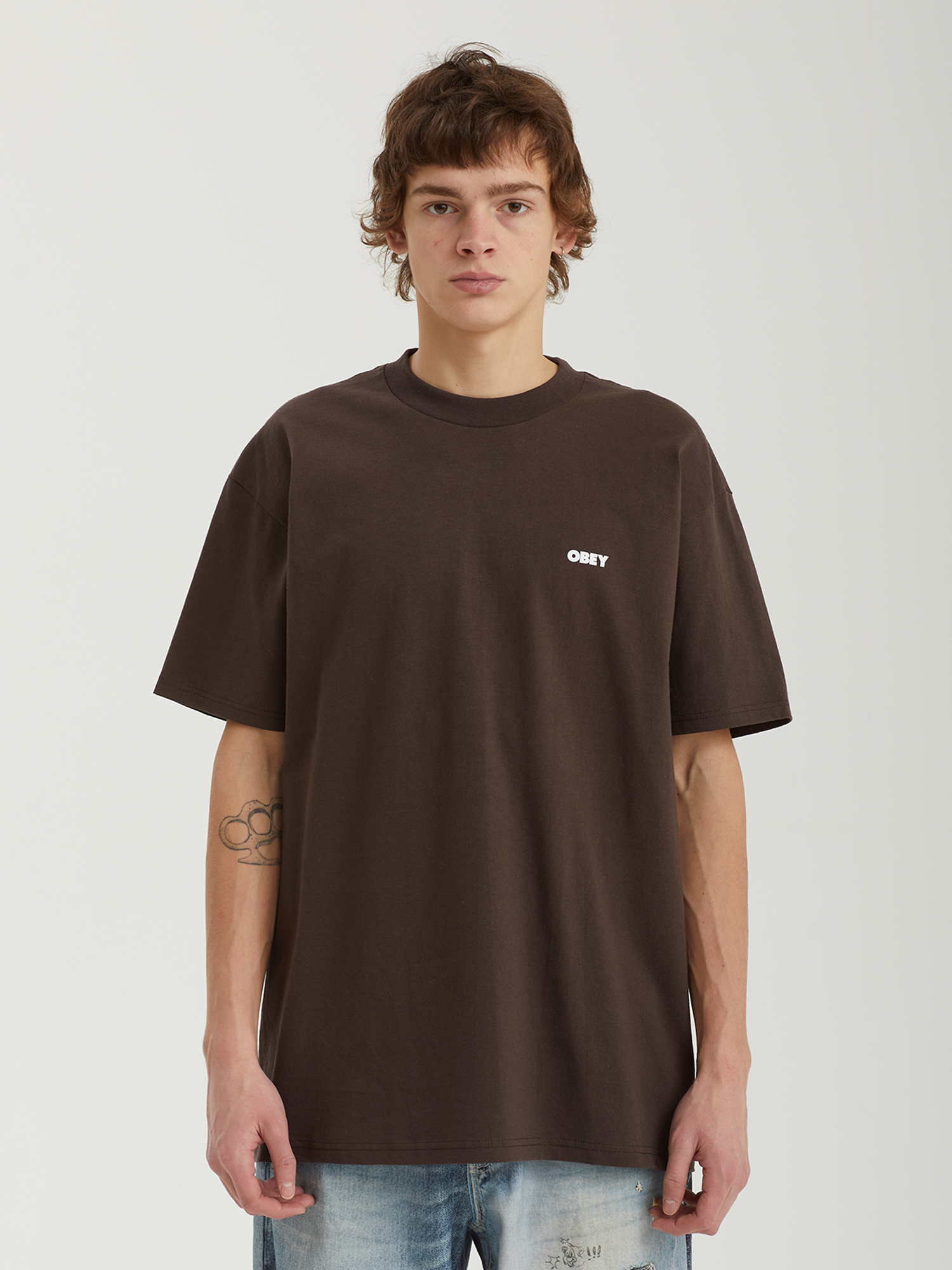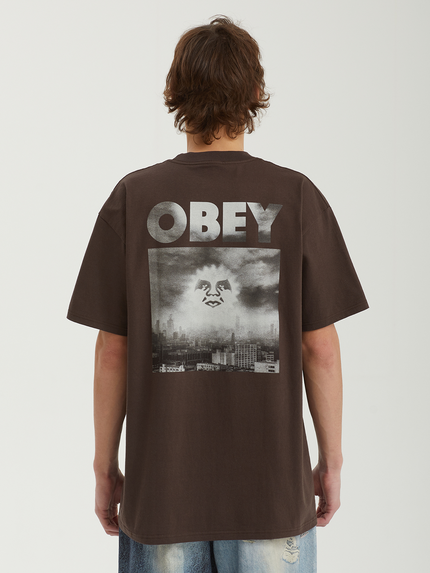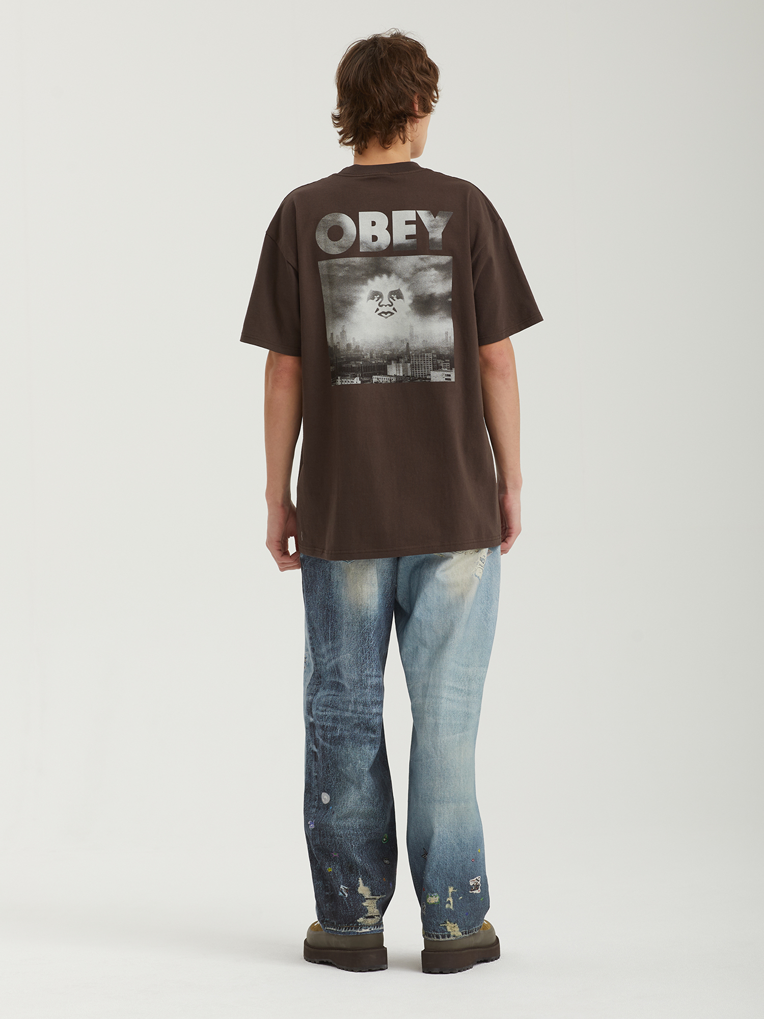 Футболка Obey изготовлена из хлопкового трикотажа в свободном крое. Спереди размещен напечатанный логотип, а на задней панели — сезонный графический принт в узнаваемом стиле бренда.