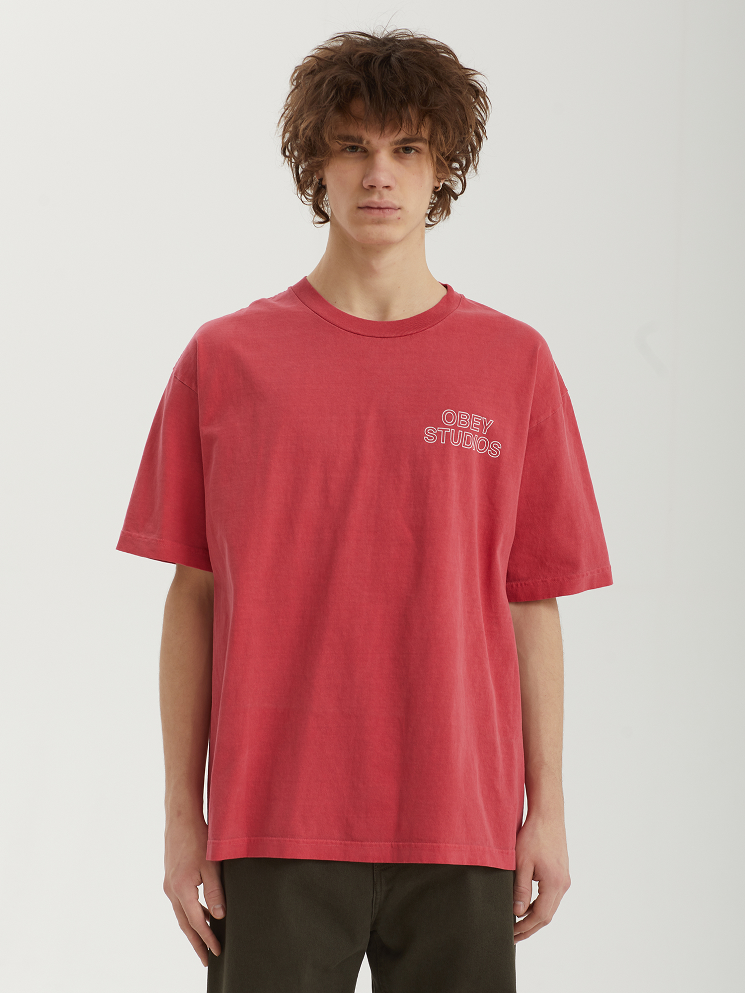 Футболка с логотипами Obey из хлопковой ткани. Изделие окрашено пигментом для более сложной цветовой конфигурации.