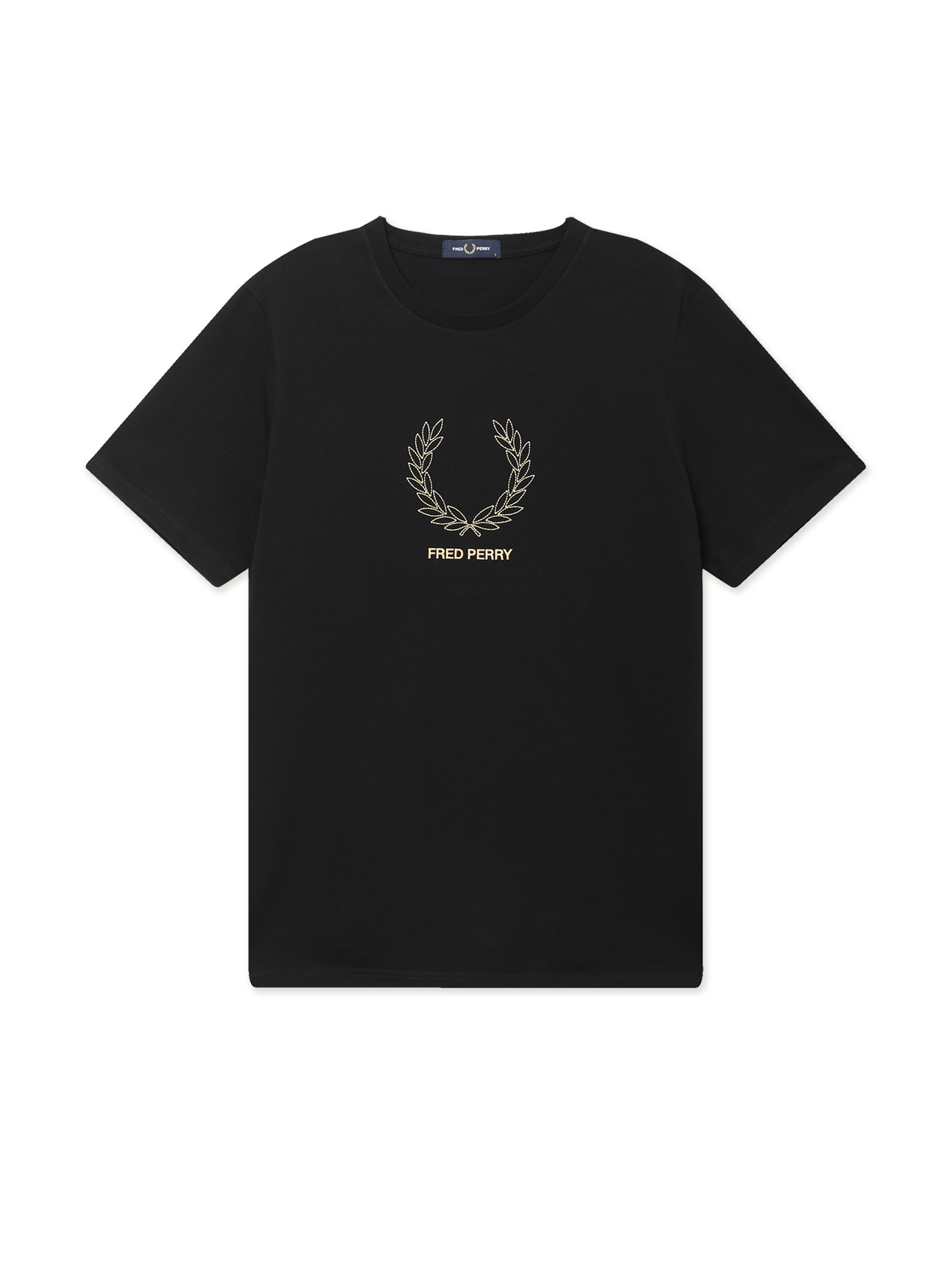 Футболка Fred Perry из плотного хлопкового джерси. Модель дополнена вышитым лавровым венком на фронтальной панели — ключевым символом бренда и его ценностей.