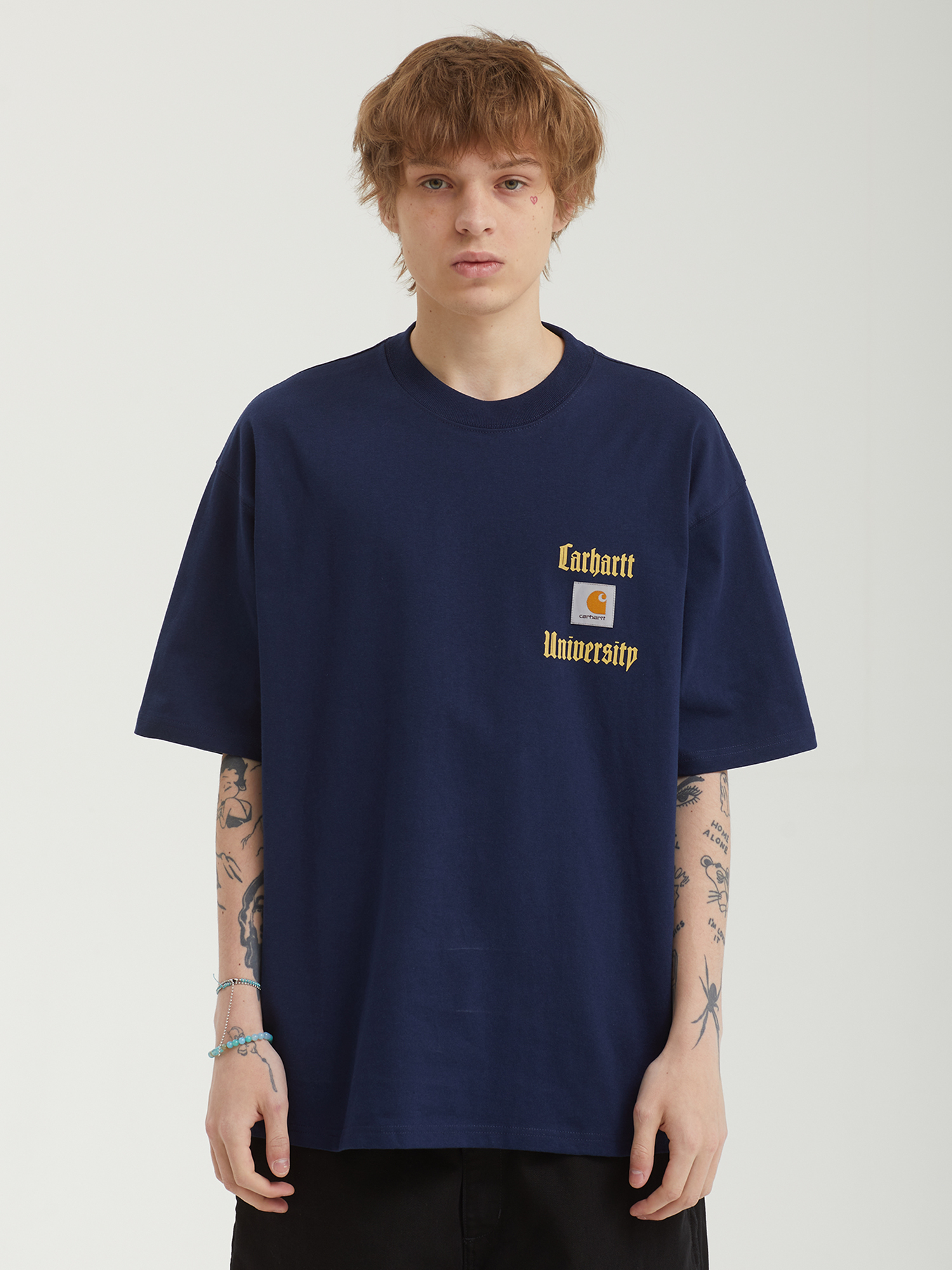 Футболка Carhartt WIP выполнена из хлопкового джерси и имеет свободный силуэт. На груди — лаконичный леттеринг и фирменный патч с логотипом бренда.