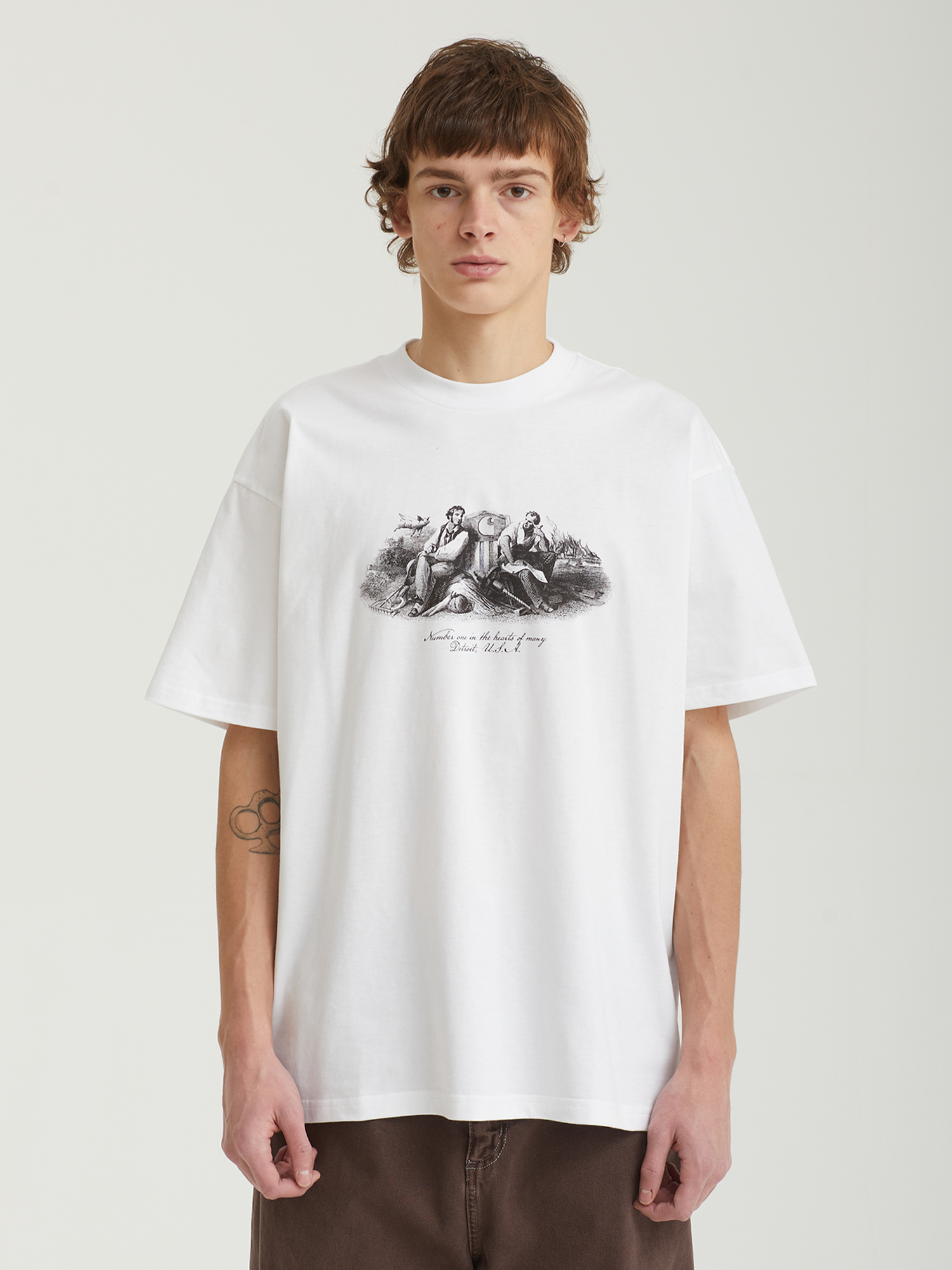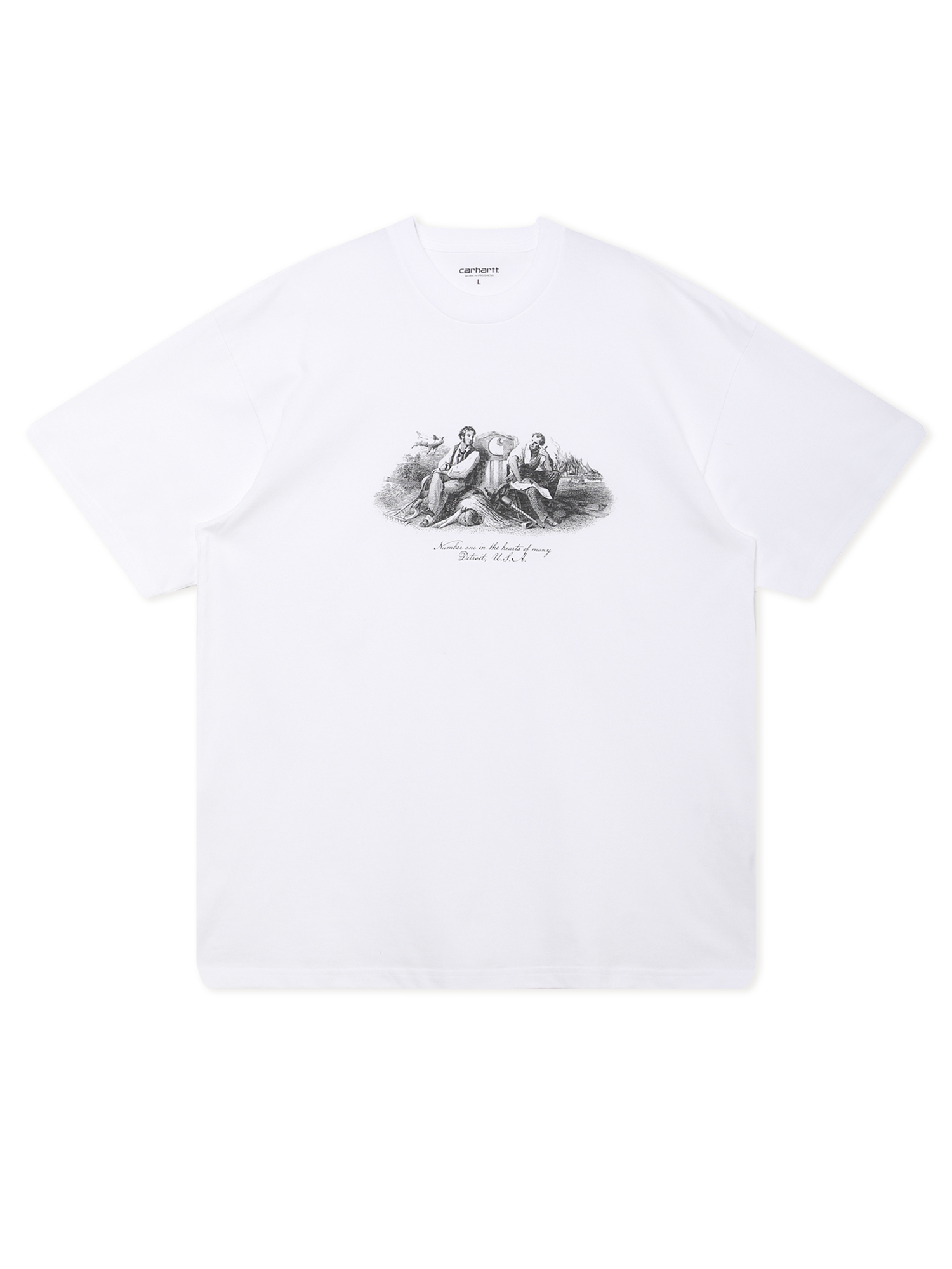 Футболка Carhartt WIP выполнена из органического хлопкового джерси и имеет свободный крой. На груди расположен графический принт, отсылающий к рабочей эстетике бренда.