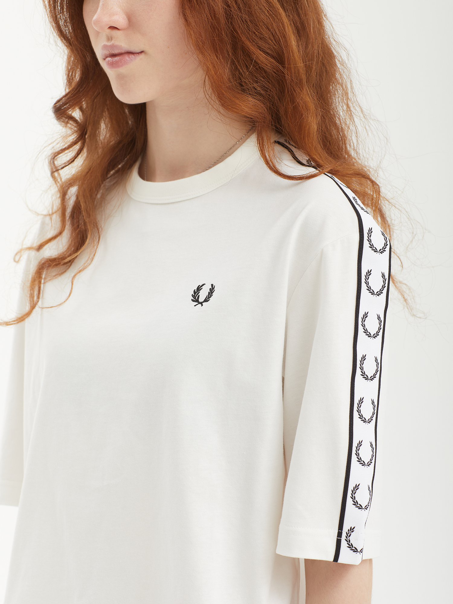 Футболка с объемным кроем Fred Perry из хлопкового джерси. Изделие дополнено тесьмой с жаккардовыми логотипами.