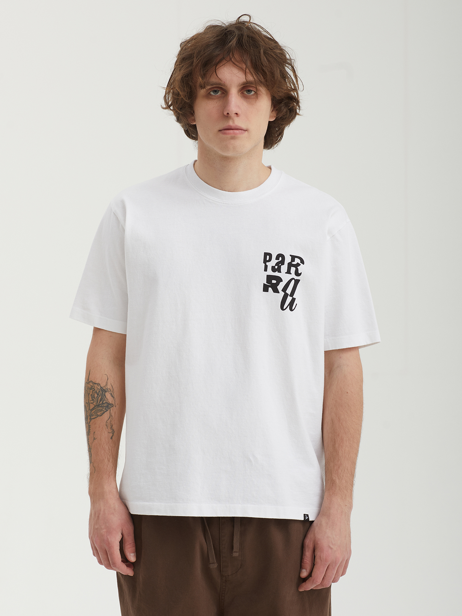 Футболка By Parra из хлопковой ткани, прошедшей предварительную усадку с помощью экологичных компонентов. Изделие дополнено графикой от голландского художника Питера Янсена (Parra).